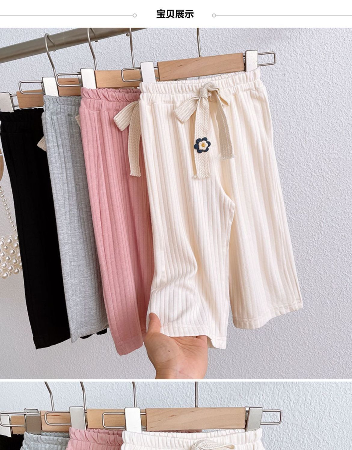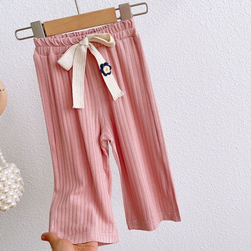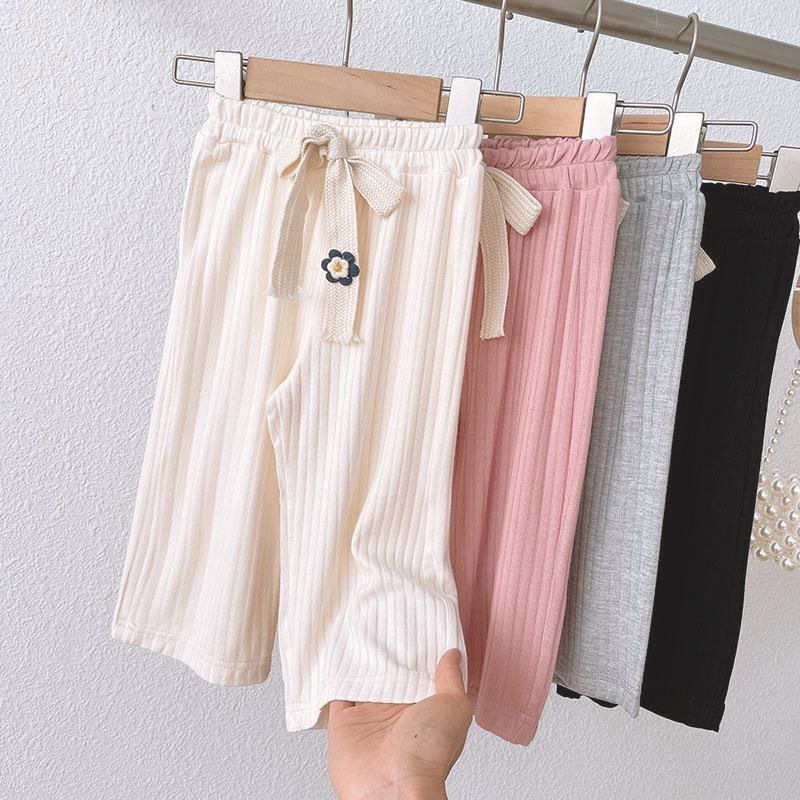 여자 여름 캐주얼 바지 아기의 서양식 어린이 맞춤형 트렌디 브랜드 한국 스타일 인터넷 기념 유행 꽃 자른 넓은 다리 바지스토어 가기