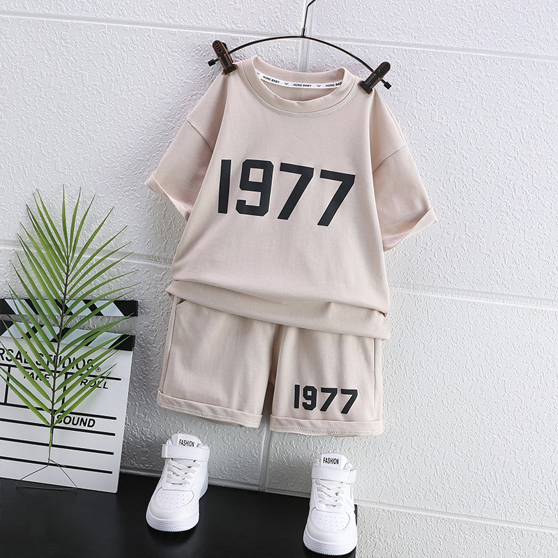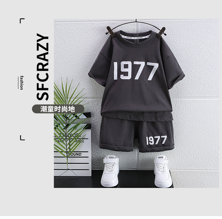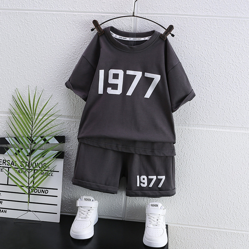 도매 여름 짧은 소매 세트 서양식 티셔츠 반바지 투피스 캐주얼 소년 소녀 트렌디 한 멋진 한국 버전의 스포츠 레저