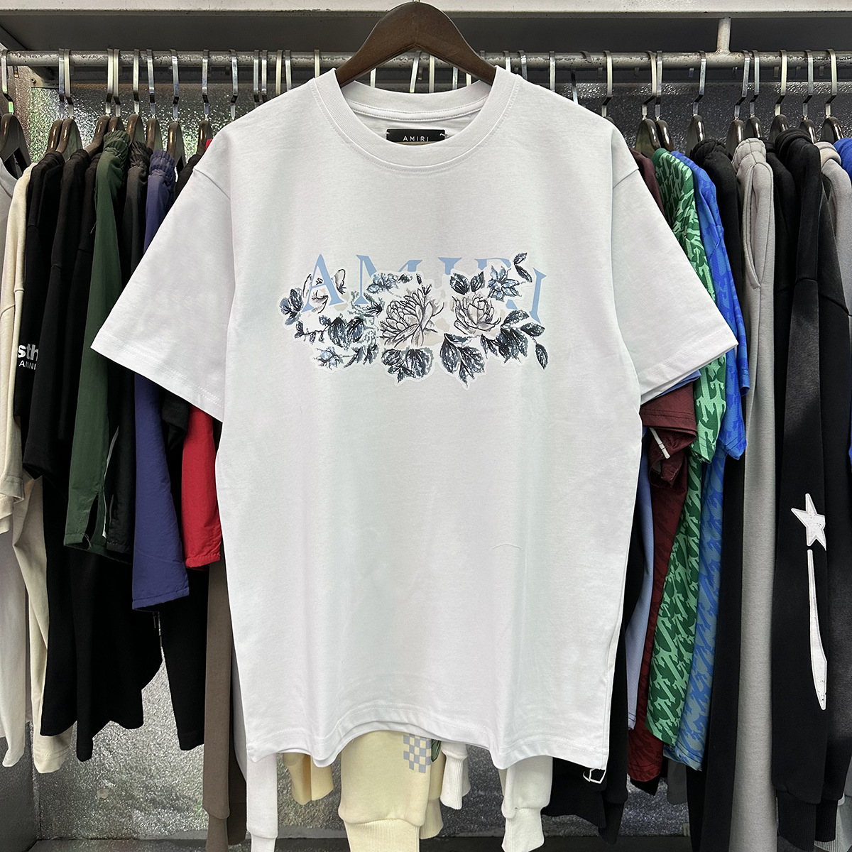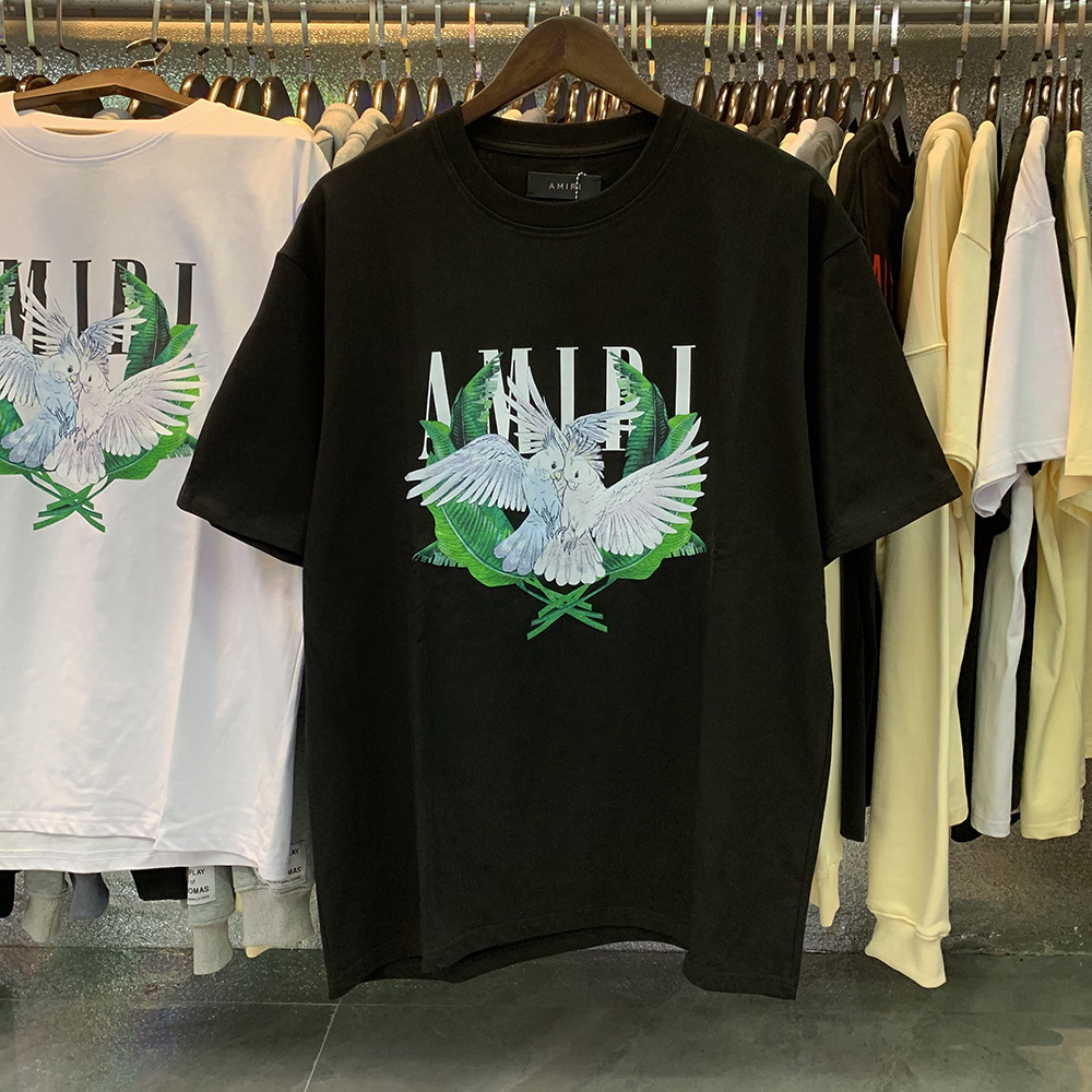 AM1R1 ICON 틈새 유행 브랜드 평화 비둘기 편지 인쇄 라운드 넥 느슨한 반팔 티셔츠 남녀 커플 반소매스토어 가기
