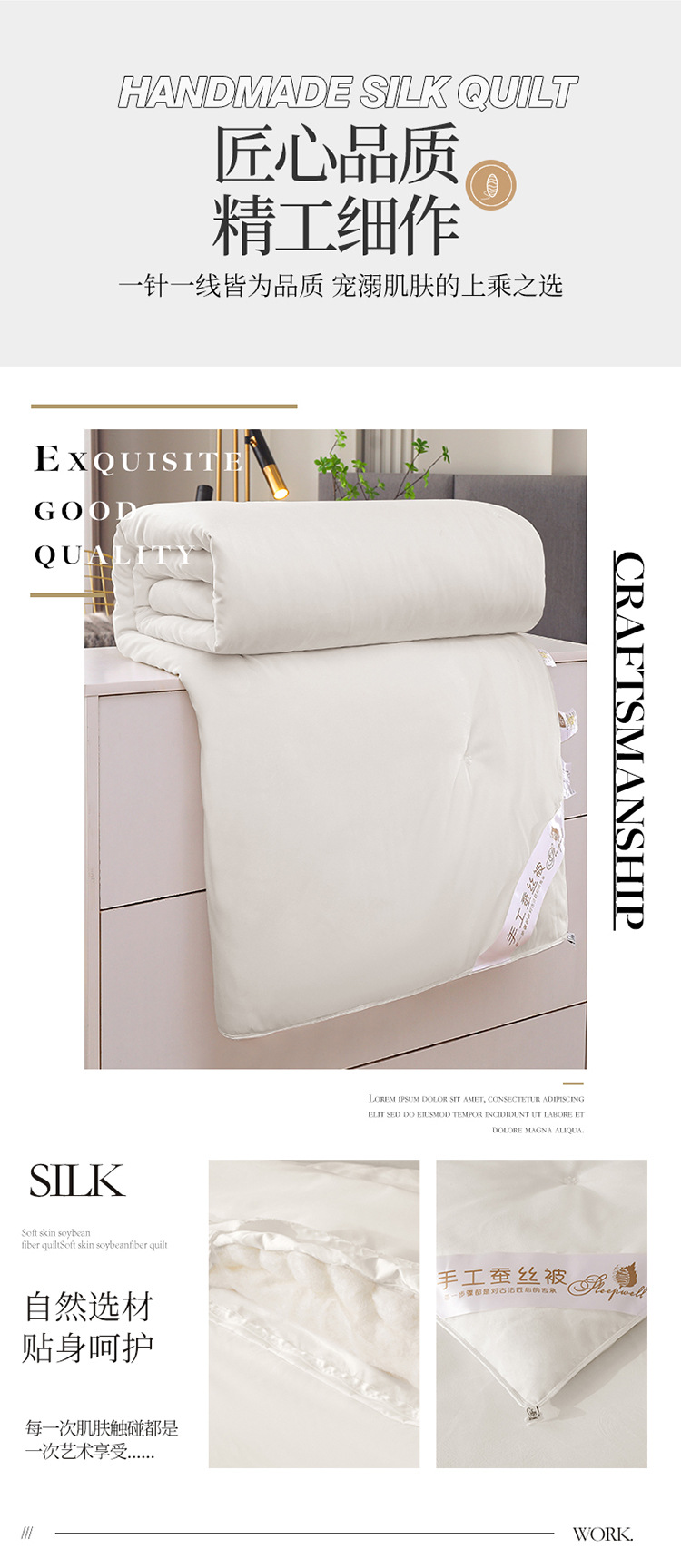 수제 실크 이불, 뽕나무 실크 이불, 호텔 및 민박용 이불심, 여름 시원한 이불, 봄 가을 사계절 이불, 엄마와 아이용 이불 도매