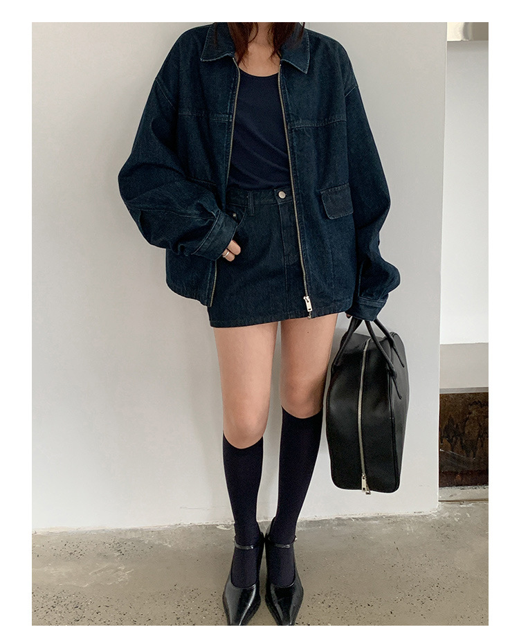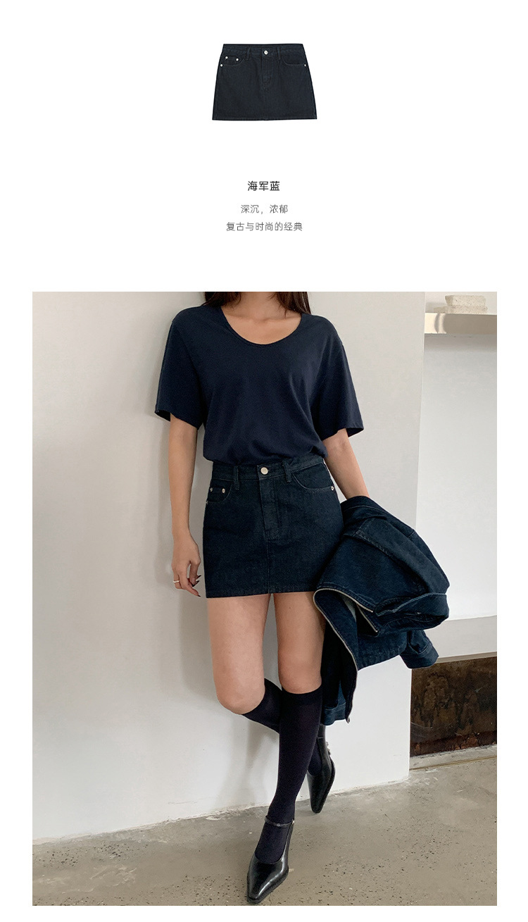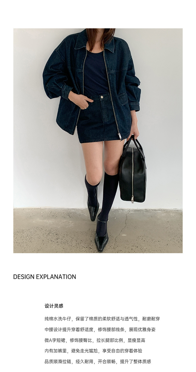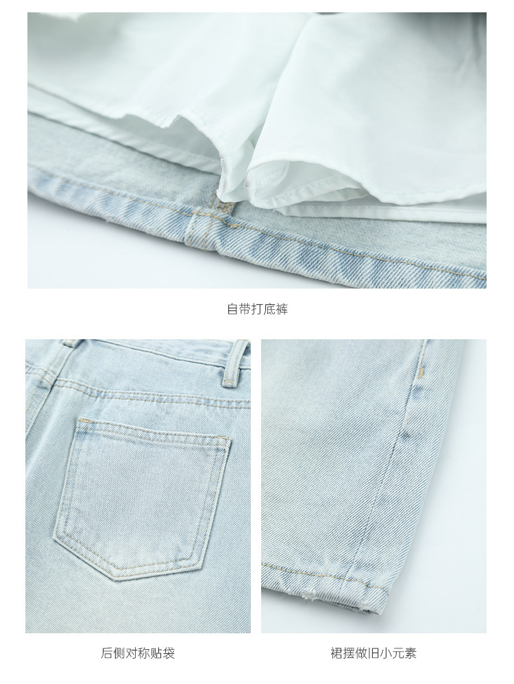 CLEAN SPACE 면화 세척 데님 스커트 2025 광저우 13 라인 새로운 중간 허리 A 라인 스커트 53357
