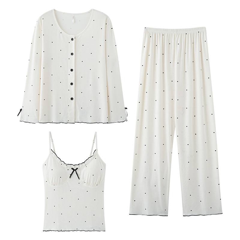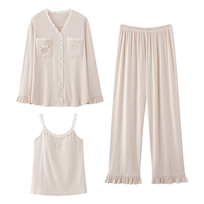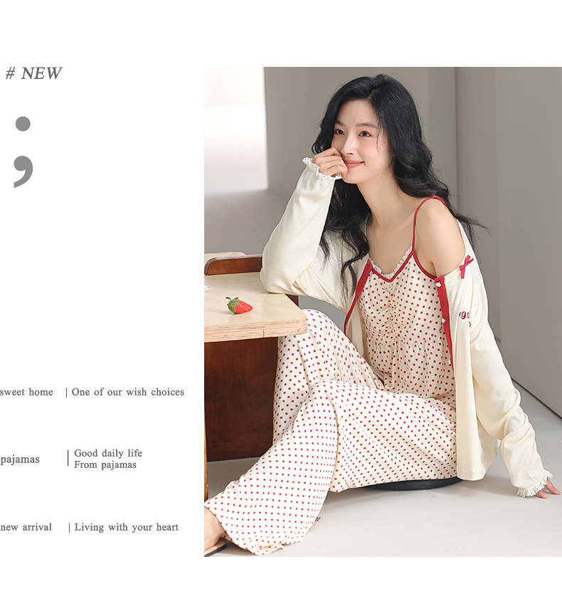 잠옷 여성의 봄과 여름 긴팔 바지 3 피스 세트 얇은 플러스 사이즈 섹시한 슬링 스트랩 꽃 홈 의류 여름 세트스토어 가기