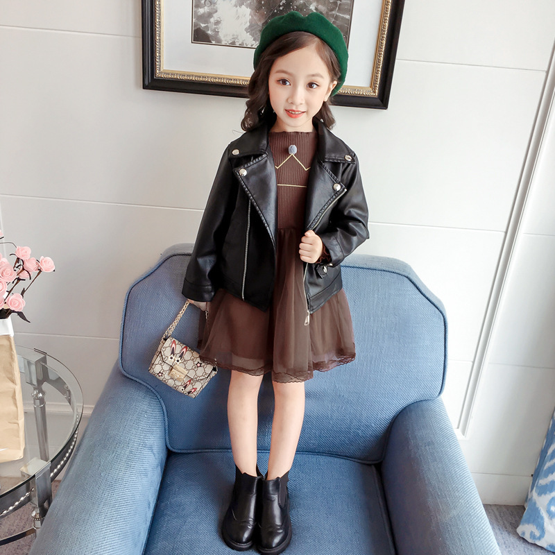 소녀 가죽 의류 봄과 가을 2025 새로운 봄과 가을 한국 스타일 서양식 짧은 유행 탑 재킷 PU 가죽 자켓스토어 가기