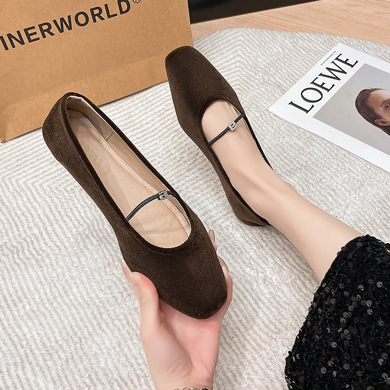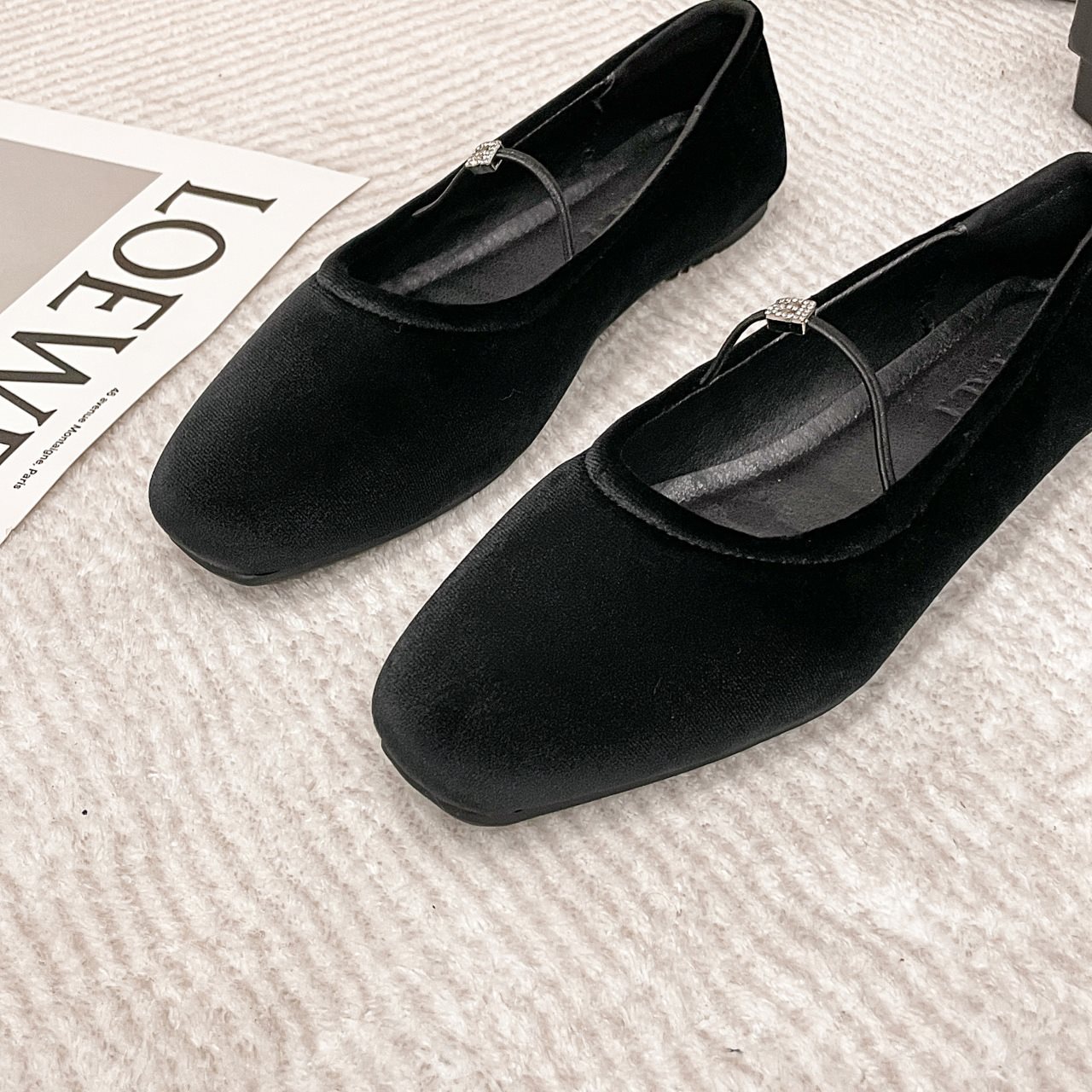 싱글 레이어 신발 여성 모조 다이아몬드 스퀘어 헤드 밴드 메리 제인 기질 봄과 가을 플랫 벨벳 2025 새로운 프랑스 스타일스토어 가기