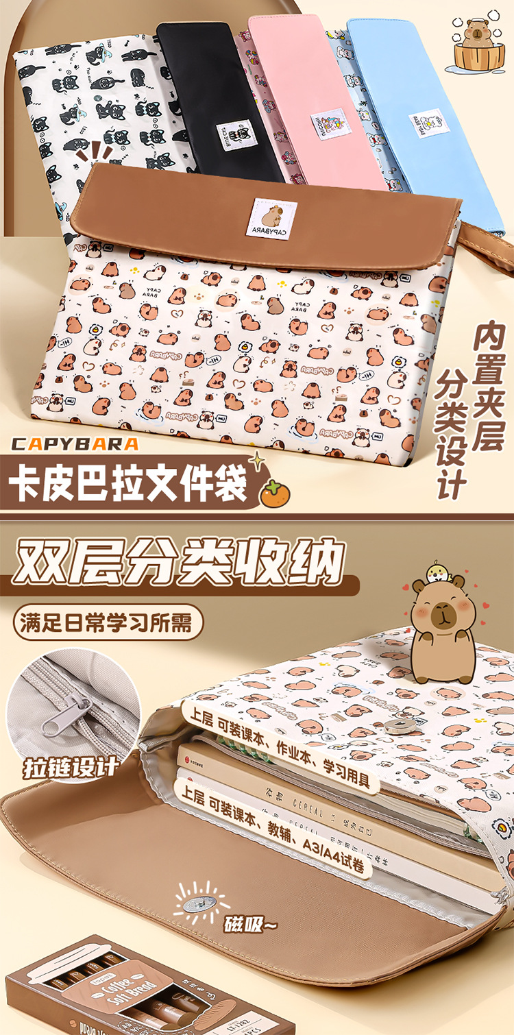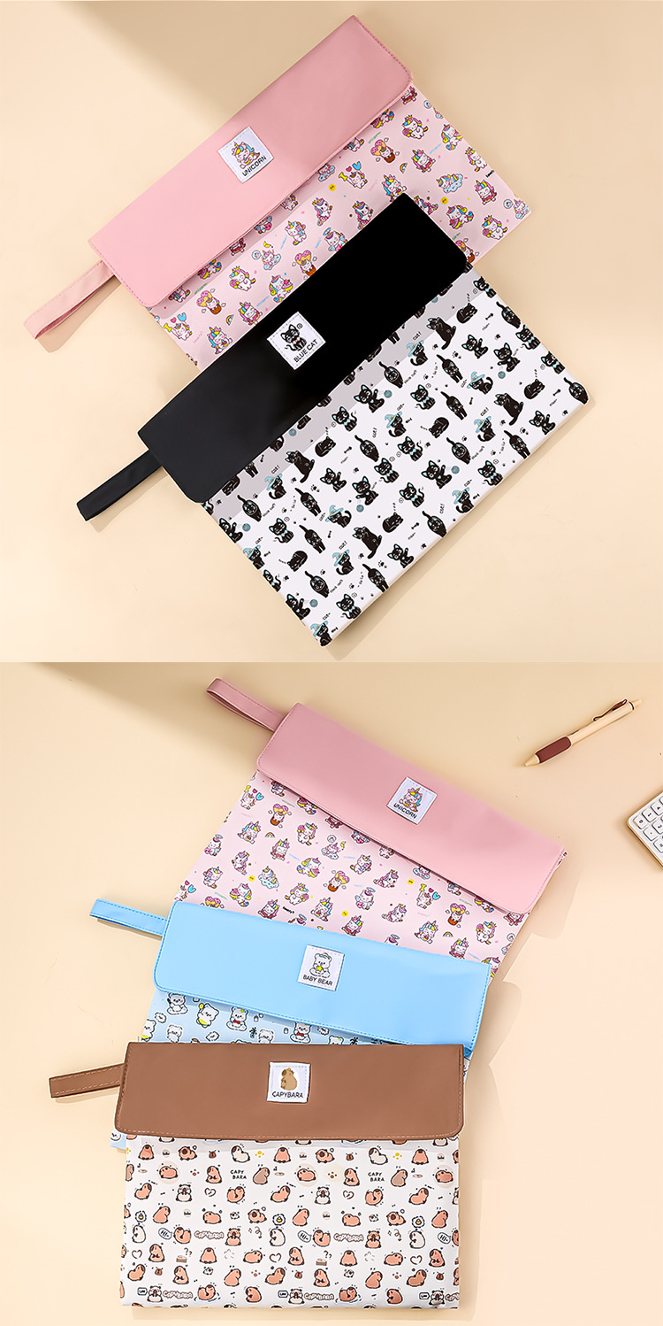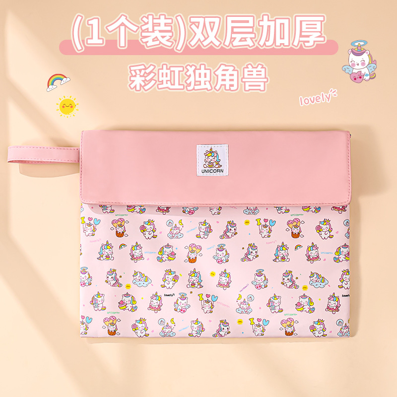학생들을위한 대용량 스냅 온 더블 레이어 파일 가방 고급 감각 저장 보호 문구 만화 휴대용 투명 스페셜