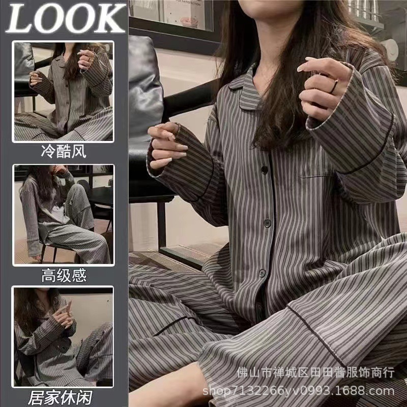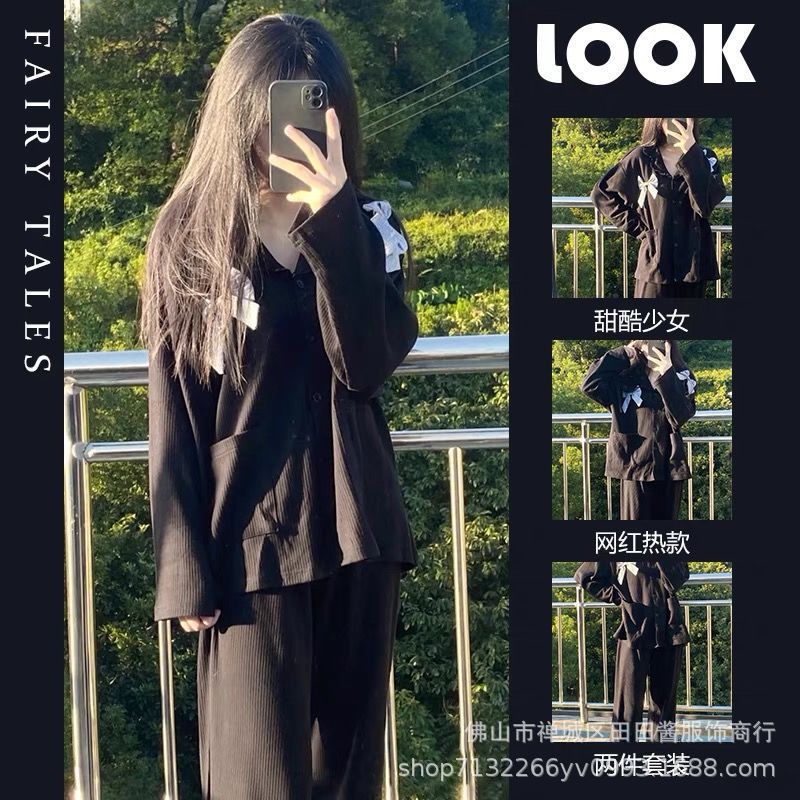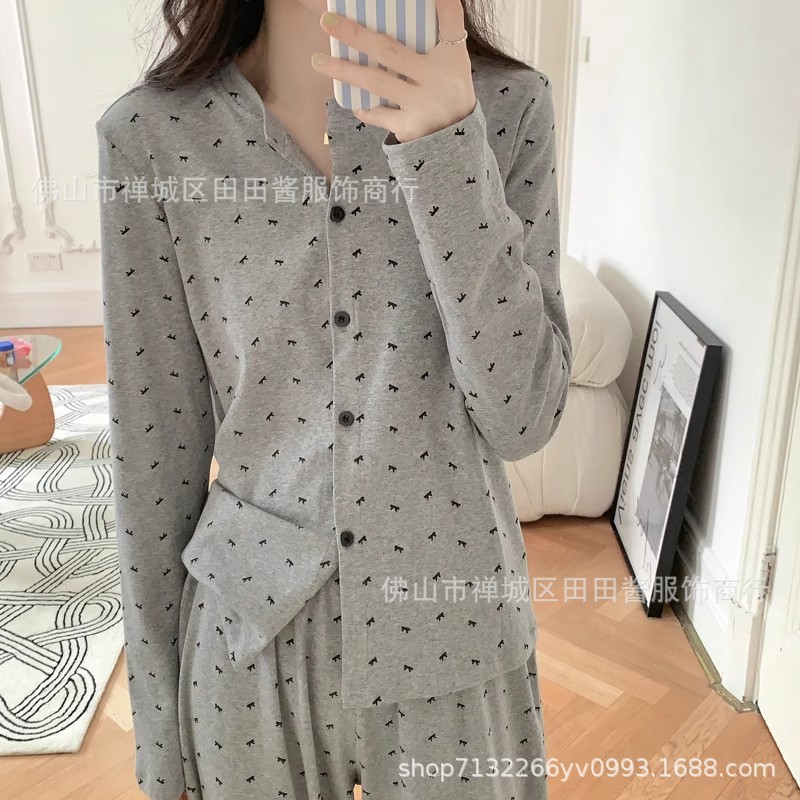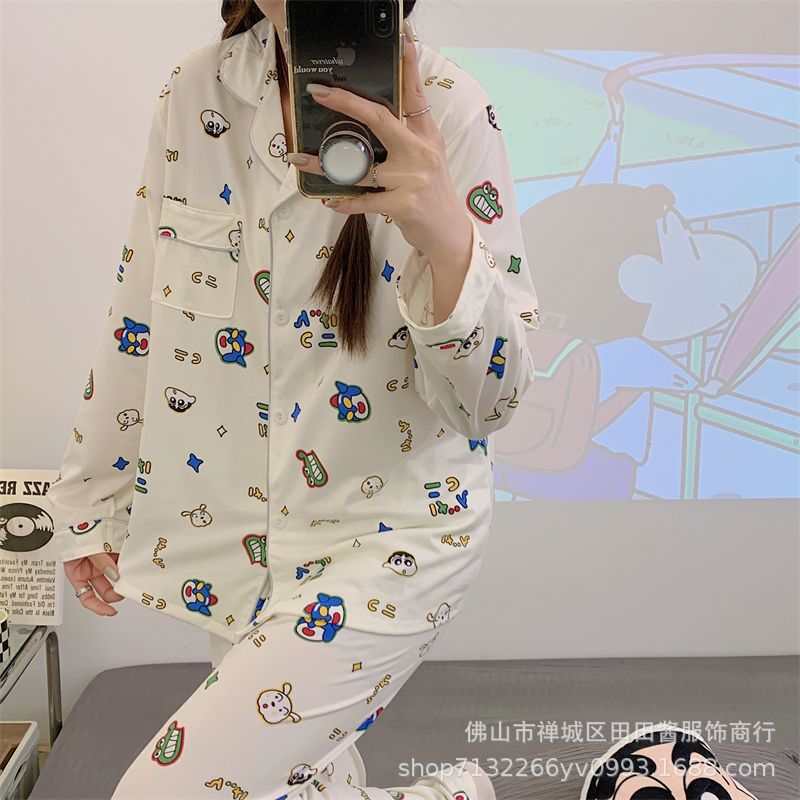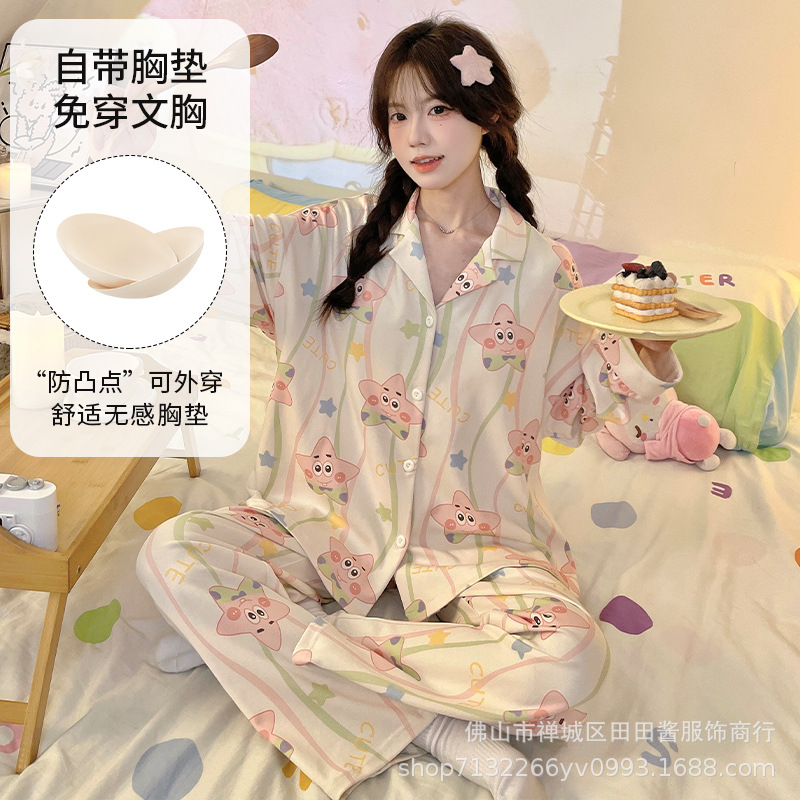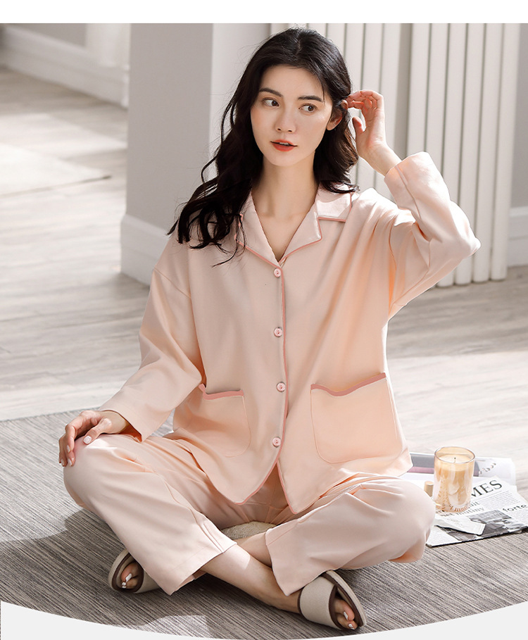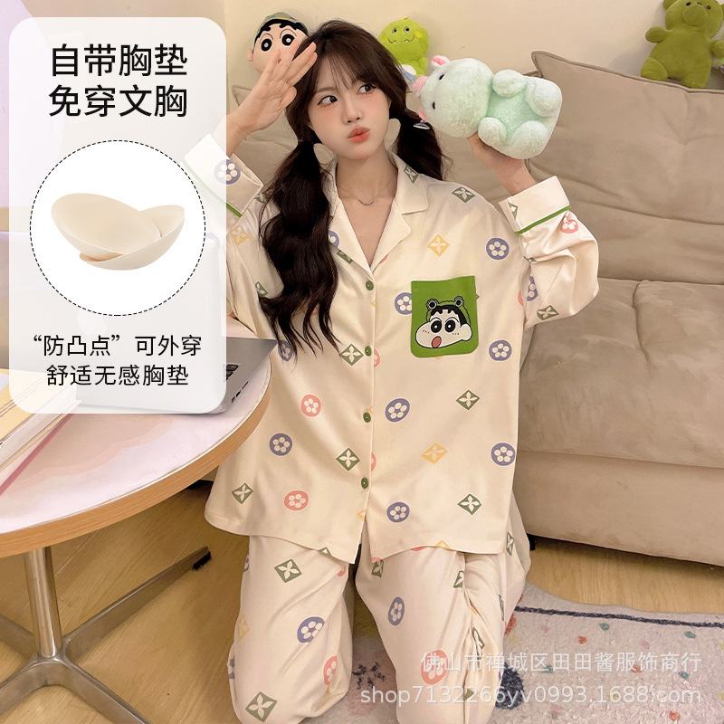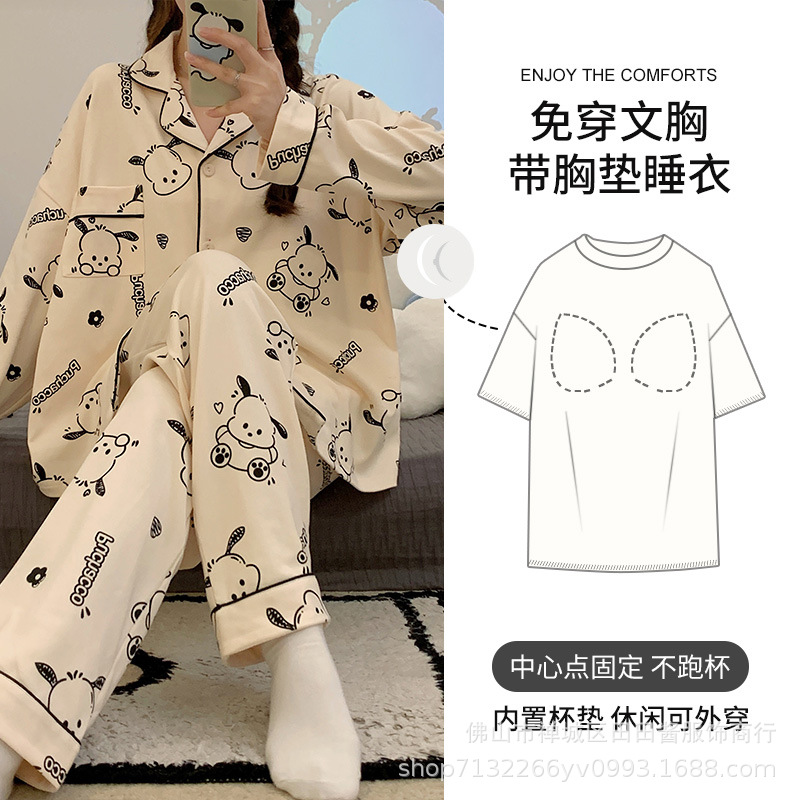 새로운 잠옷 여성용 긴팔 바지 카디건 옷깃 가짜 코튼 소녀 학생 투피스 플러스 사이즈 홈 옷 목욕스토어 가기