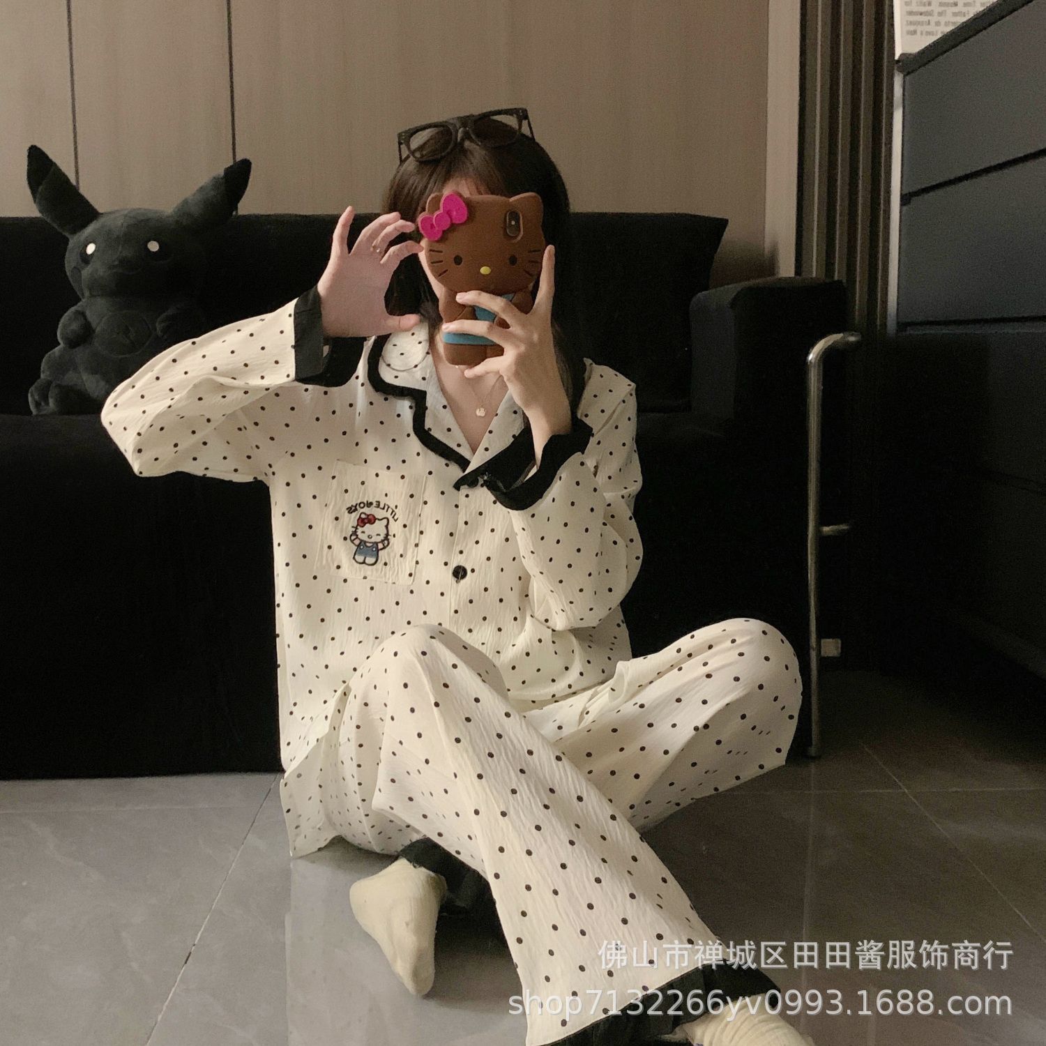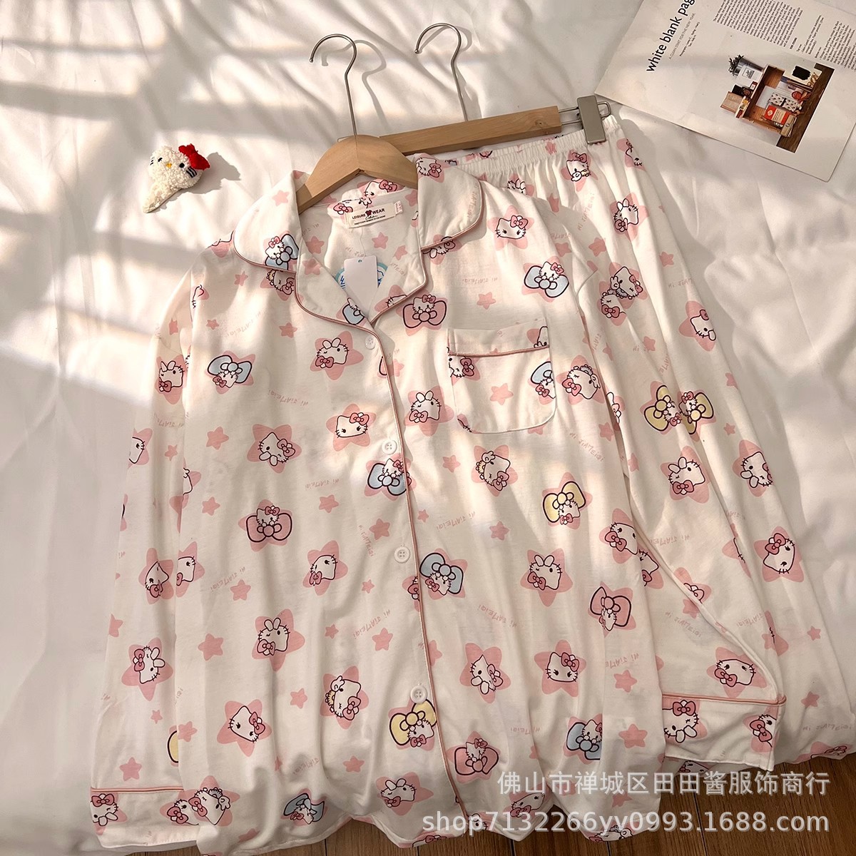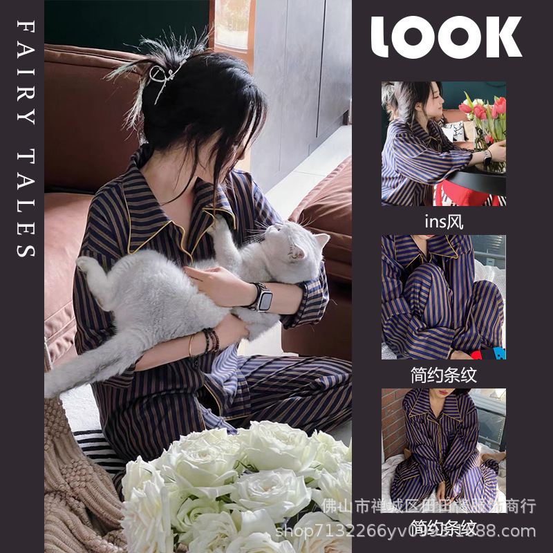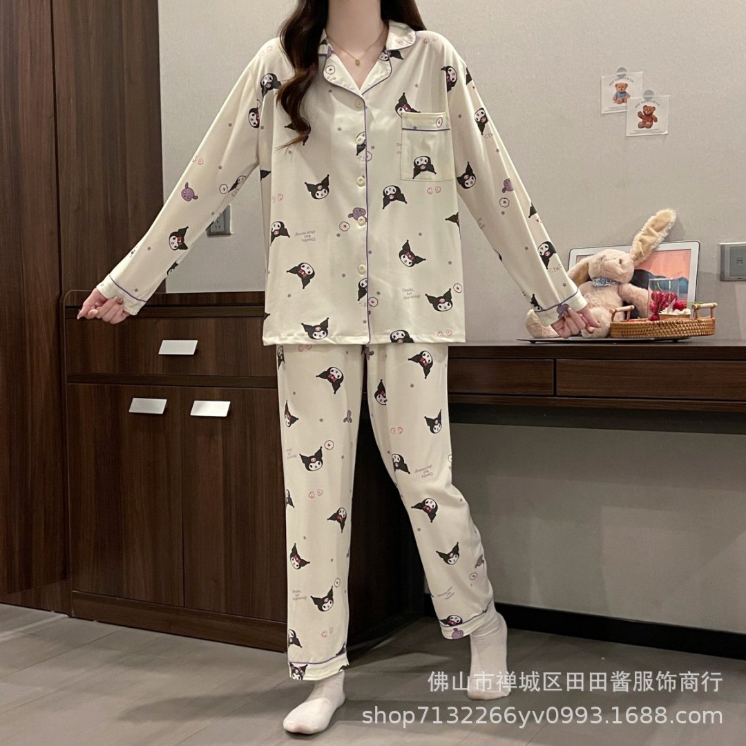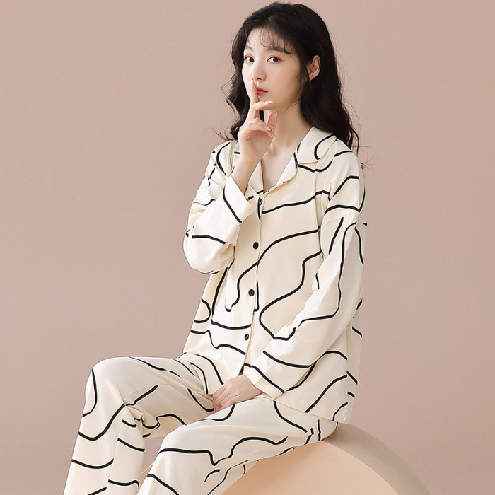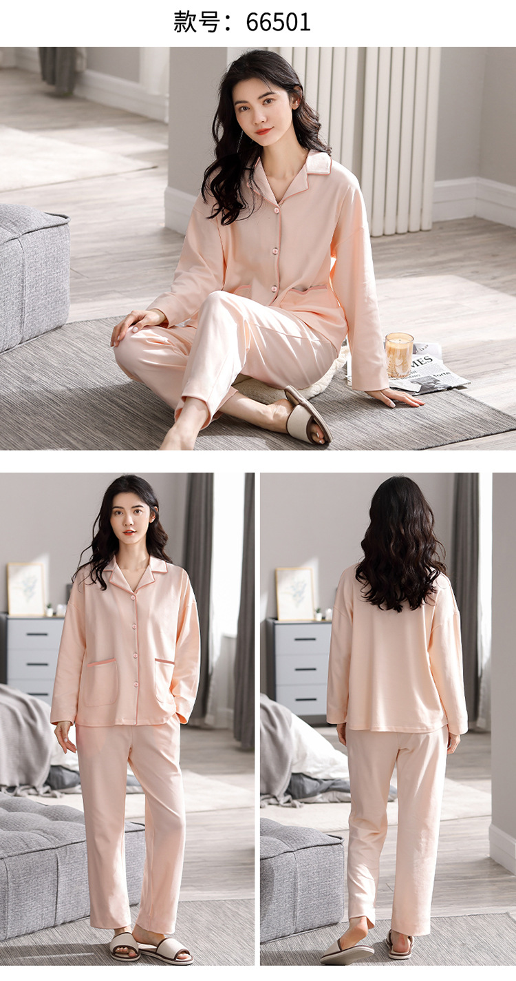 새로운 잠옷 여성용 긴팔 바지 카디건 옷깃 가짜 코튼 소녀 학생 투피스 플러스 사이즈 홈 옷 목욕스토어 가기