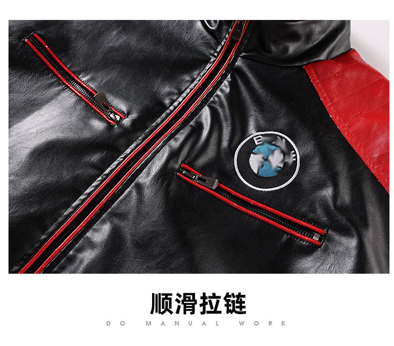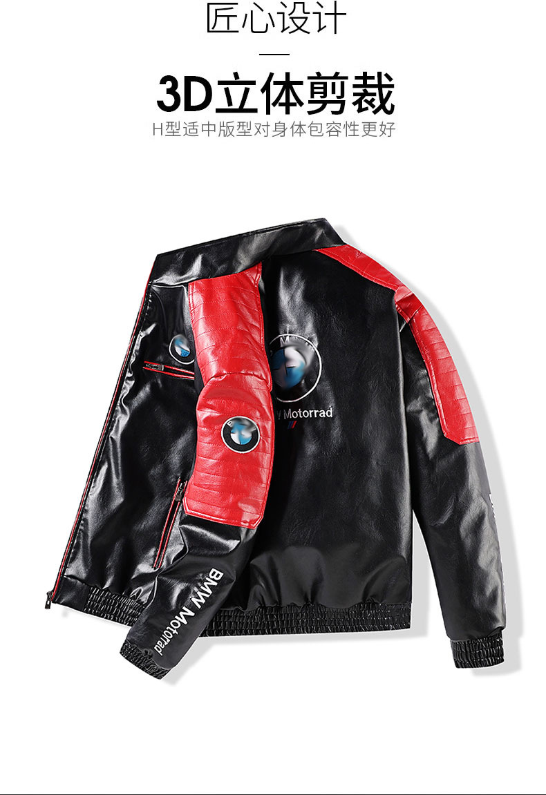 국경 2025 봄 유행 브랜드 가죽 코트 자수 BMW 두꺼운 PU 가죽 바이커 야구 세트 커플 재킷