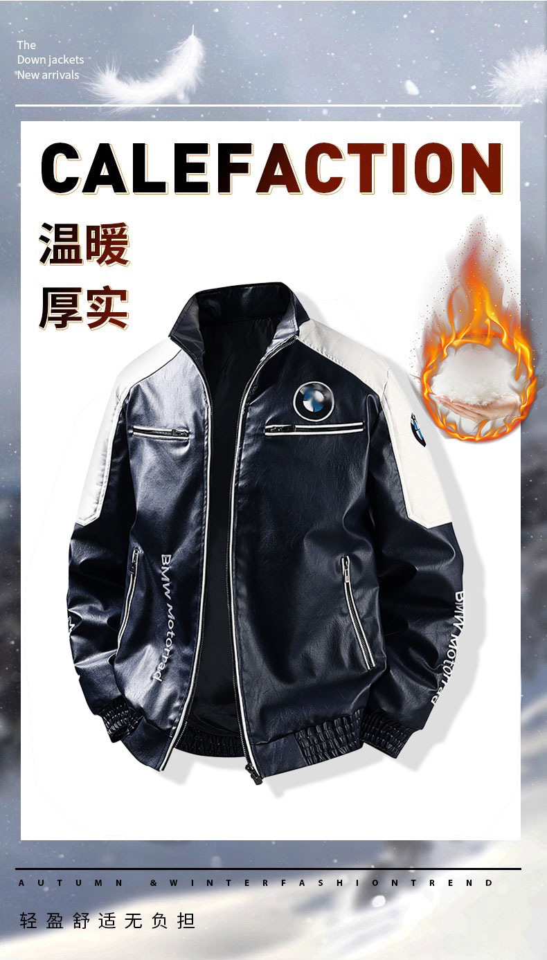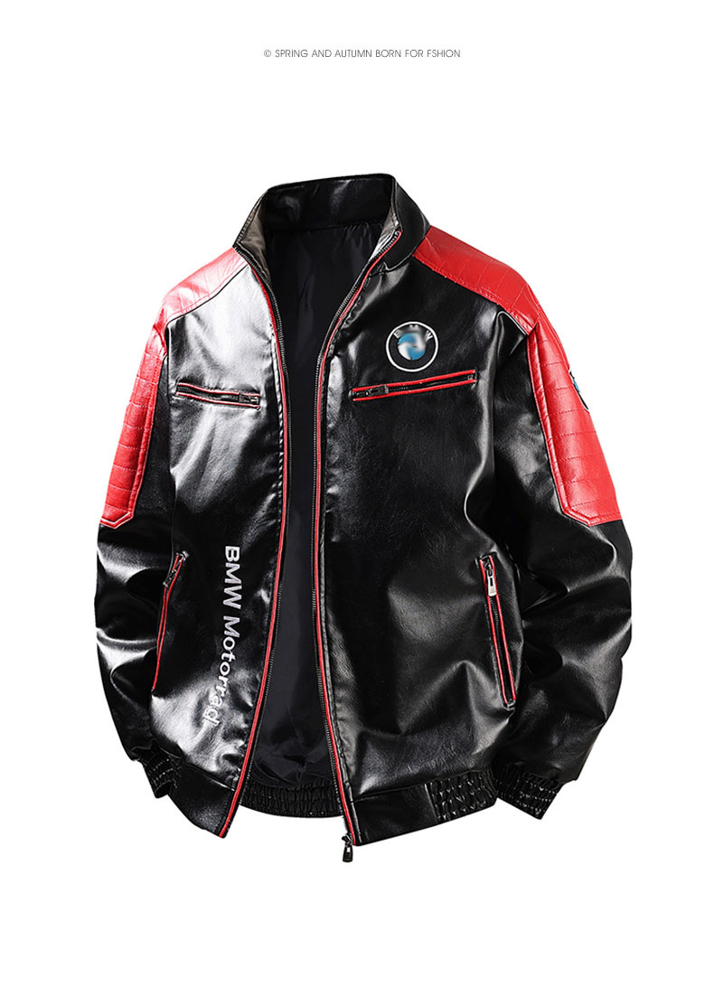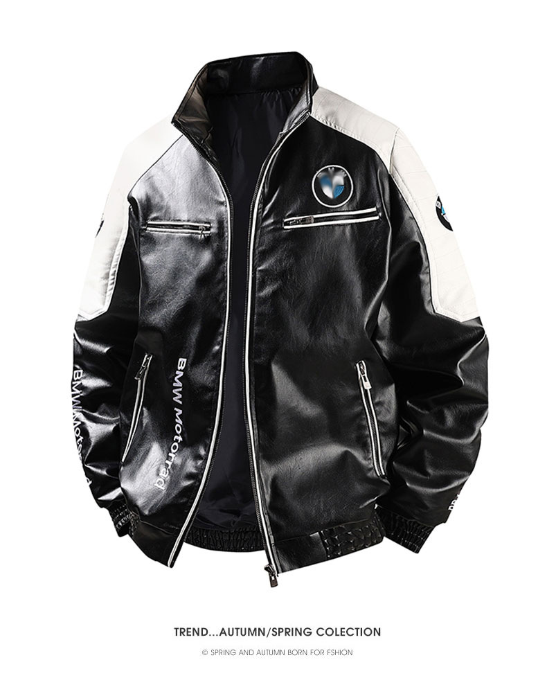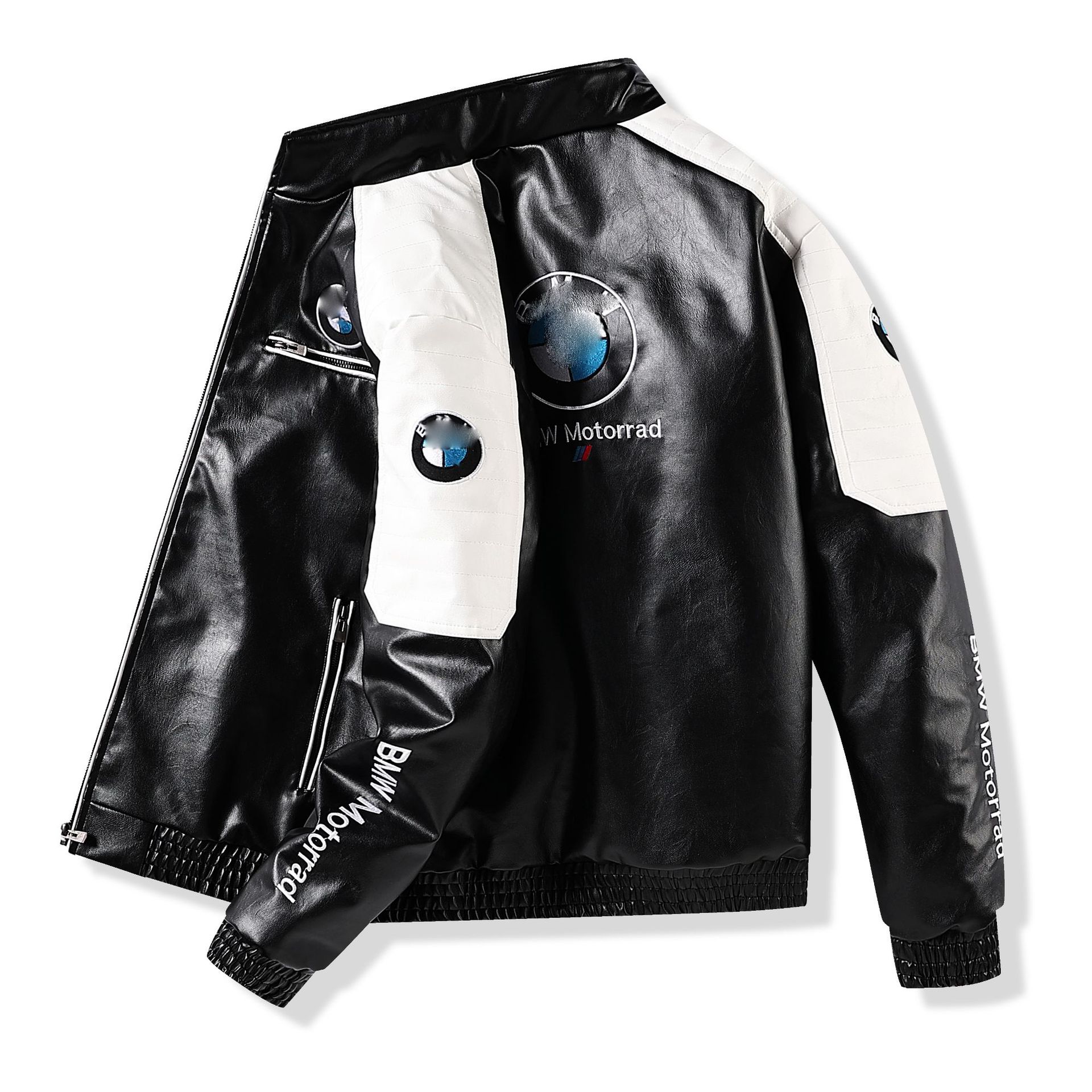국경 2025 봄 유행 브랜드 가죽 코트 자수 BMW 두꺼운 PU 가죽 바이커 야구 세트 커플 재킷스토어 가기