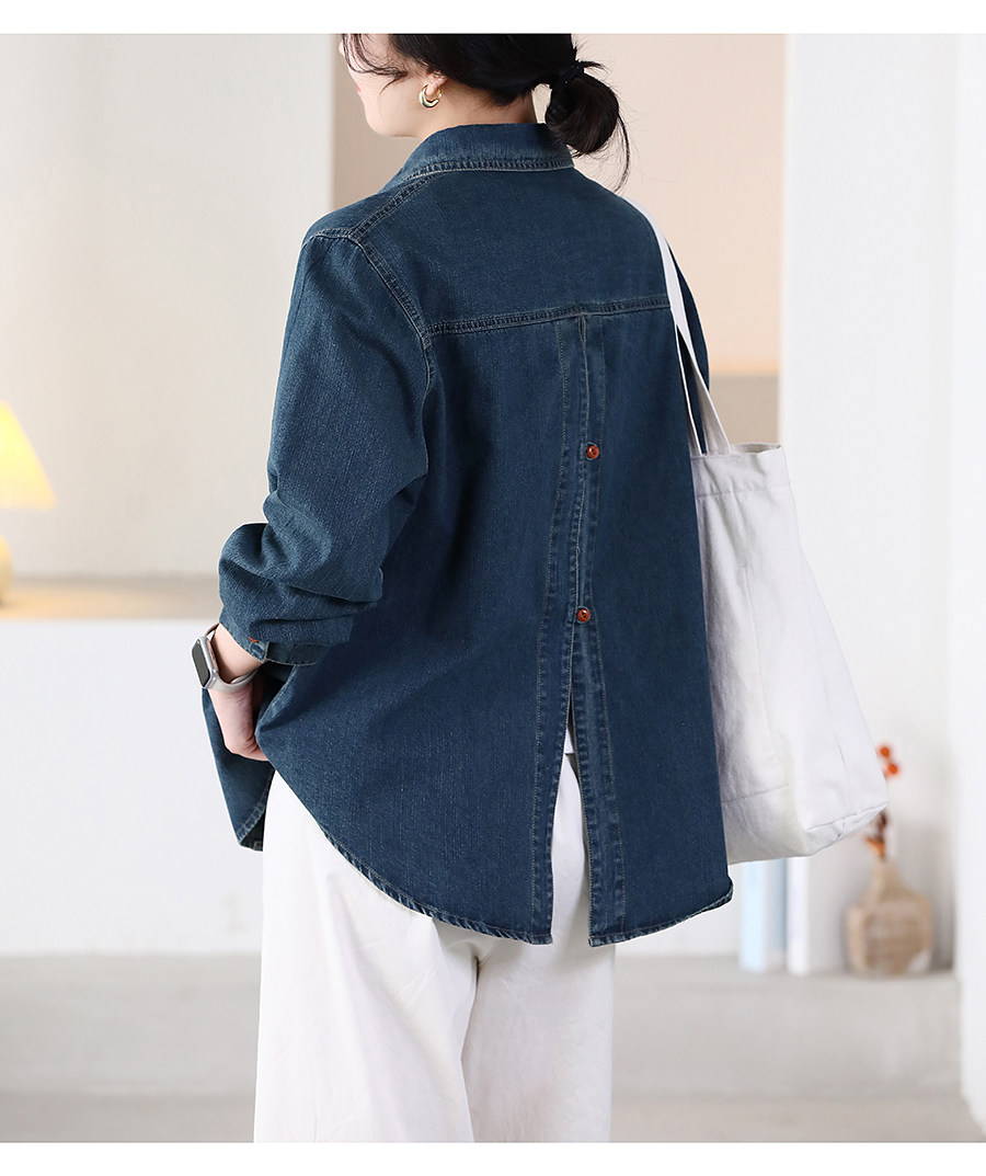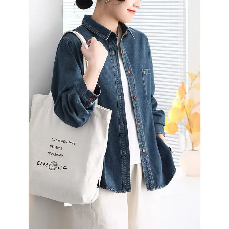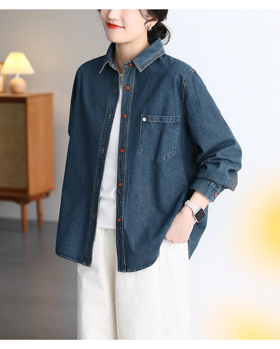 봄 새 데님 셔츠 여성용 옷깃 캐주얼 루즈 슬림 한국 스타일 셔츠 여성 6880