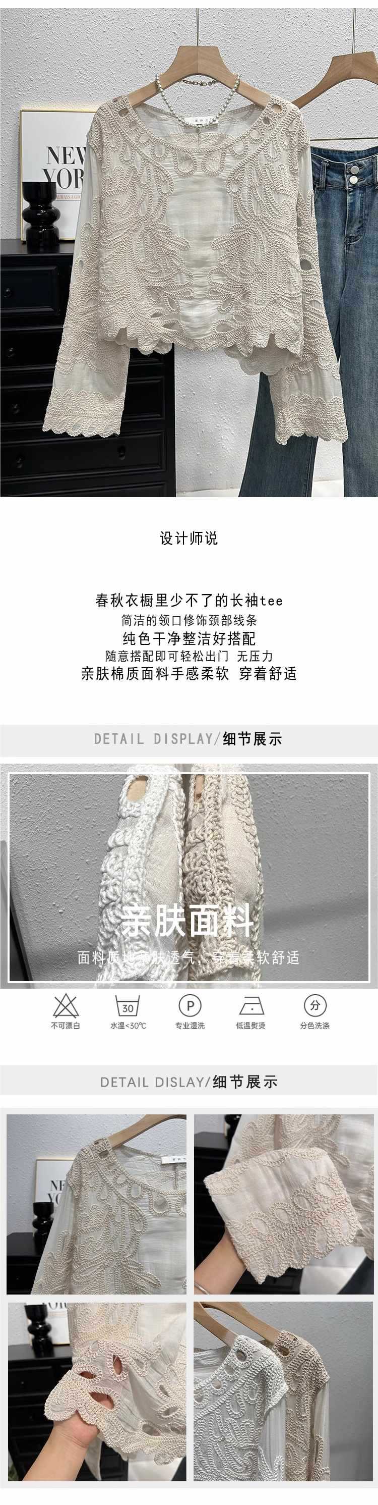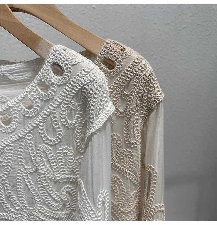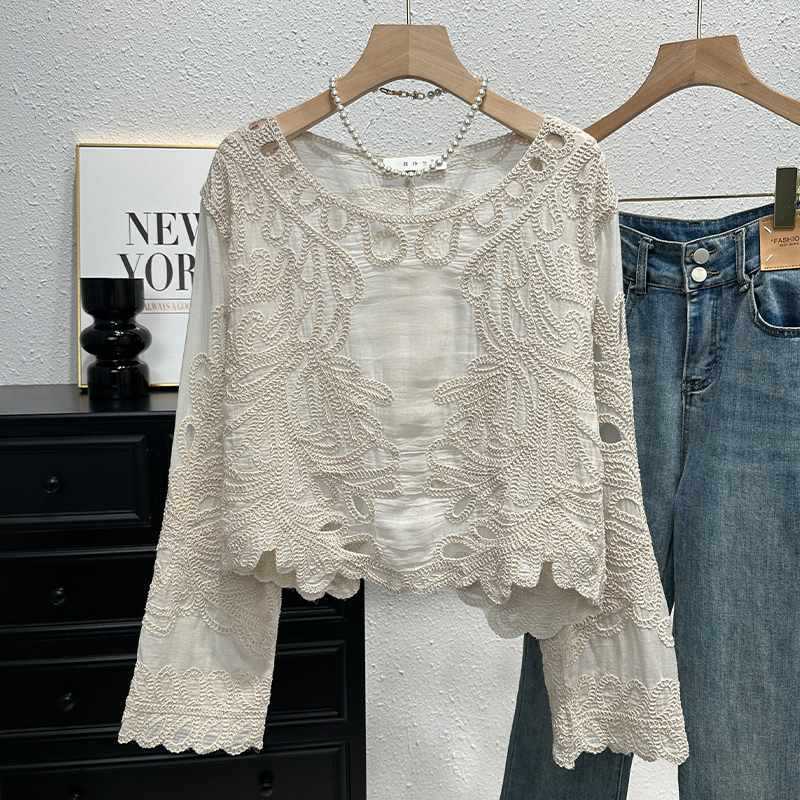 할로우 레이스 수놓은 고급 긴팔 셔츠 여성용 가을 한국식 시대를 줄이는 아름다운 작은 셔츠 달콤한 쉬폰 탑