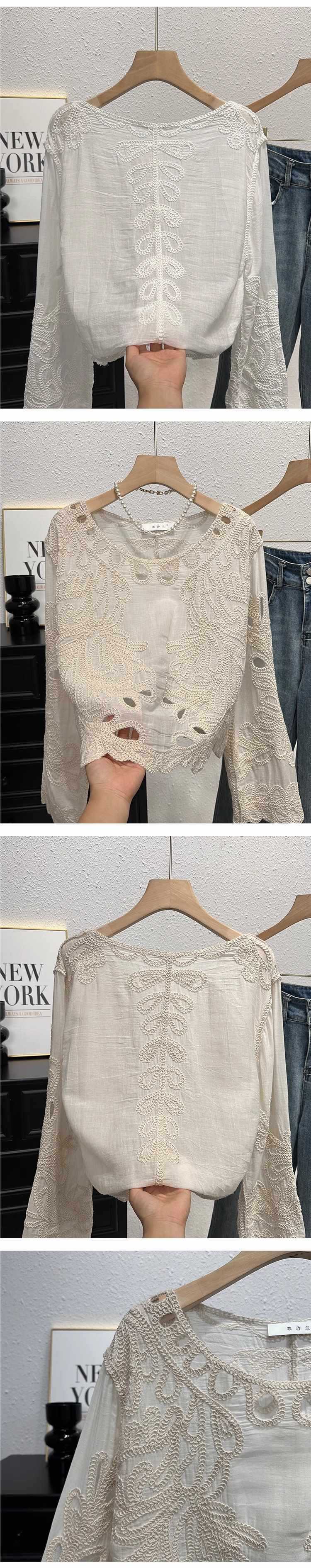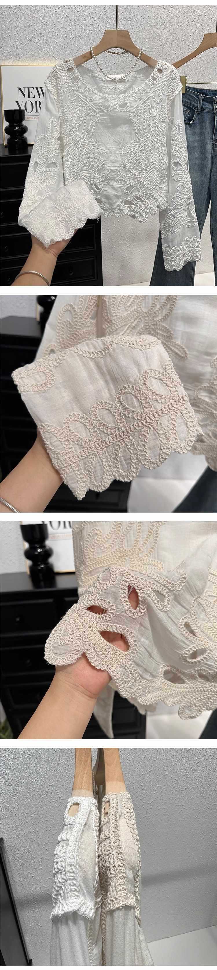 할로우 레이스 수놓은 고급 긴팔 셔츠 여성용 가을 한국식 시대를 줄이는 아름다운 작은 셔츠 달콤한 쉬폰 탑스토어 가기