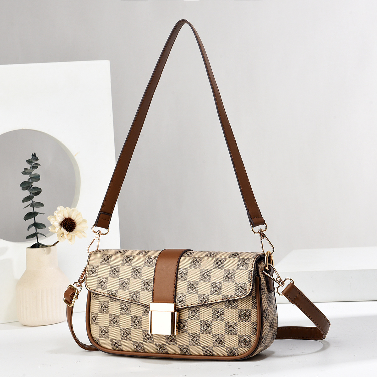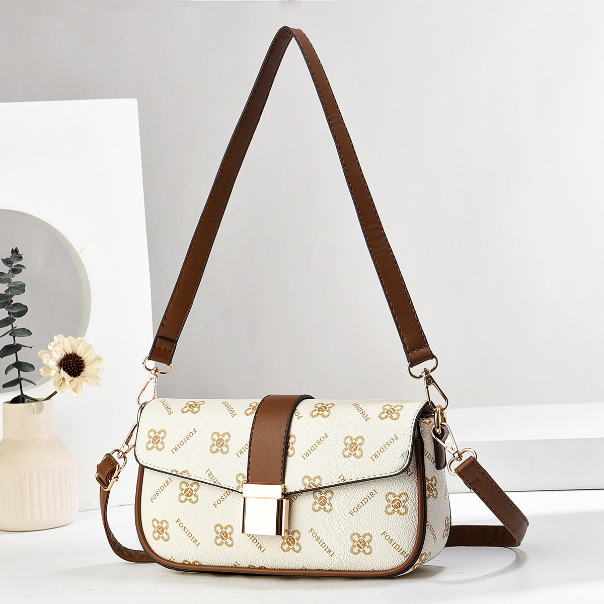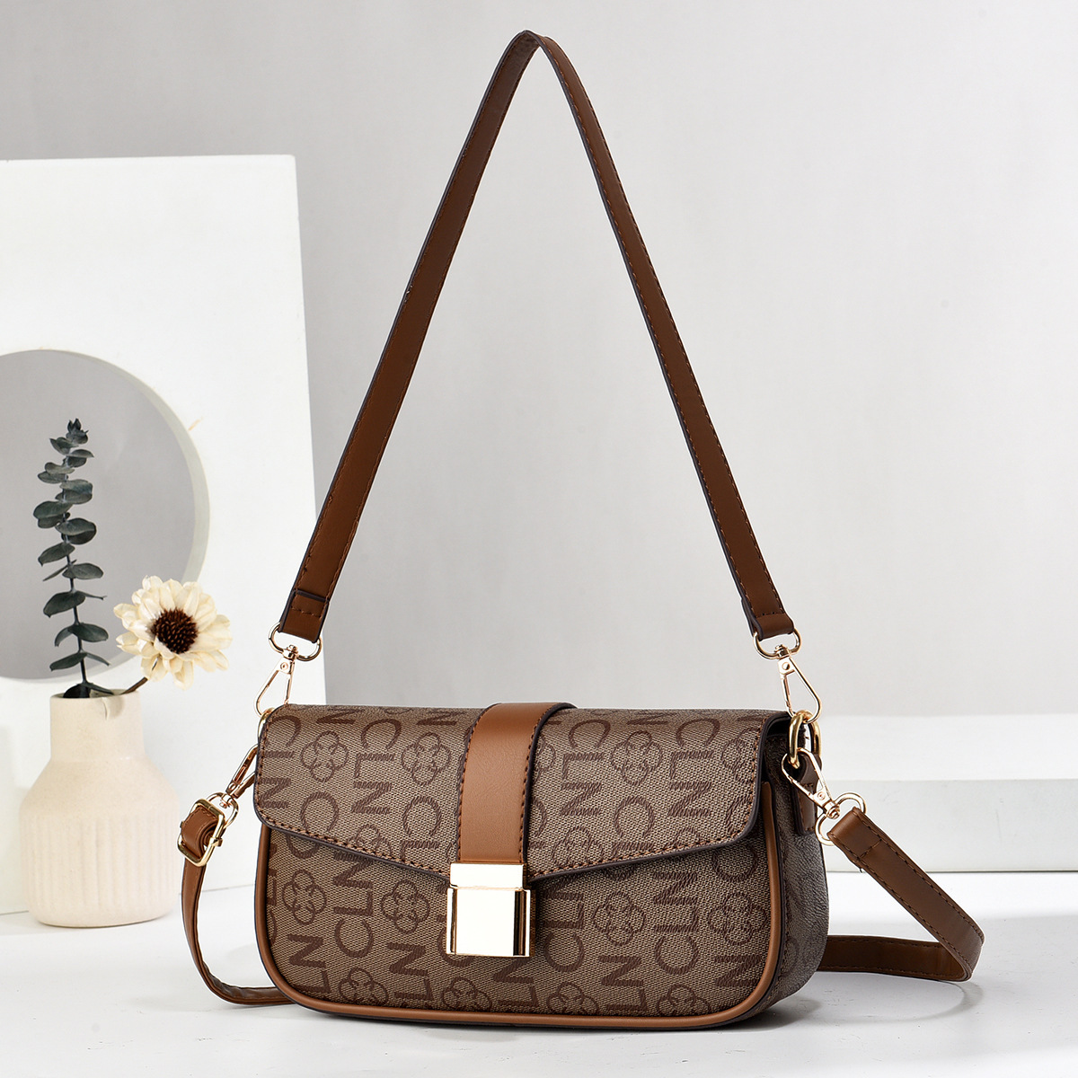 2024 국경 아마존 독립 디자인 여성 어깨 가방 휴대용 크로스 바디 휴대용 더블 스트랩 인쇄 패턴