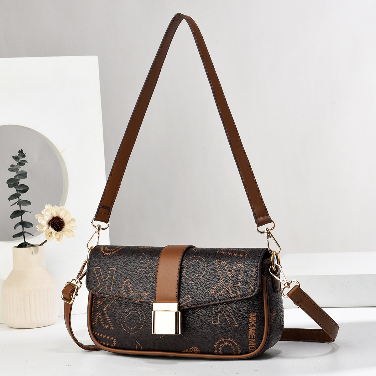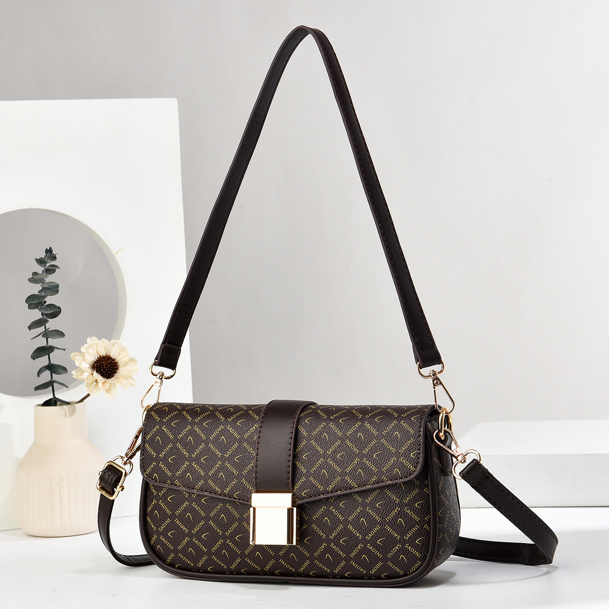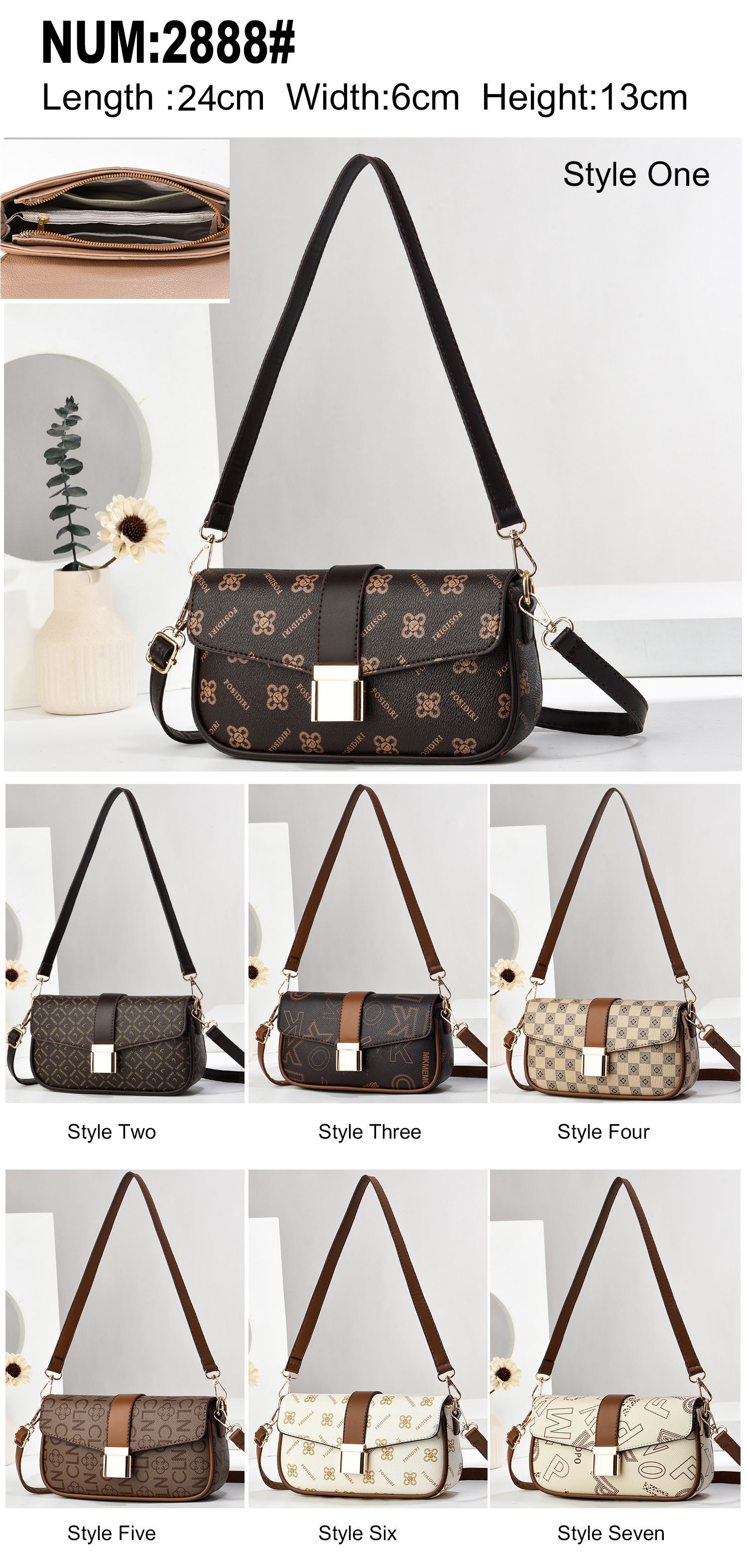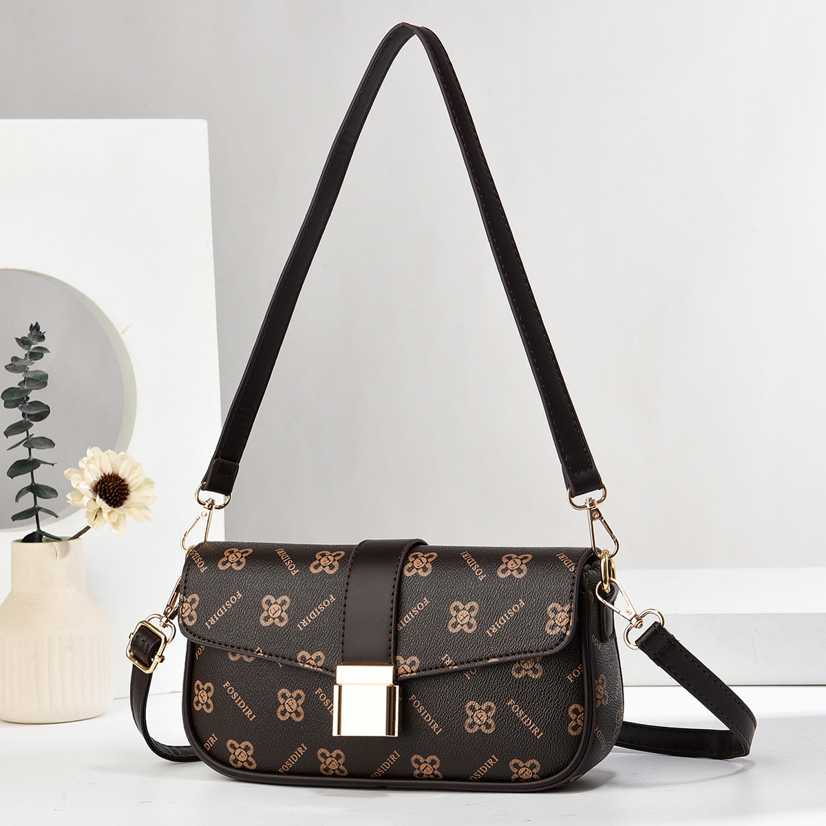 2024 국경 아마존 독립 디자인 여성 어깨 가방 휴대용 크로스 바디 휴대용 더블 스트랩 인쇄 패턴