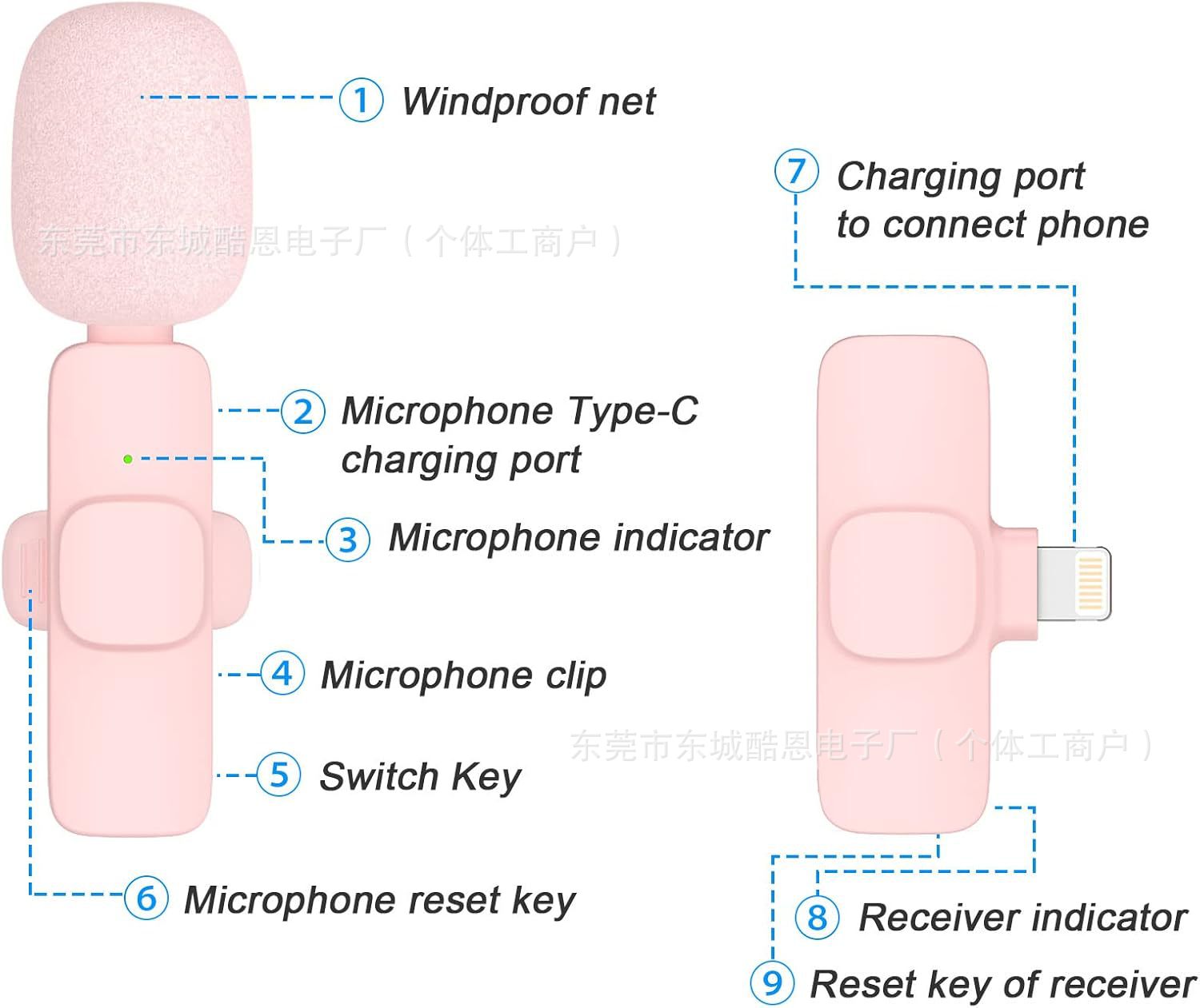 무선 칼라 클립 마이크 K1K9 핑크 1 드래그 2 흰색 휴대 전화 라이브 소음 감소 라디오 마오 마오 작은 마이크스토어 가기