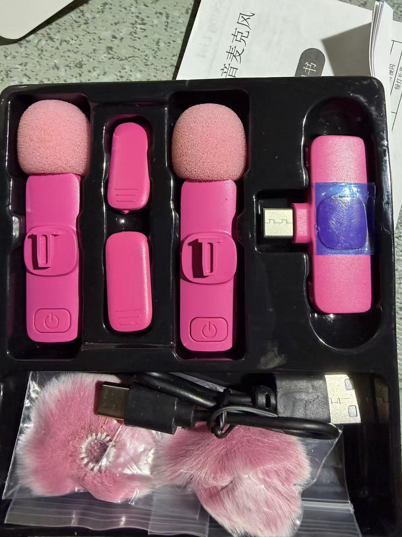 • 핑크 K9 듀얼 마이크 - TypeC + 핑크 헤어볼 2개 + 플랫 과일 어댑터 + USB + 보관 가방