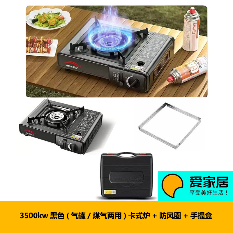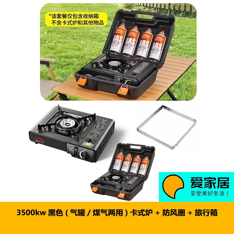 • 3500w 검정색(2인용) 카세트 스토브 + 방풍 링 + 휴대용 상자