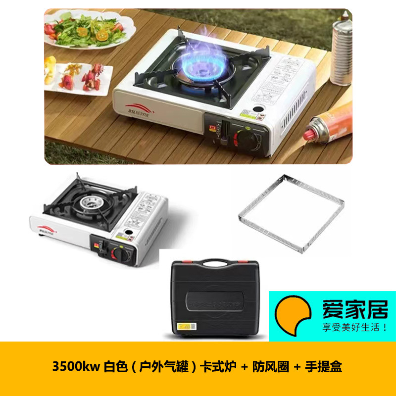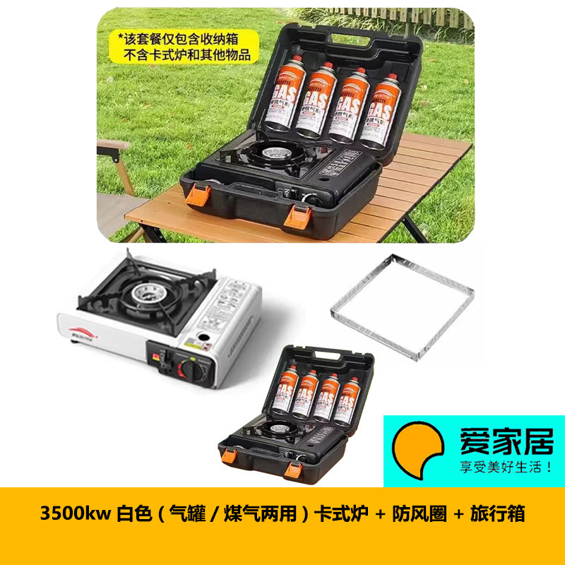 • 3500w 흰색(2인용) 카세트 스토브 + 방풍 링 + 휴대용 상자