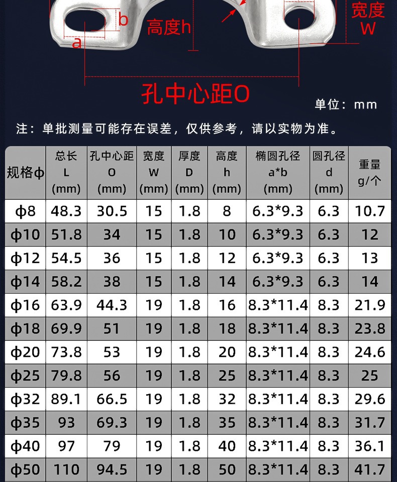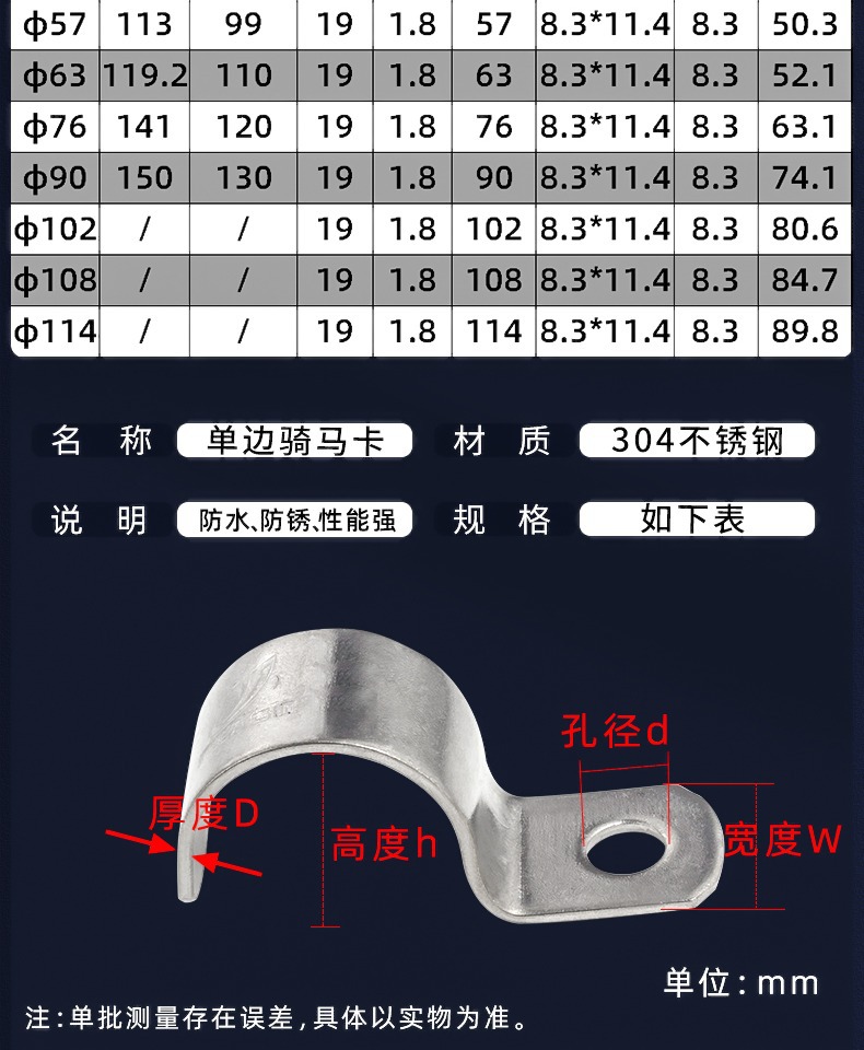 304 스테인레스 스틸 두껍게 승마 말 카드 파이프 클램프 U 자형 카드 일방적 인 버클 안장 카드 파이프 파이프 호스 클램프