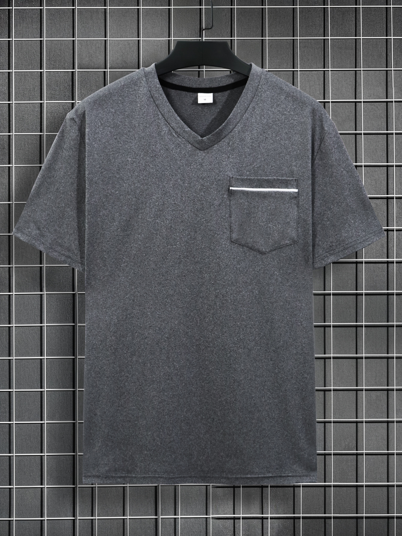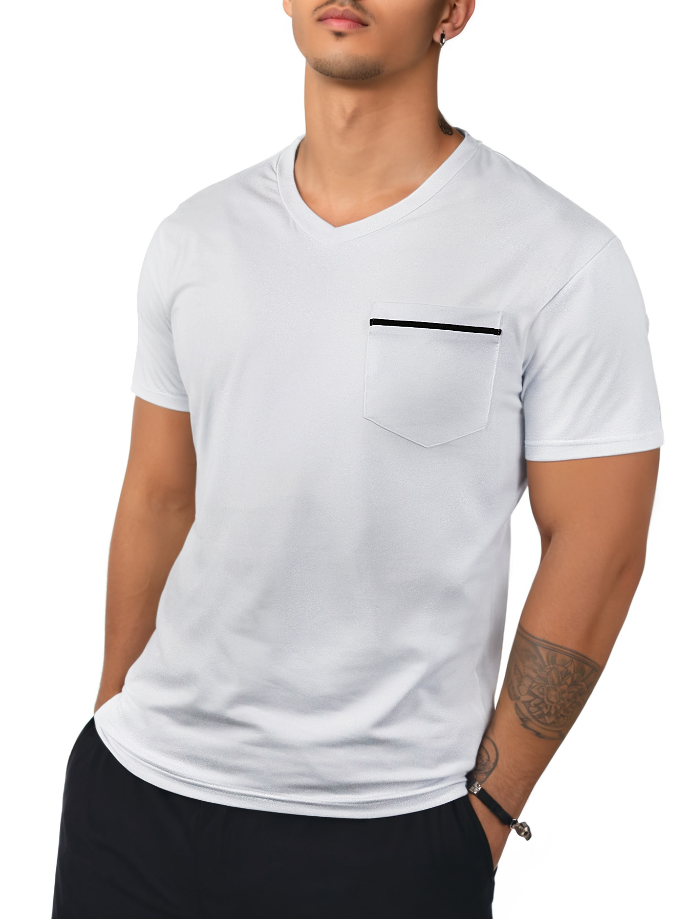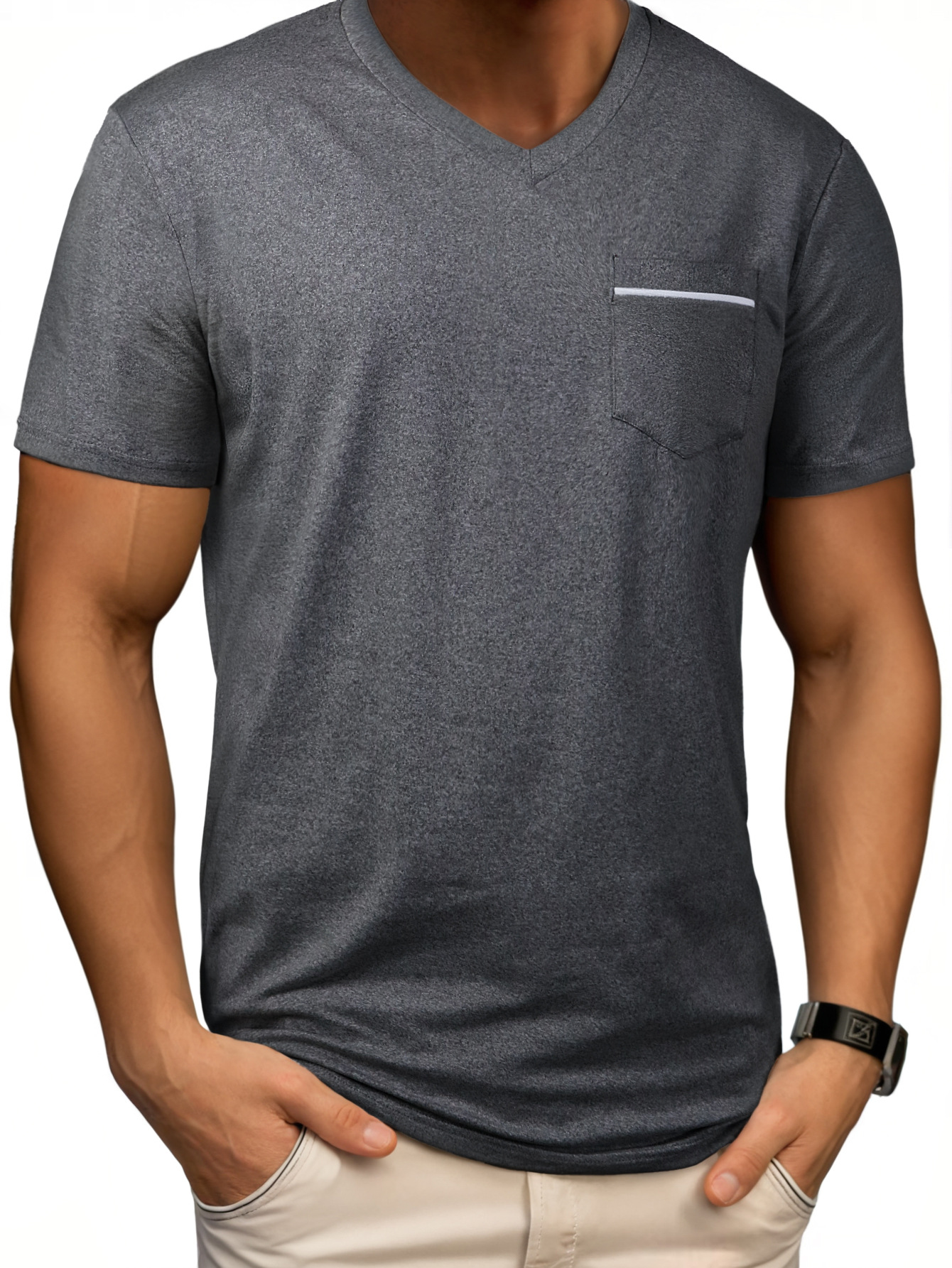 여름 새로운 남성 우유 실크 V 넥 반팔 티셔츠베이스 셔츠 반소매 티셔츠 탑 통기성 스포츠 캐주얼웨어