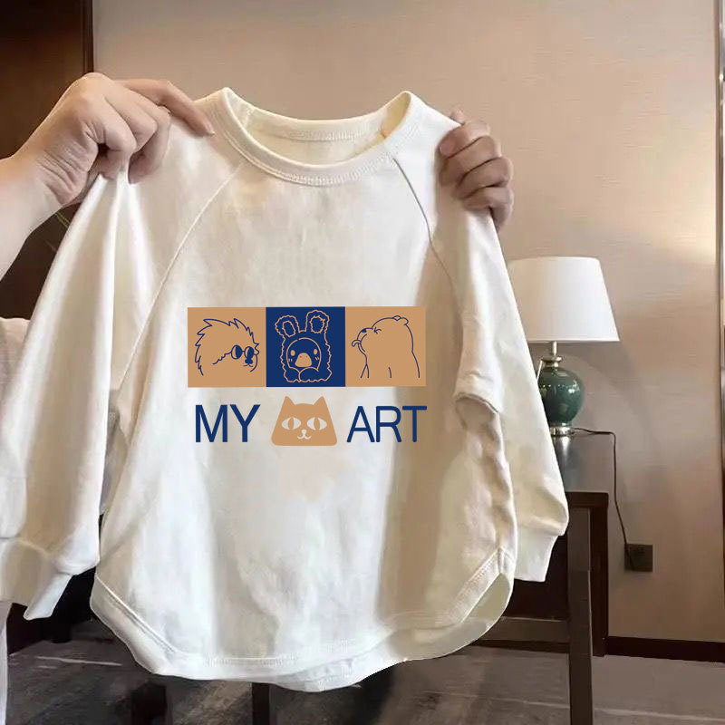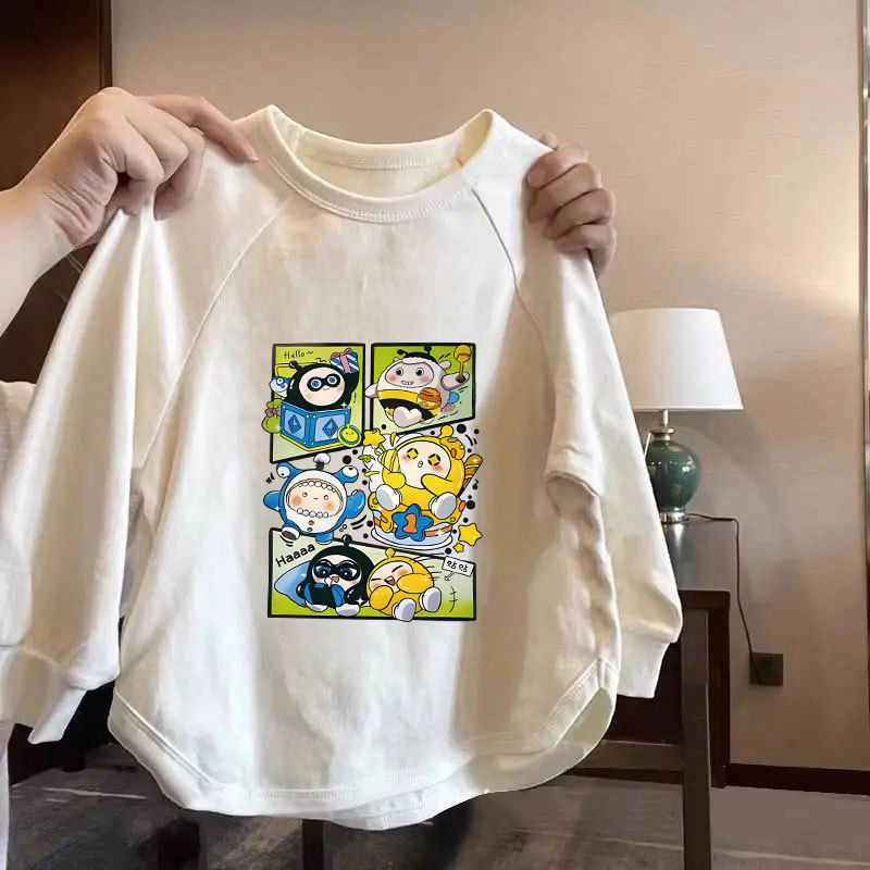[852 명 칭찬] 100 면화 어린이 긴팔 바닥 셔츠 봄과 가을 새로운 인쇄 외국식 레저 티셔츠 남성스토어 가기