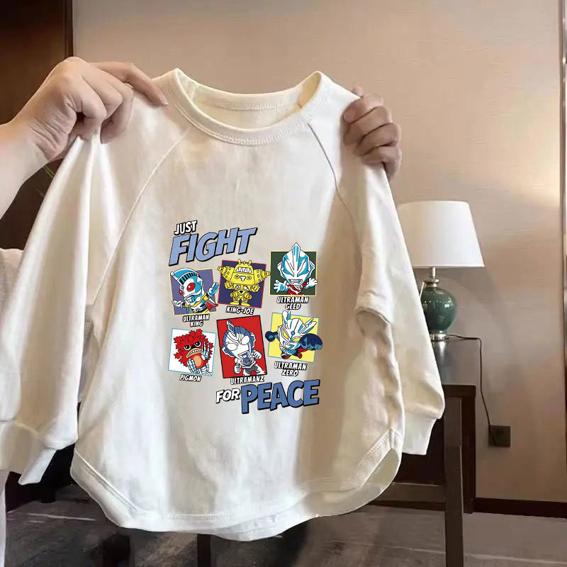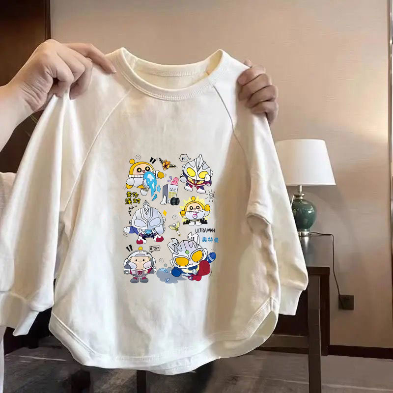 [852 명 칭찬] 100 면화 어린이 긴팔 바닥 셔츠 봄과 가을 새로운 인쇄 외국식 레저 티셔츠 남성