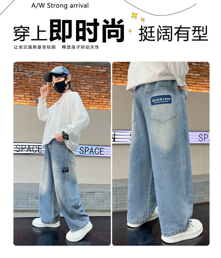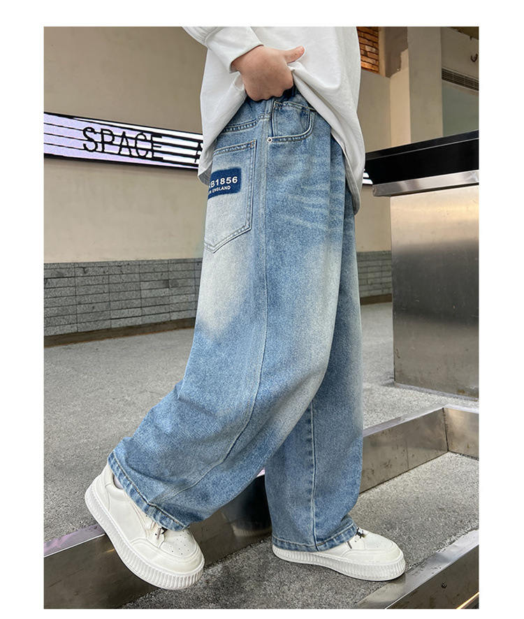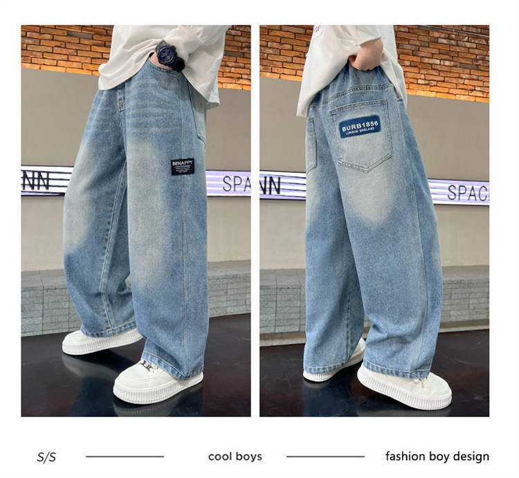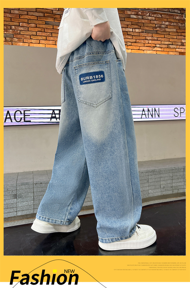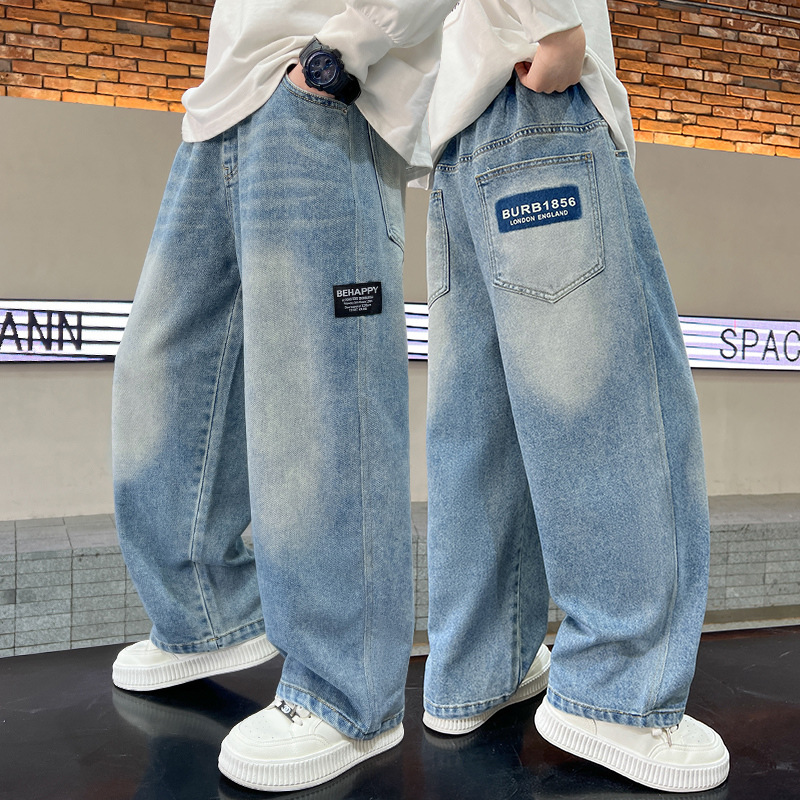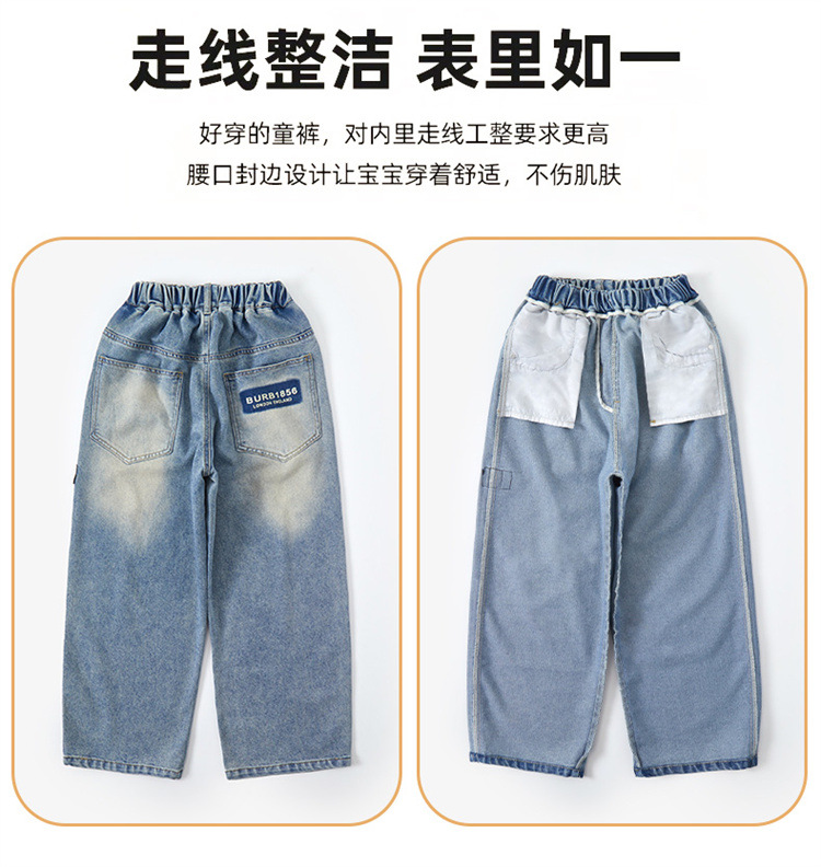 어린이 소년 봄 바지 2025 새로운 스타일 중대형 어린이 봄과 가을 소년 스트레이트 청바지 봄 바지스토어 가기
