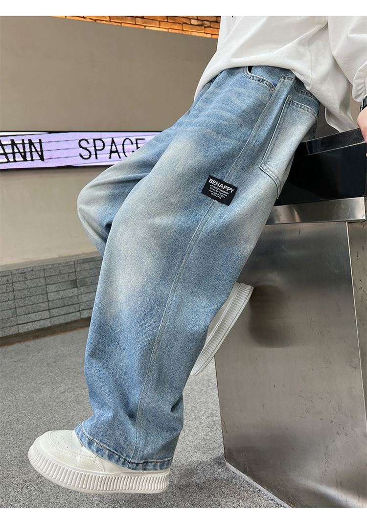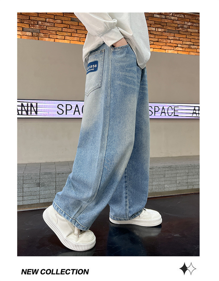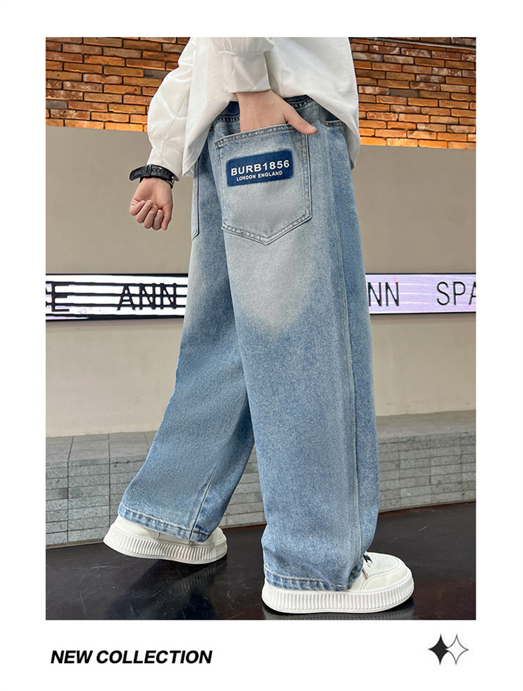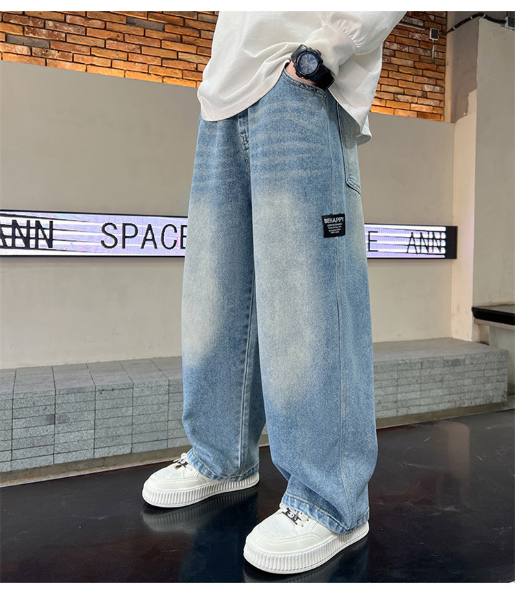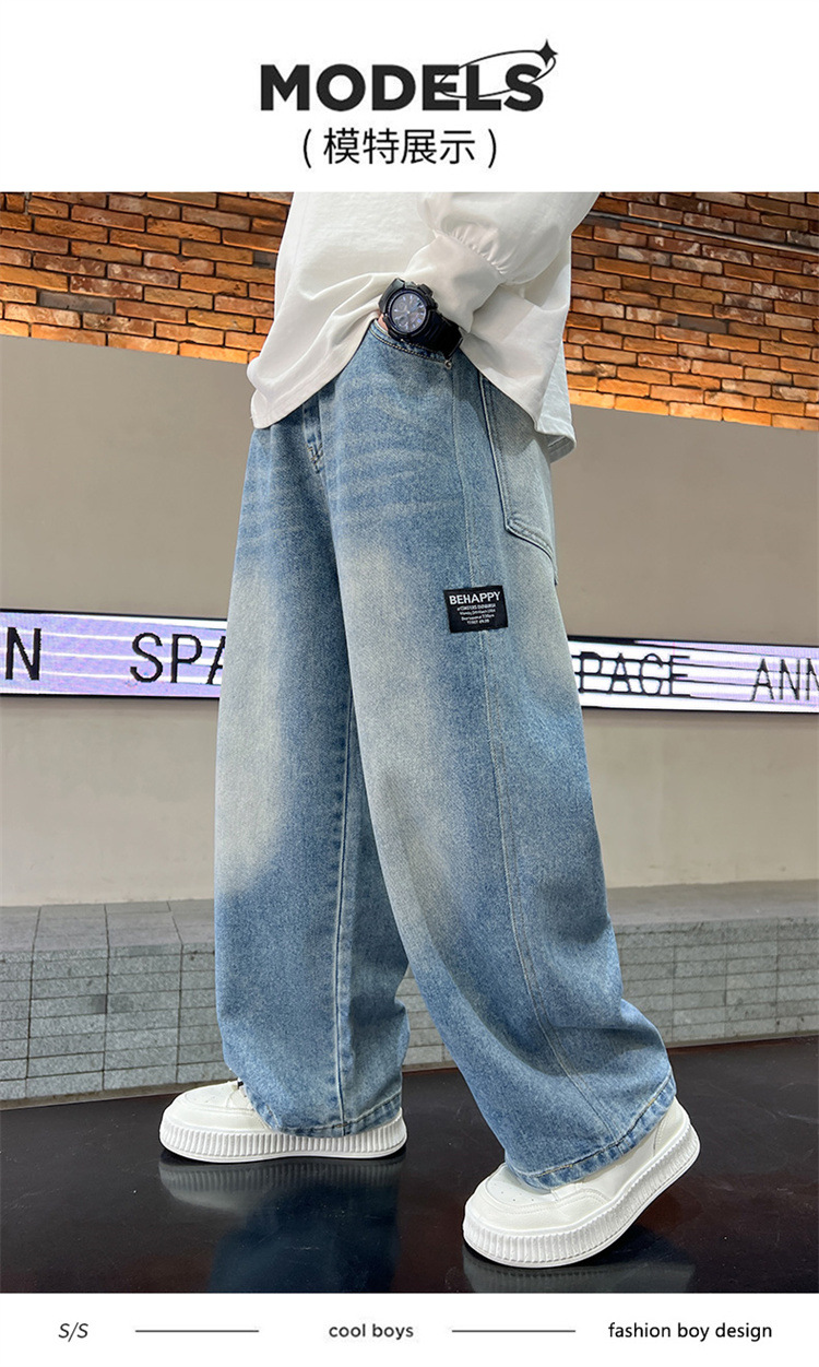 어린이 소년 봄 바지 2025 새로운 스타일 중대형 어린이 봄과 가을 소년 스트레이트 청바지 봄 바지스토어 가기