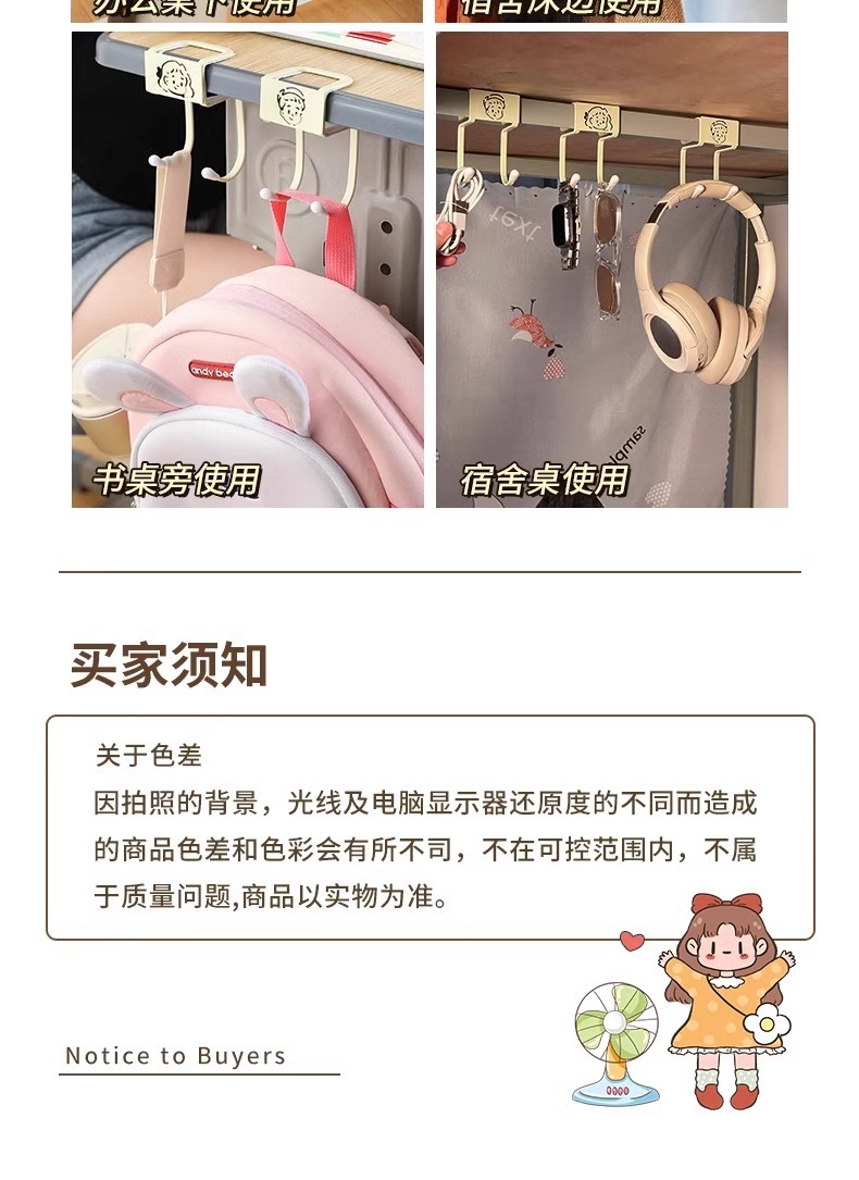 • 책상 옆면 후크-여아 스타일-1팩(안정적이고 미끄러지지 않음)