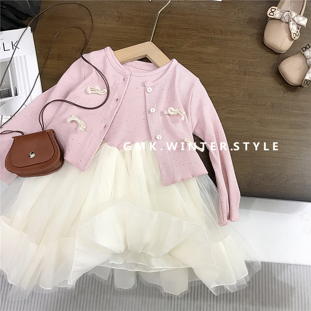소녀 원피스 봄 새 스타일 서양식 아기 공주 원피스 1 년 된 원피스 어린이 메쉬 원피스 세트 봄과 가을스토어 가기