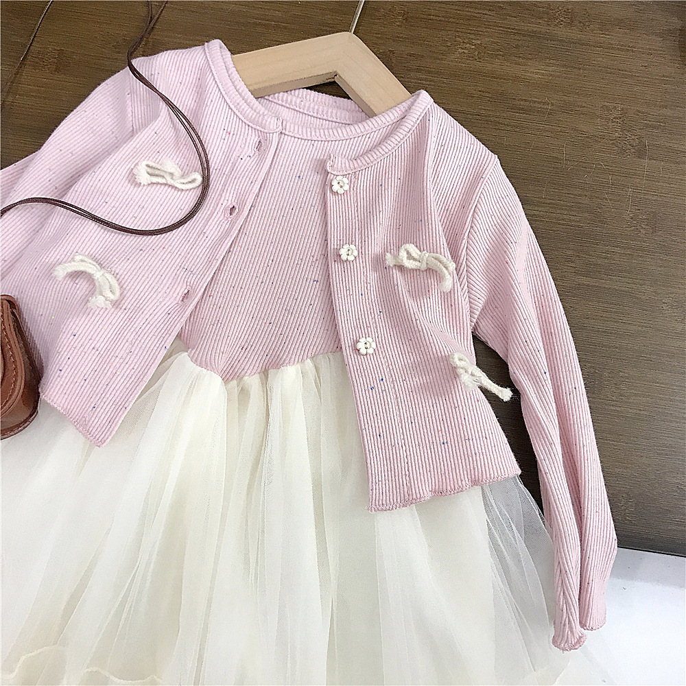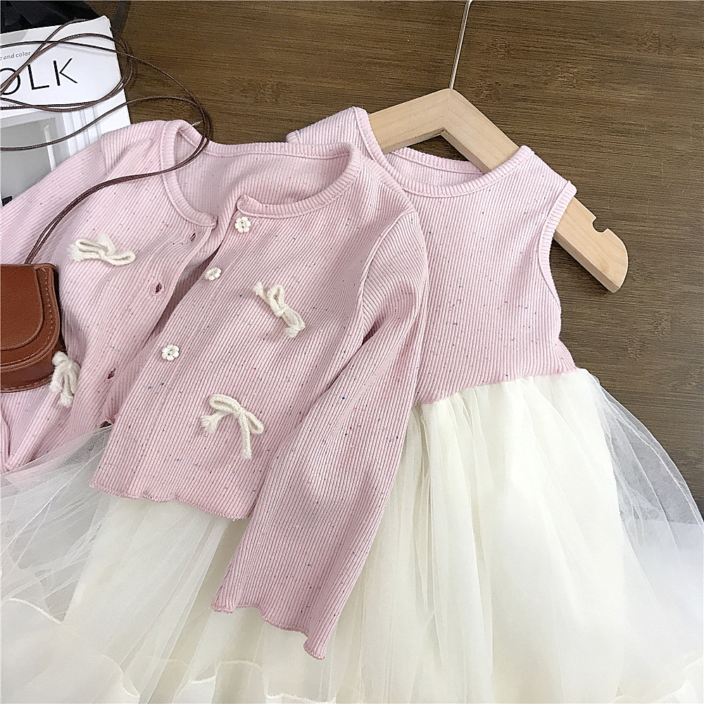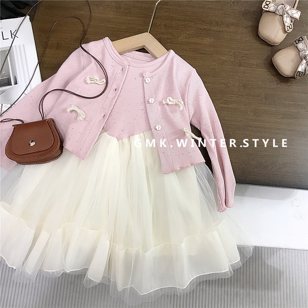 소녀 원피스 봄 새 스타일 서양식 아기 공주 원피스 1 년 된 원피스 어린이 메쉬 원피스 세트 봄과 가을