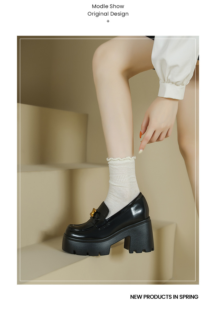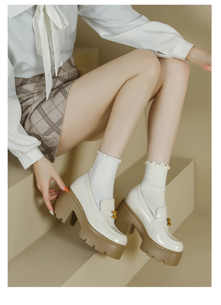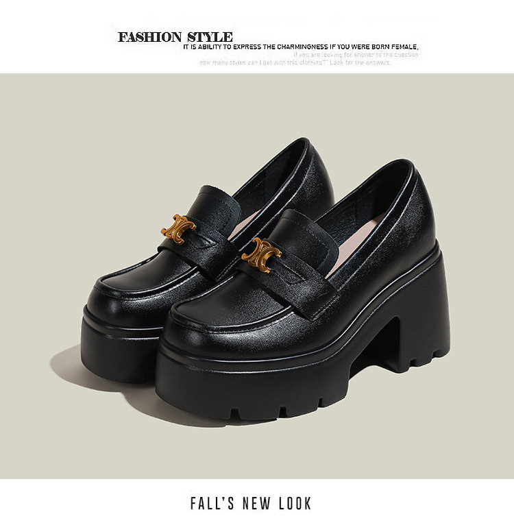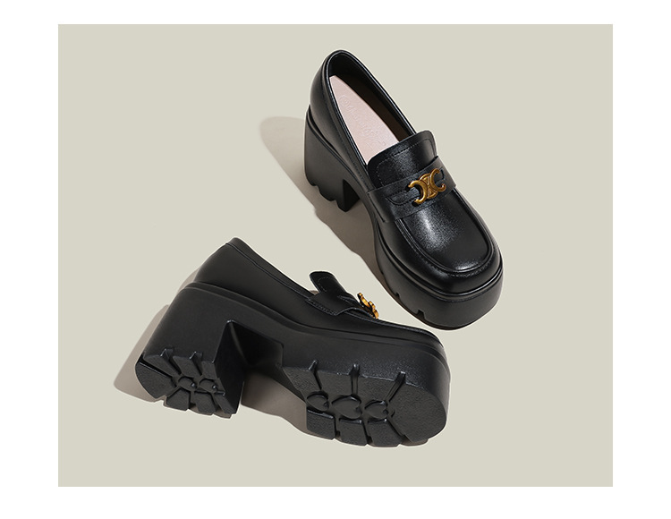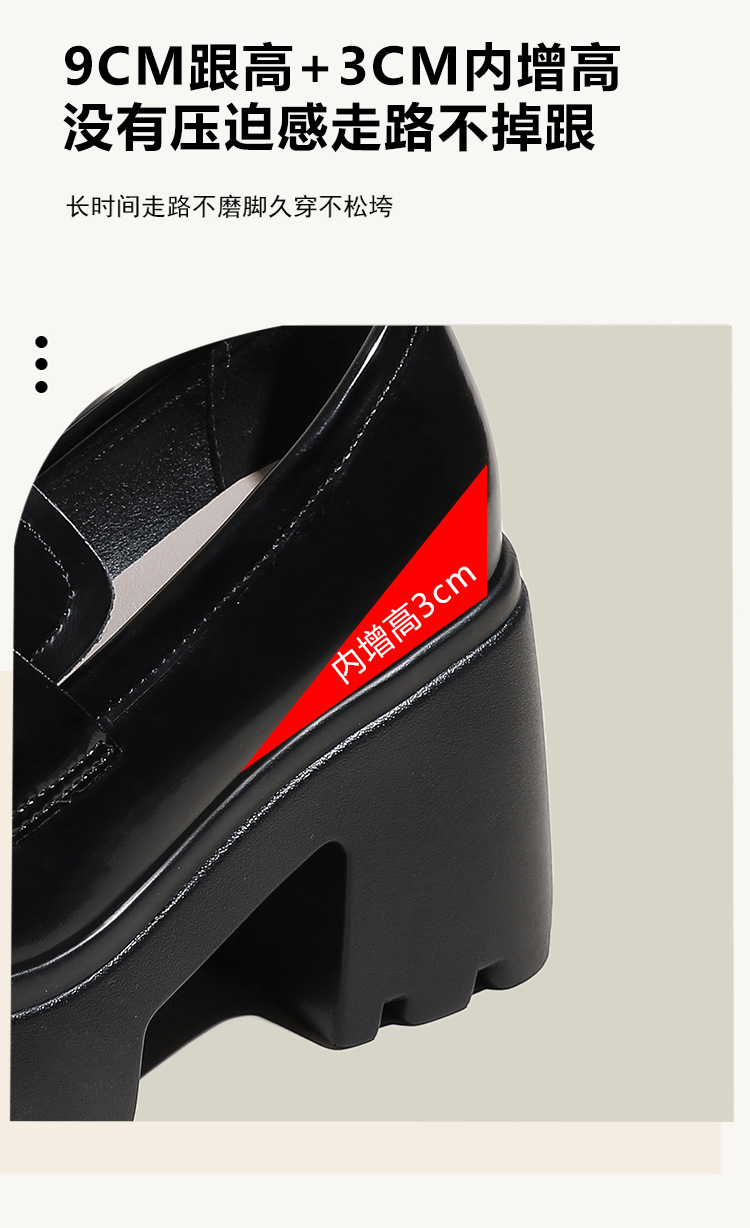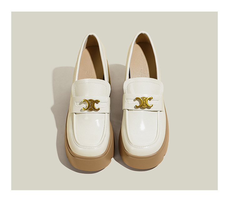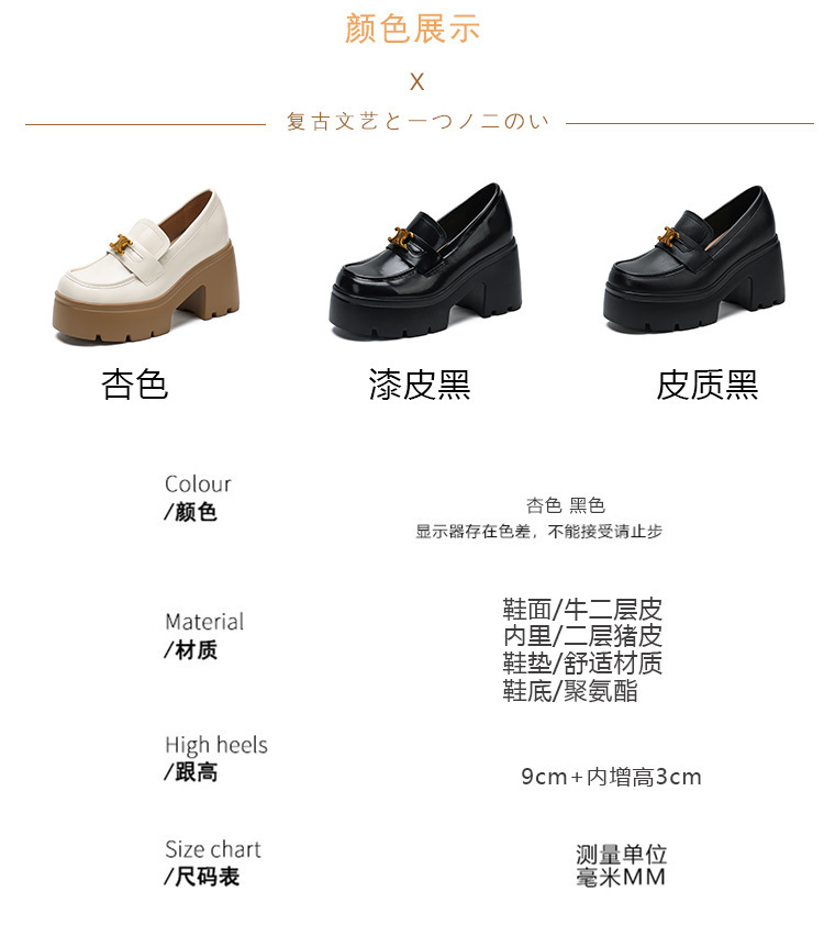 12cm 작은 높이 높이는 Loafers Arc de Triomphe 스몰 사이즈 두꺼운 밑창 영국 스타일 슬립 온 가죽 신발 여성용 싱글 레이어 신발스토어 가기