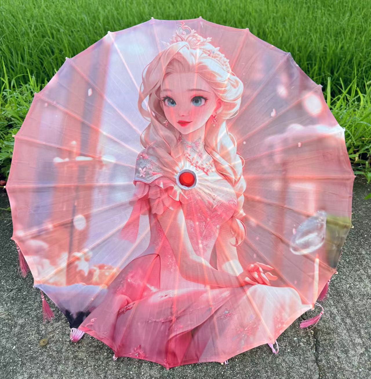 중형 70cm 어린이 골동품 공주 아이샤 만화 오일 종이 우산 한푸 우산 댄스 사진 공예 우산