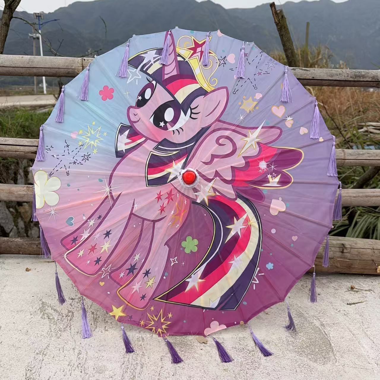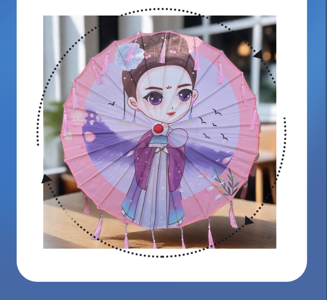 중형 70cm 어린이 골동품 공주 아이샤 만화 오일 종이 우산 한푸 우산 댄스 사진 공예 우산스토어 가기