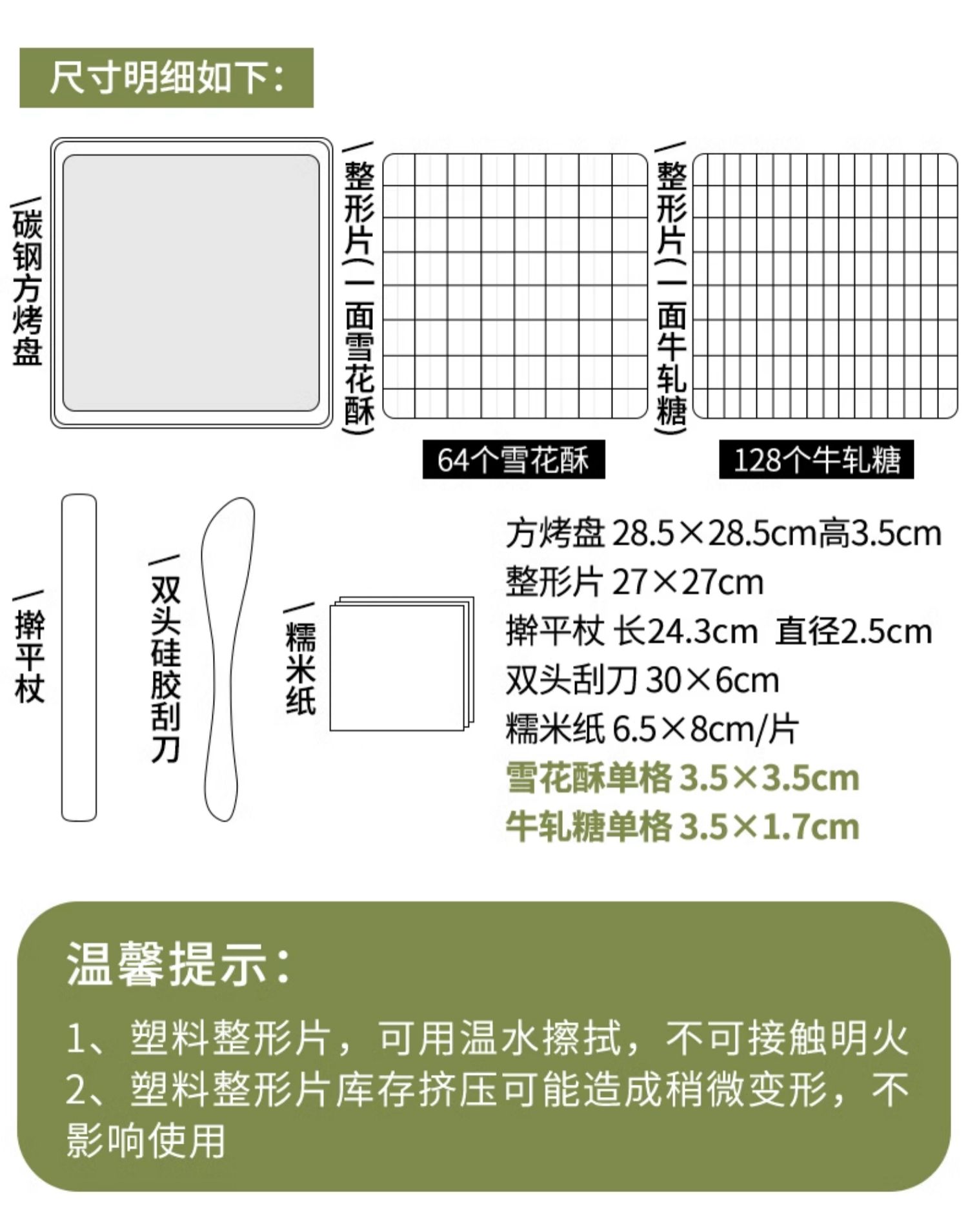눈송이 파삭 바삭한 누가 곰팡이 트레이 비 스틱 베이커웨어 가정용 냉각 성형 재료 전체 세트 베이킹 도구 세트