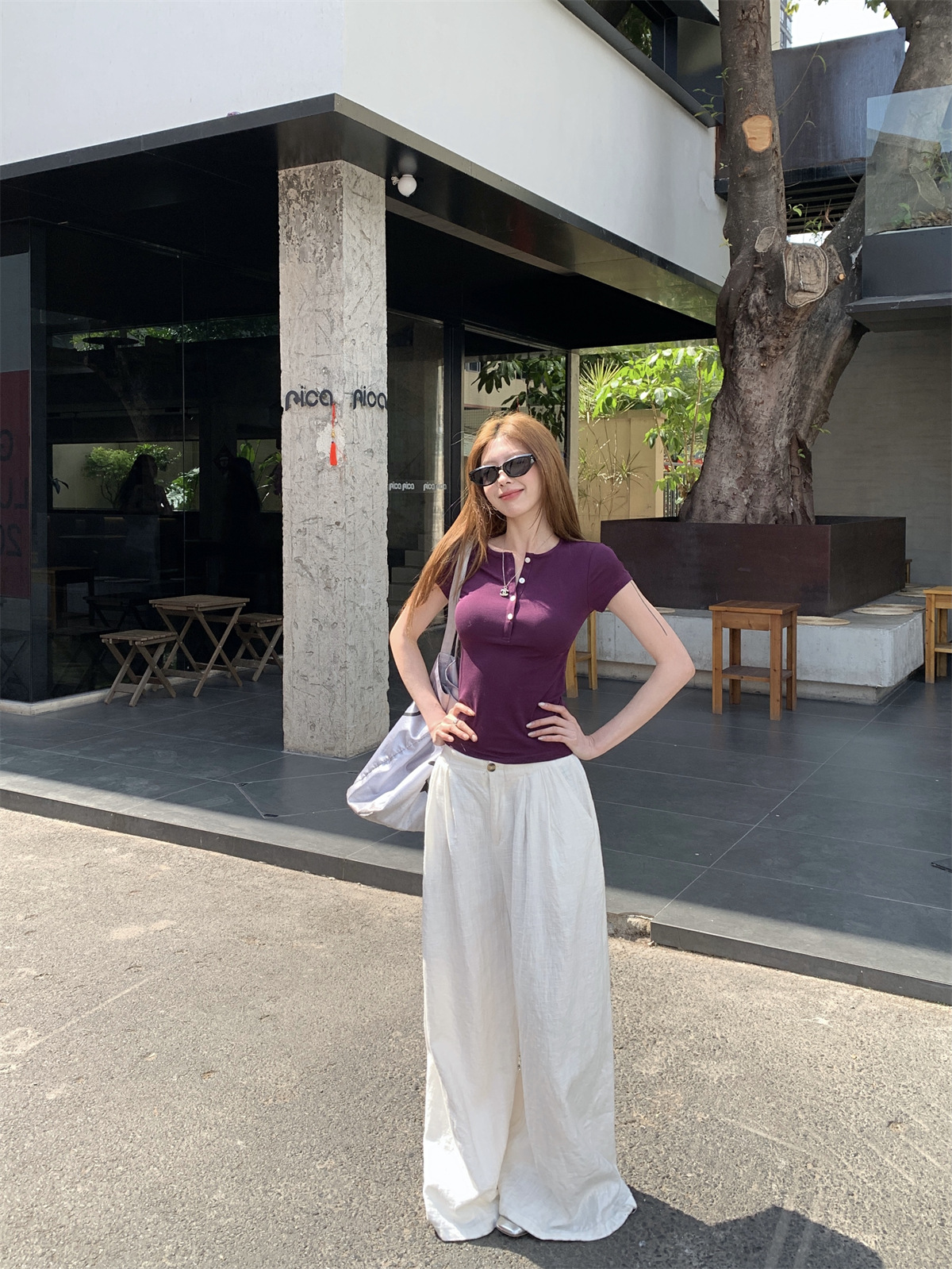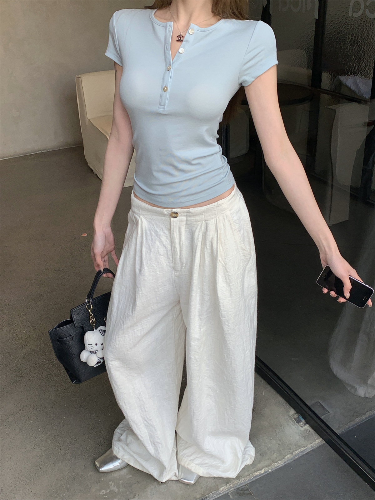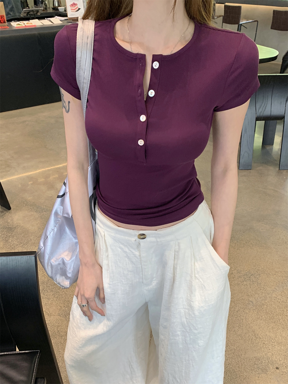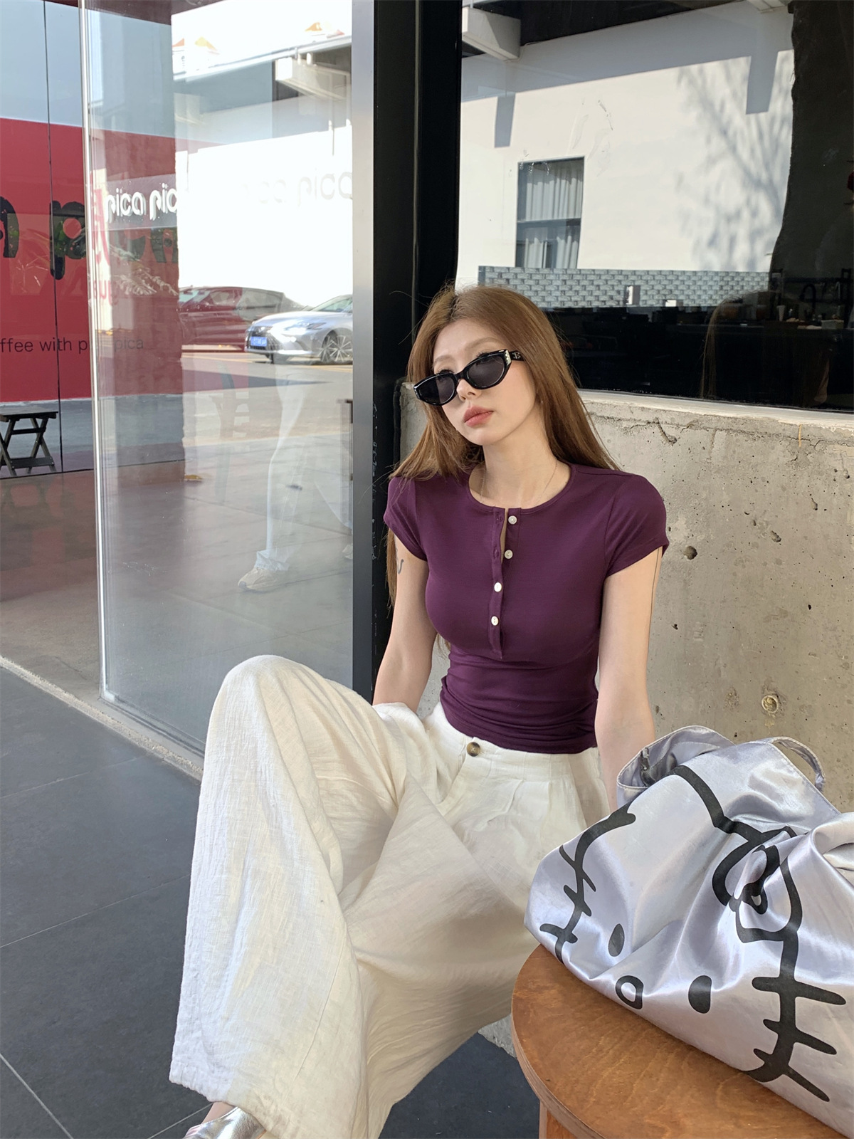 블루 반팔 어깨 티셔츠 여성용 여름 반 오픈 칼라 슬림 핏 슬림 핏 스파이스 걸스 내부 스트레치 타이트베이스 탑스토어 가기