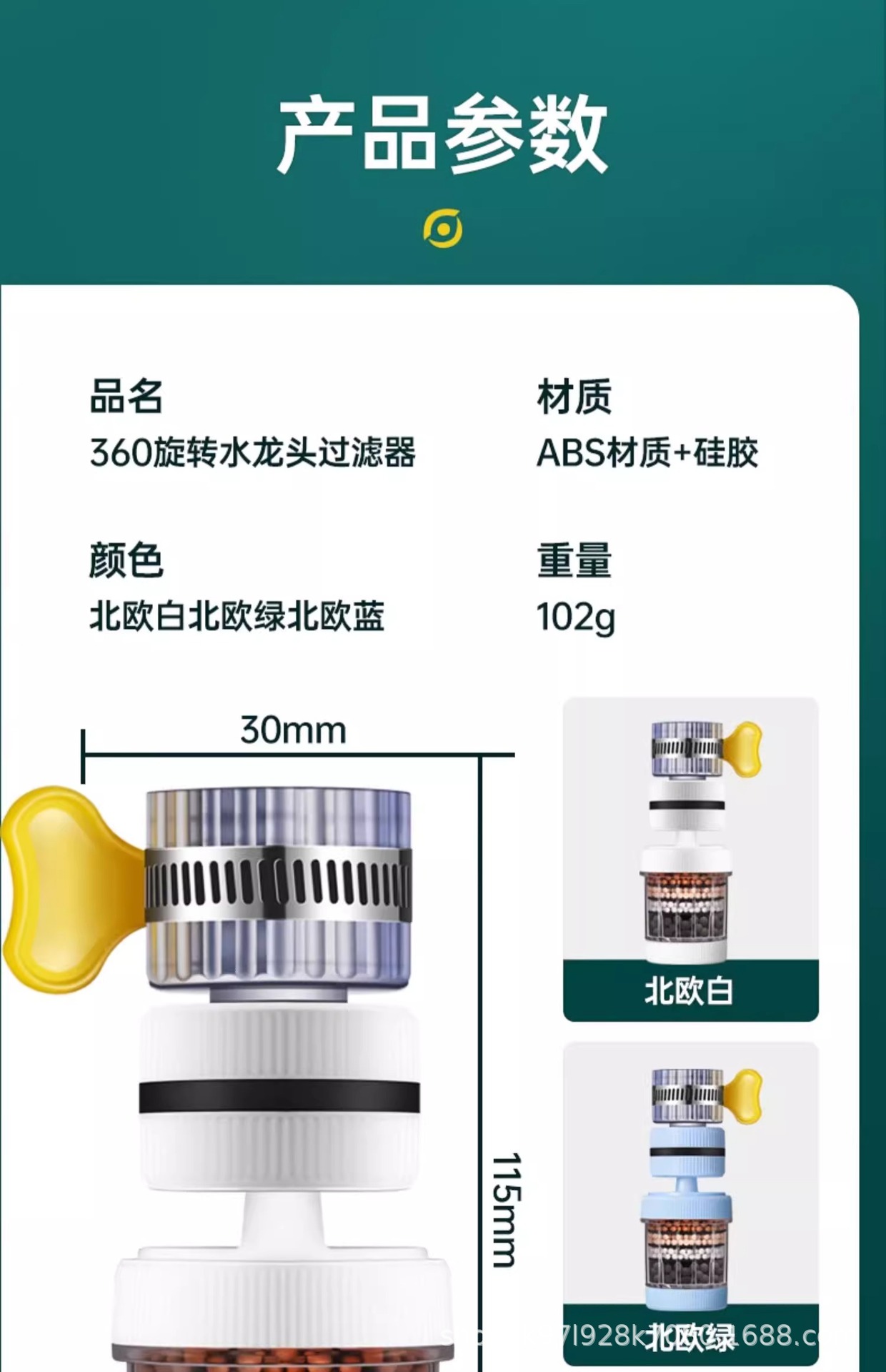 • 그린【360 ° 회전식 업그레이드 모델] 만능필터·6중여과/염소제거