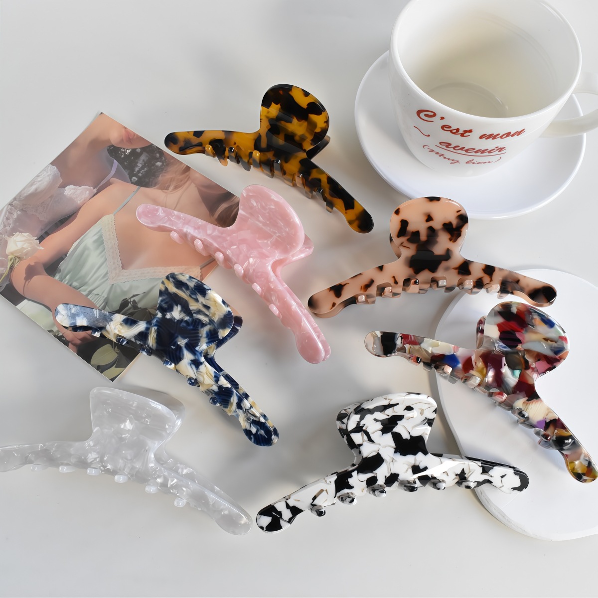 국경 간 상어 클립 Acetic Acetic Aid Grab 뒷머리 여성의 대형 우아한 플레이트 헤어 클로 인 스타일 헤어 액세서리 간단한 폰 제테일 클립스토어 가기