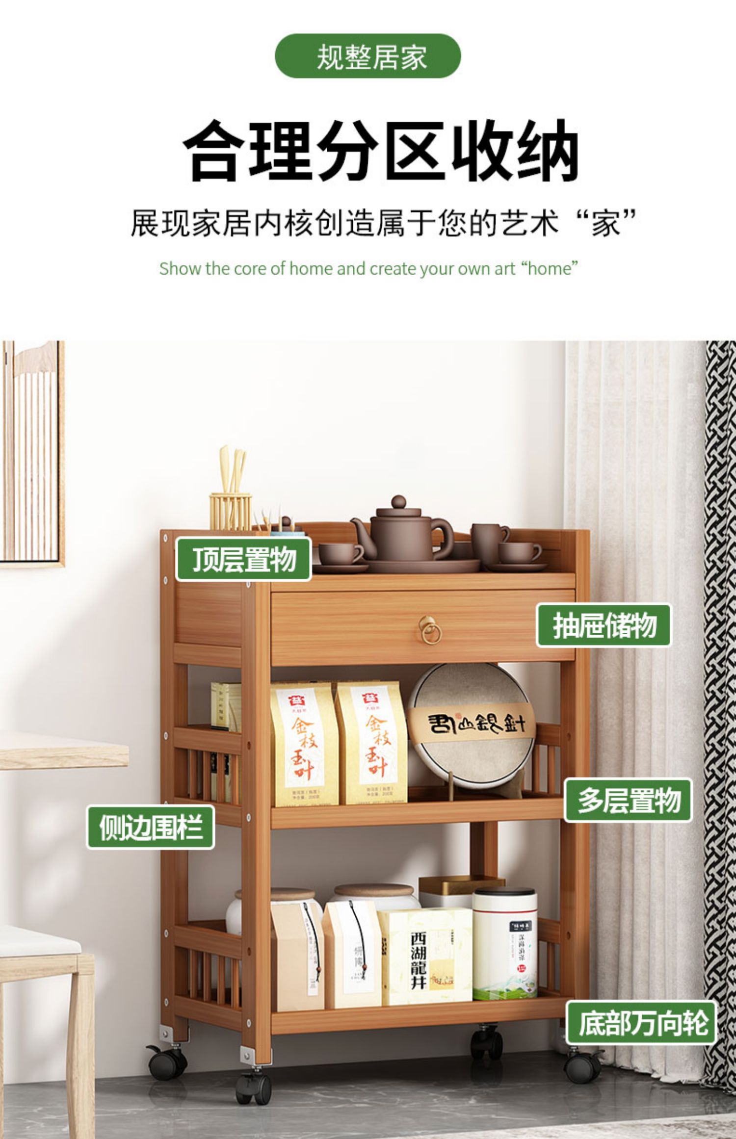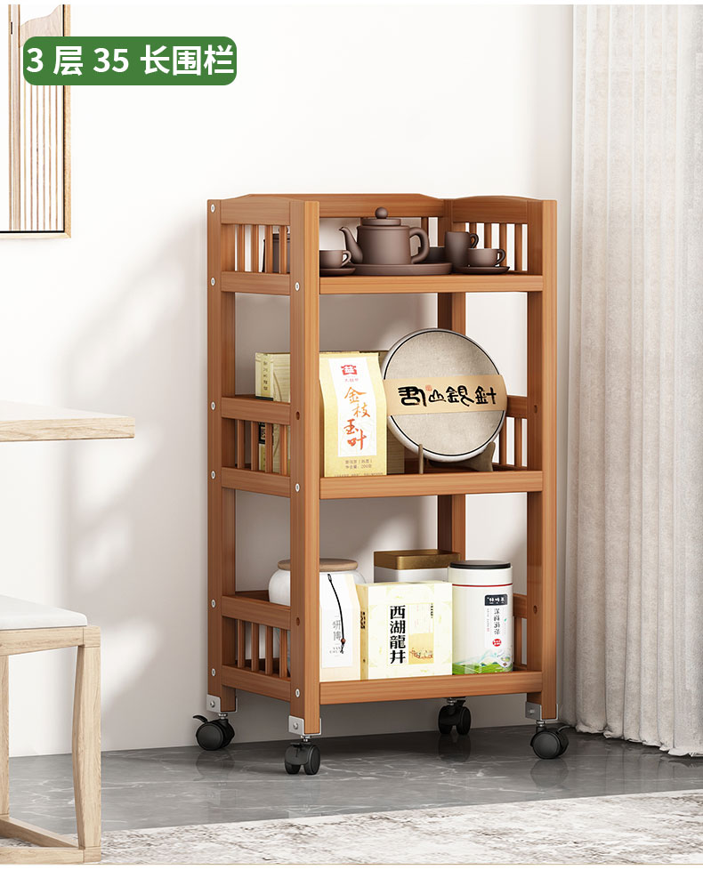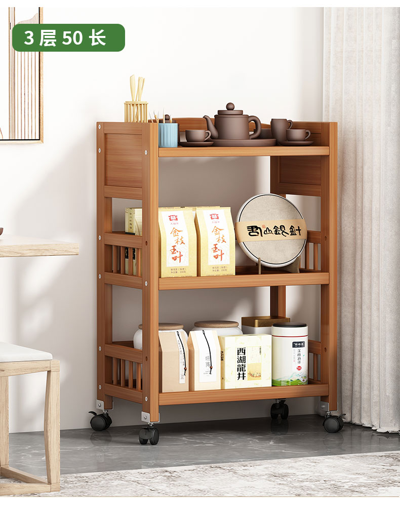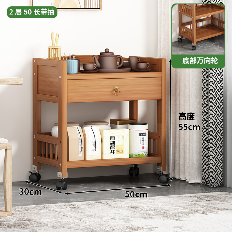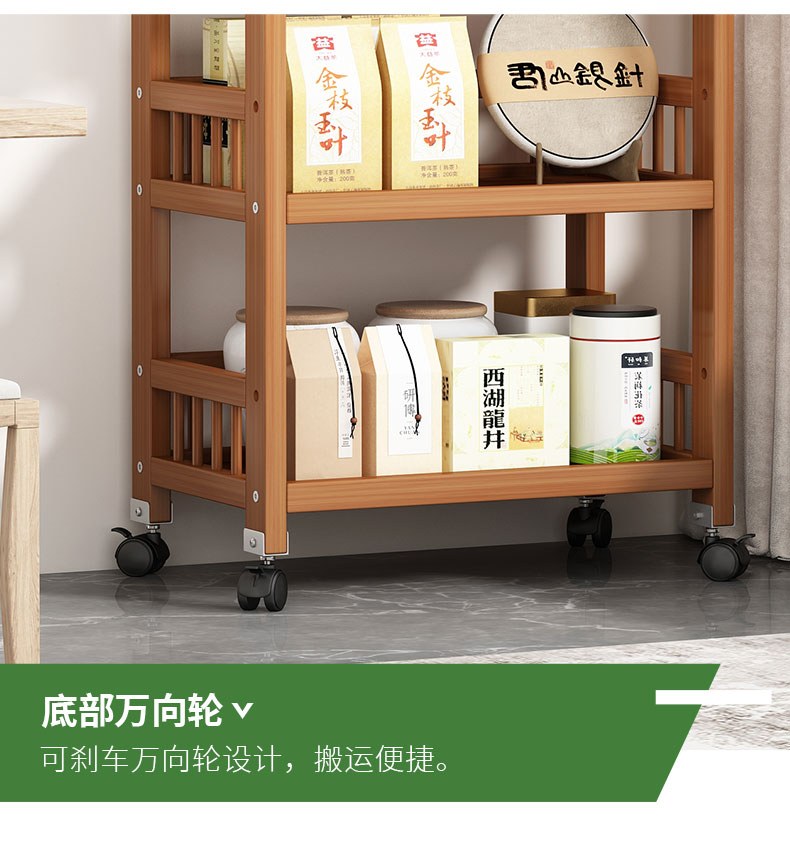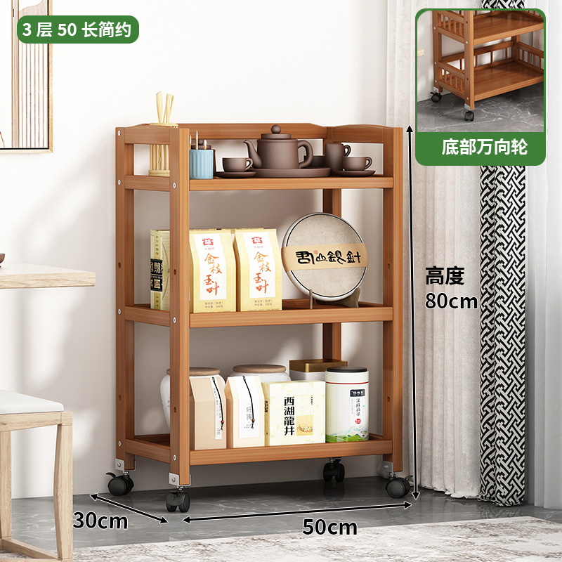저장 랙 솔리드 우드 이동식 카트 차 캐비닛 다층 저장 랙 거실 주방 바닥 간단한 차 탕 얀스토어 가기