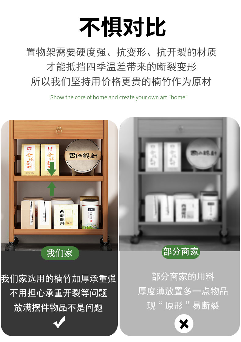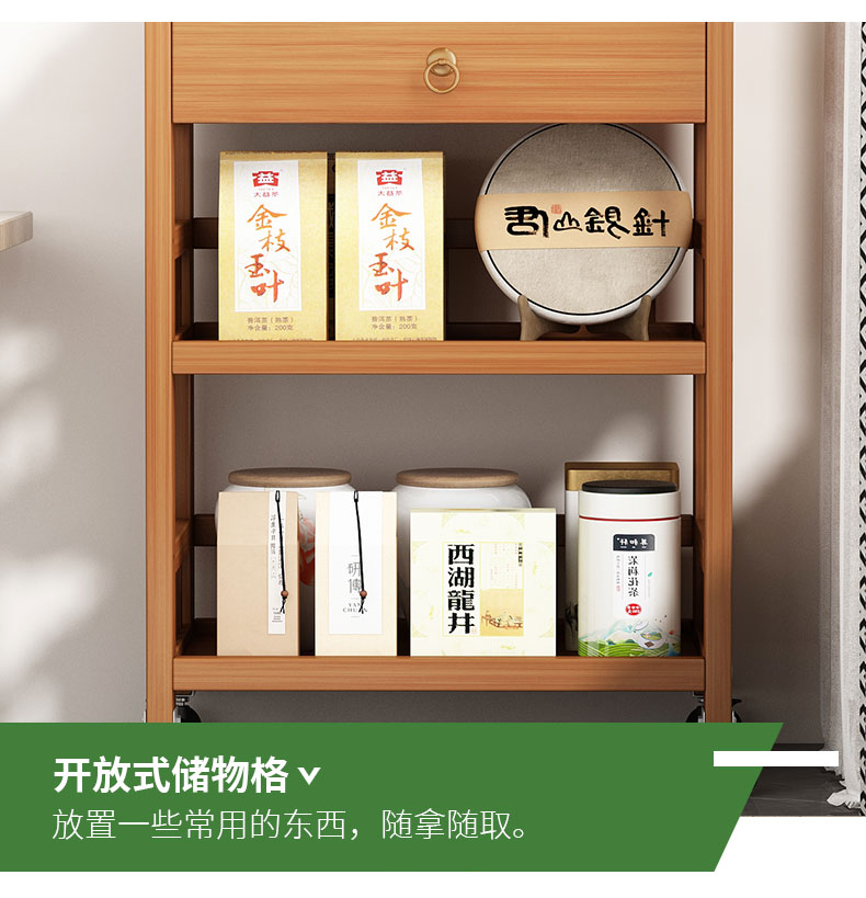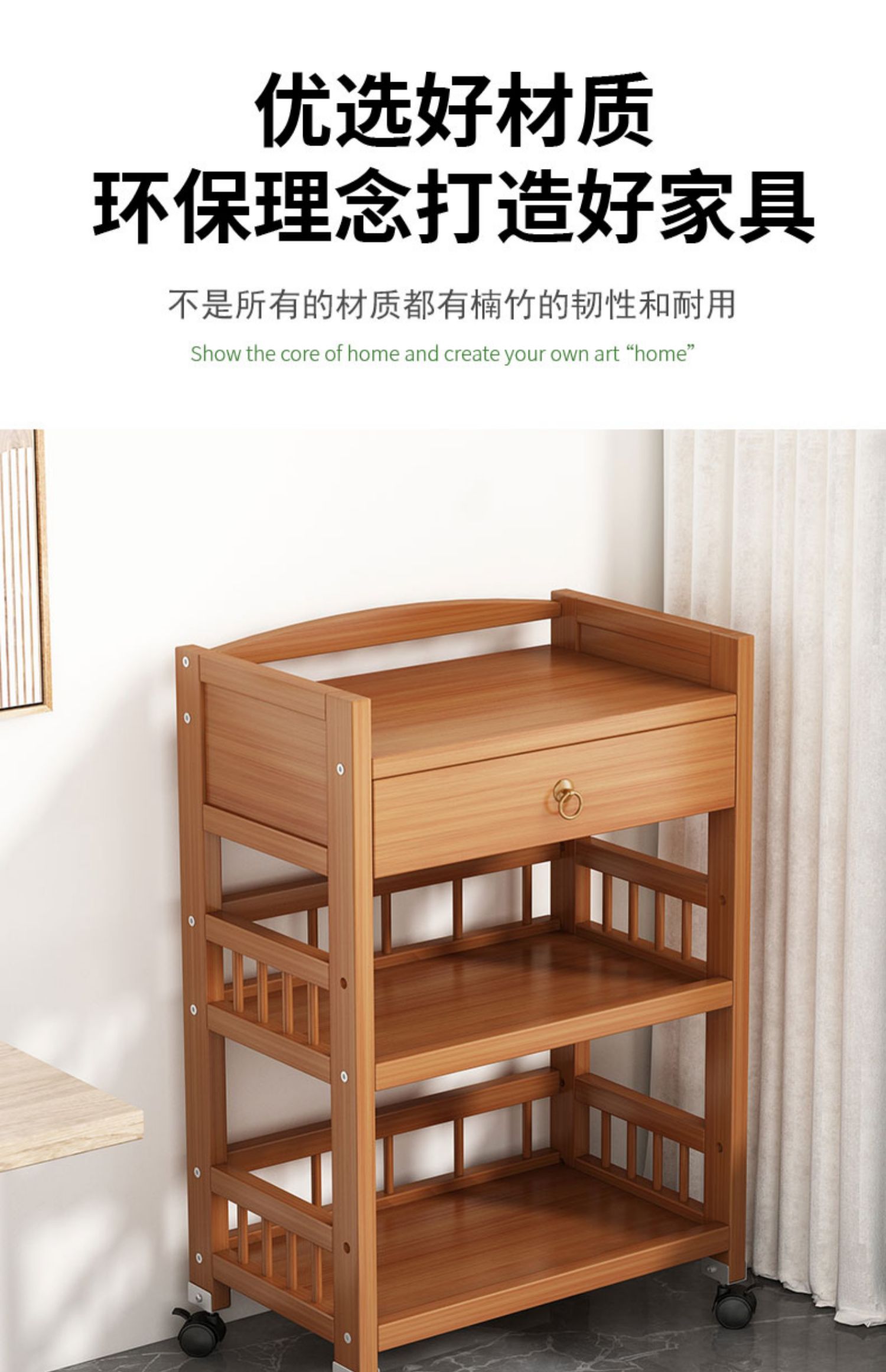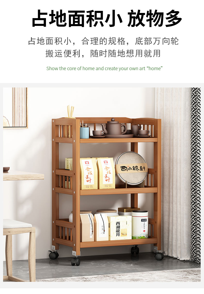 저장 랙 솔리드 우드 이동식 카트 차 캐비닛 다층 저장 랙 거실 주방 바닥 간단한 차 탕 얀스토어 가기