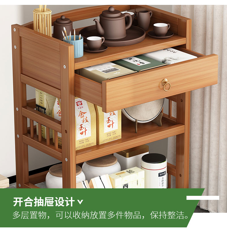 저장 랙 솔리드 우드 이동식 카트 차 캐비닛 다층 저장 랙 거실 주방 바닥 간단한 차 탕 얀