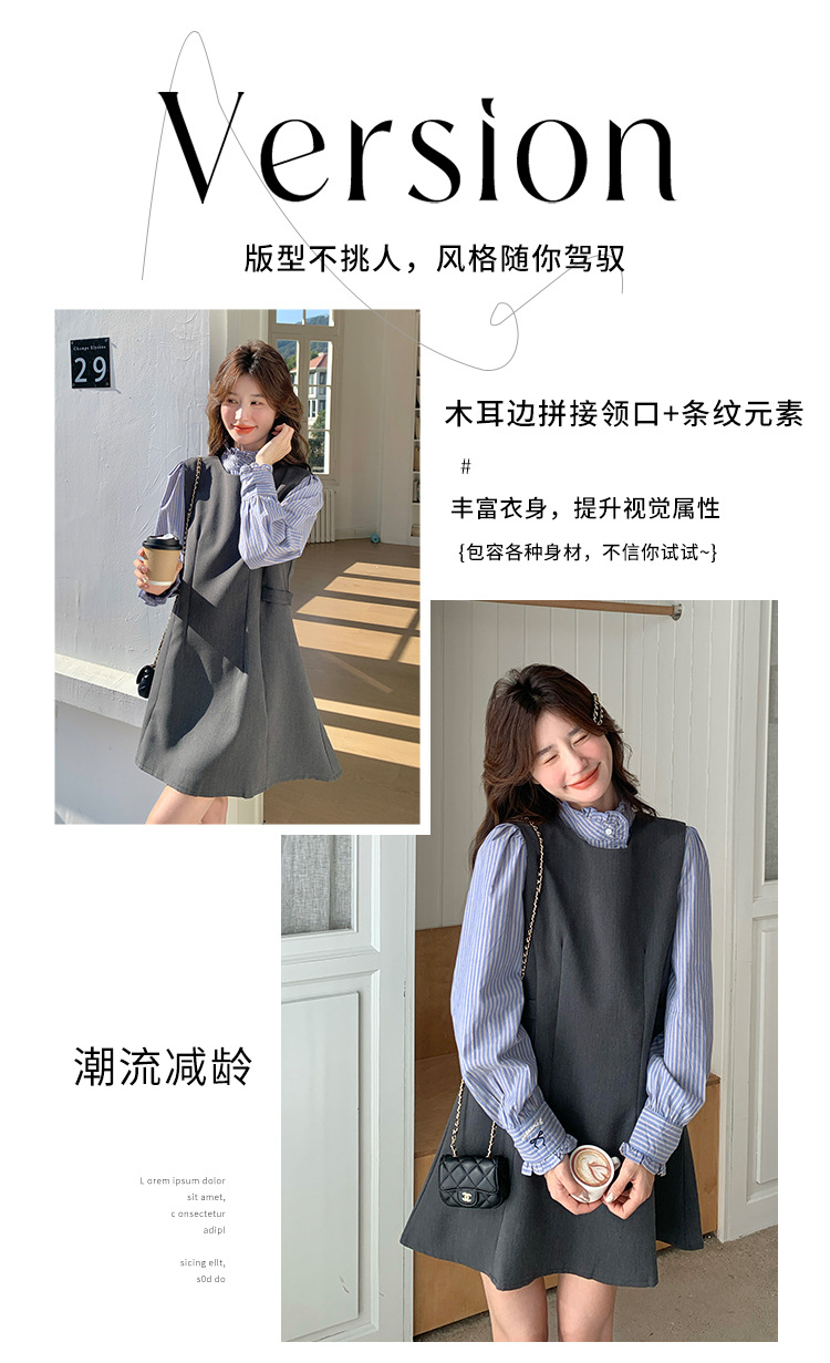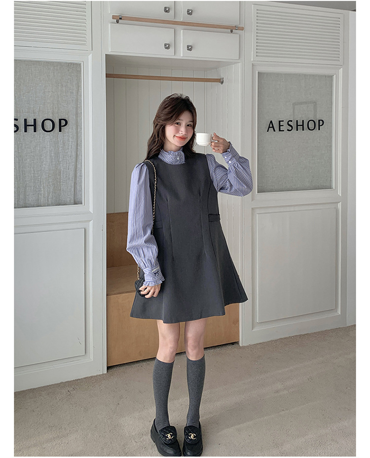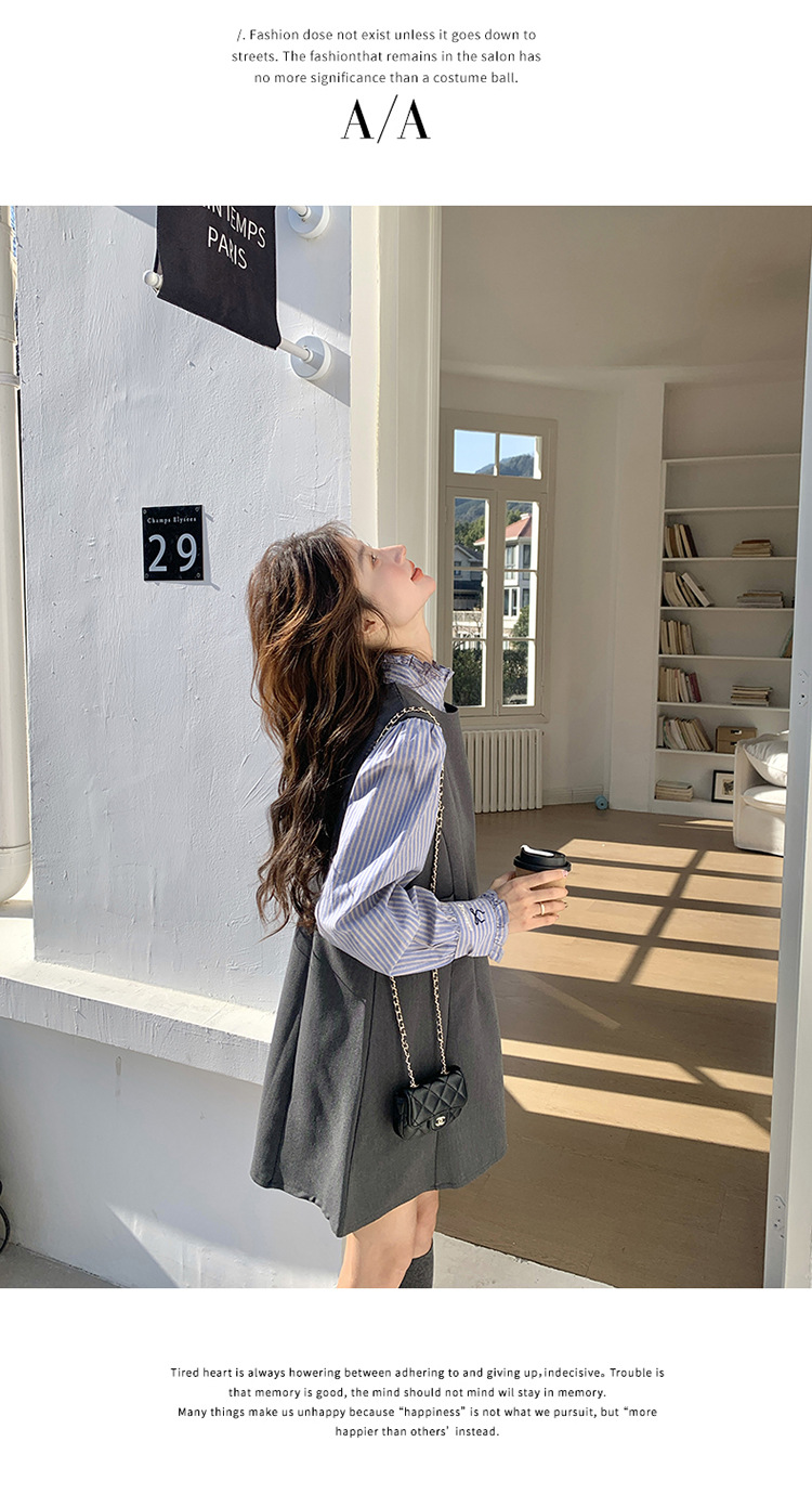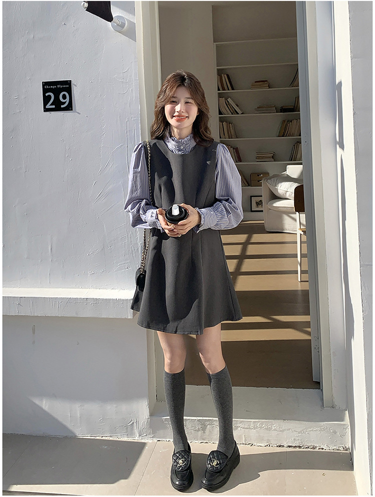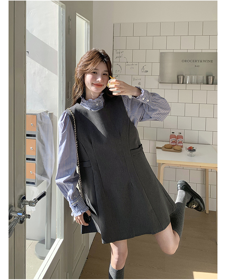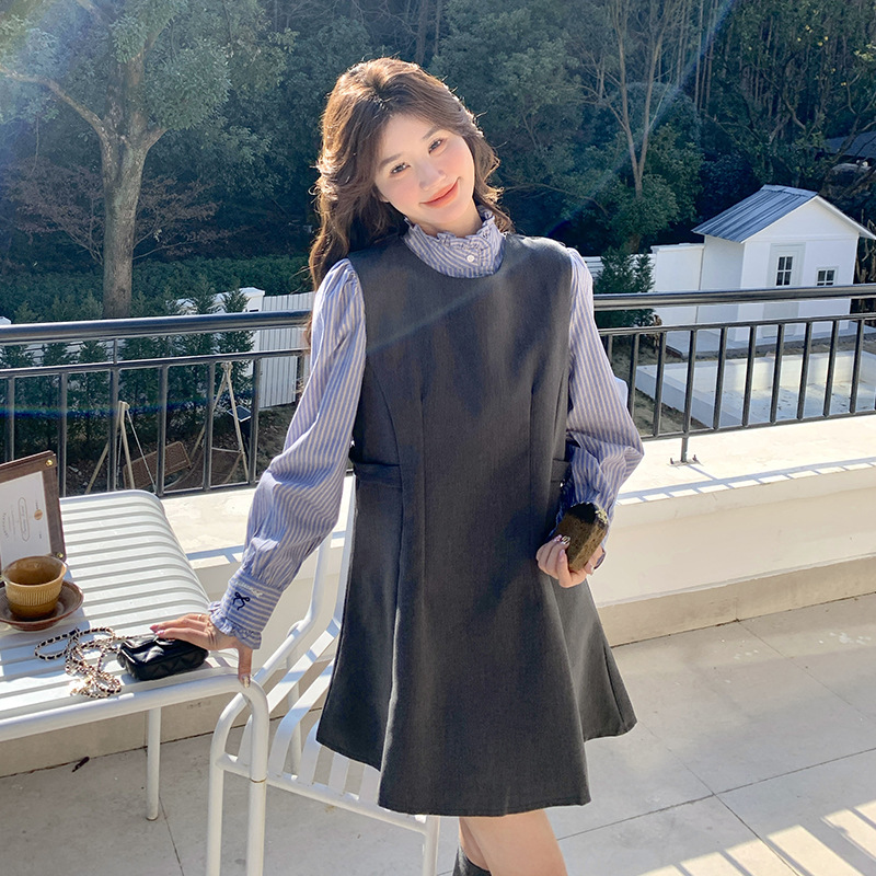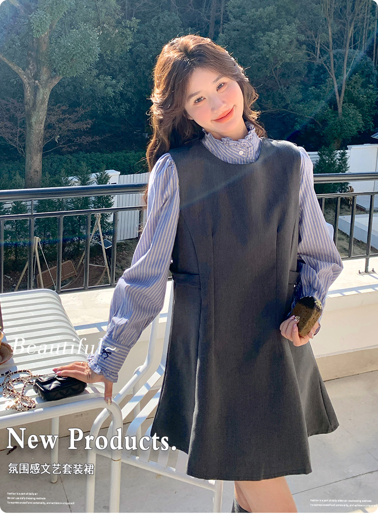 리얼 샷 그레이 조끼 원피스 여성 봄 2025 새로운 예술 지식인 스커트 세트스토어 가기