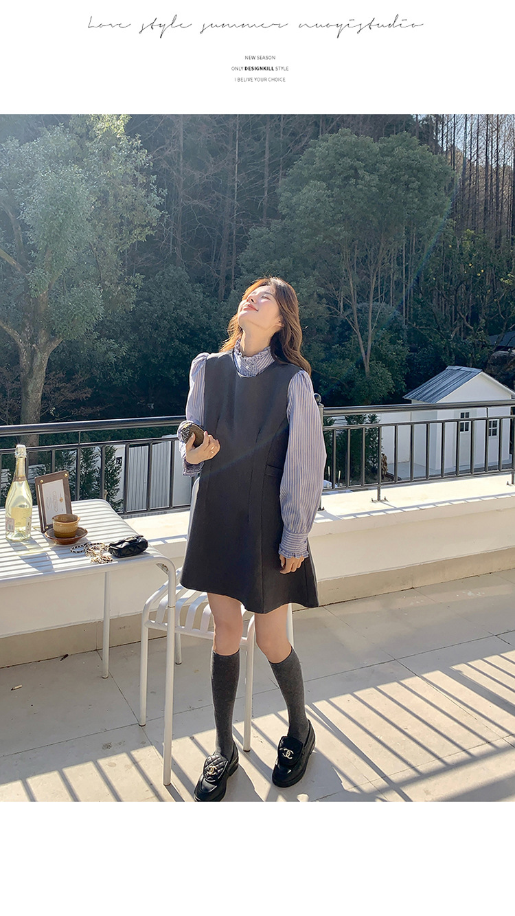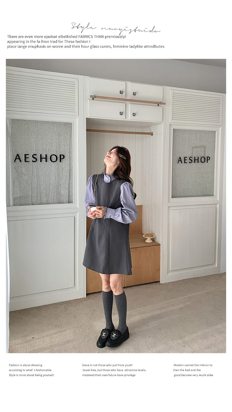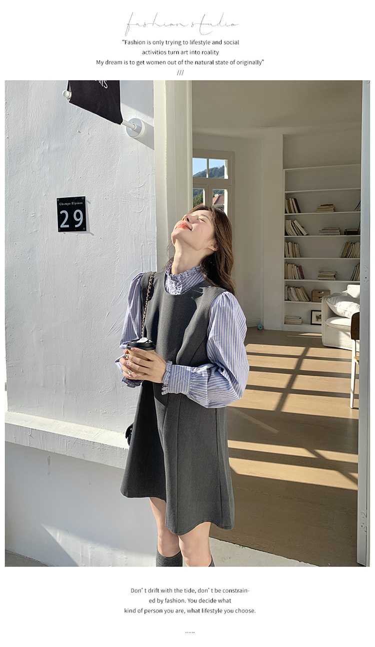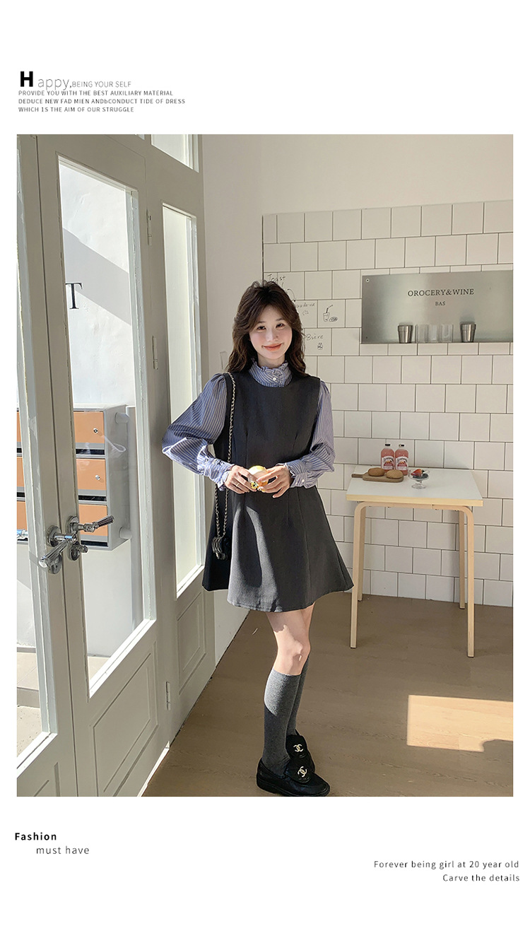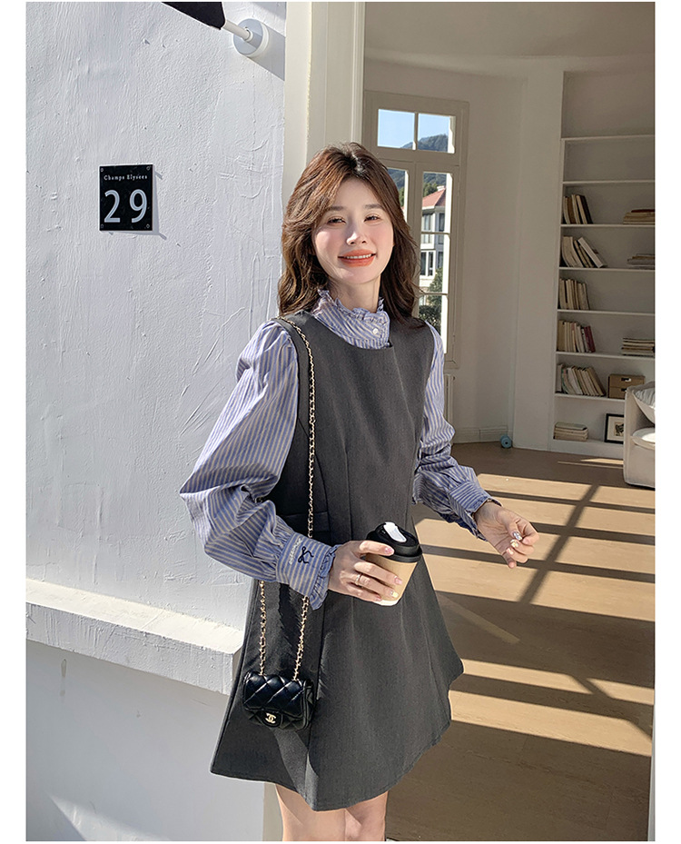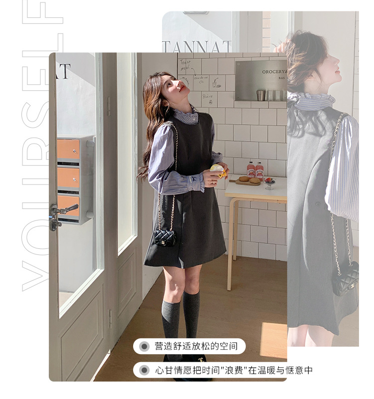 리얼 샷 그레이 조끼 원피스 여성 봄 2025 새로운 예술 지식인 스커트 세트스토어 가기