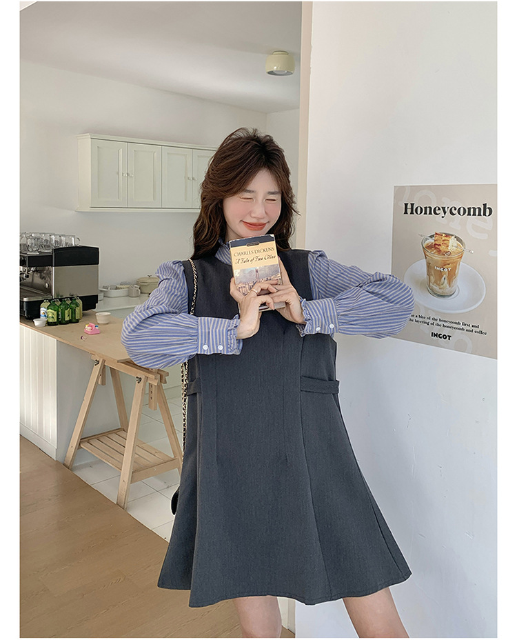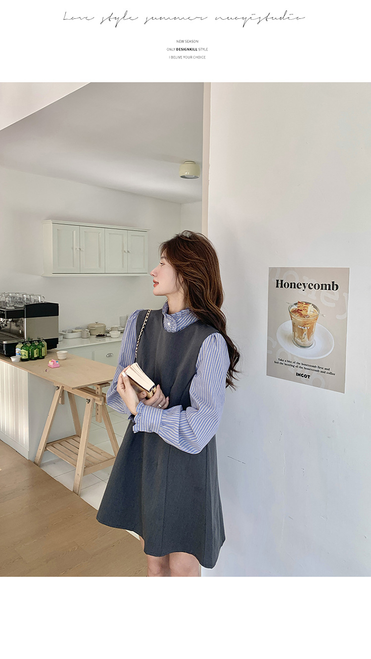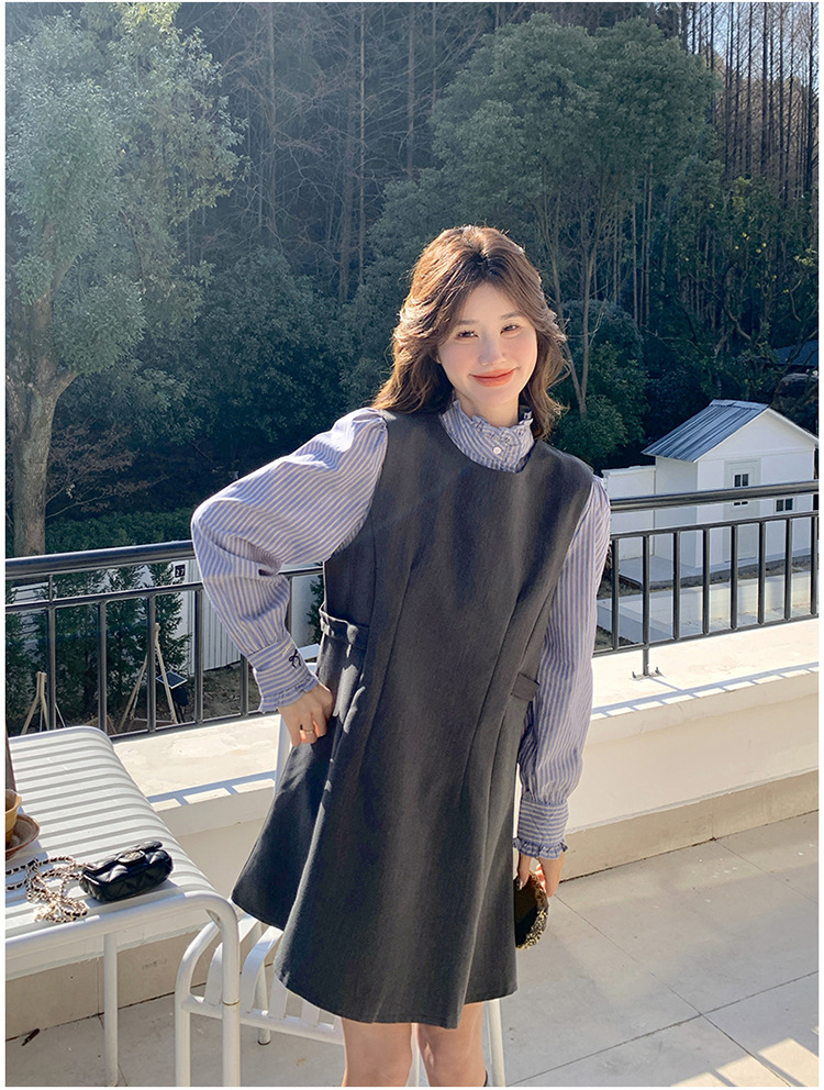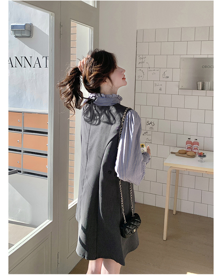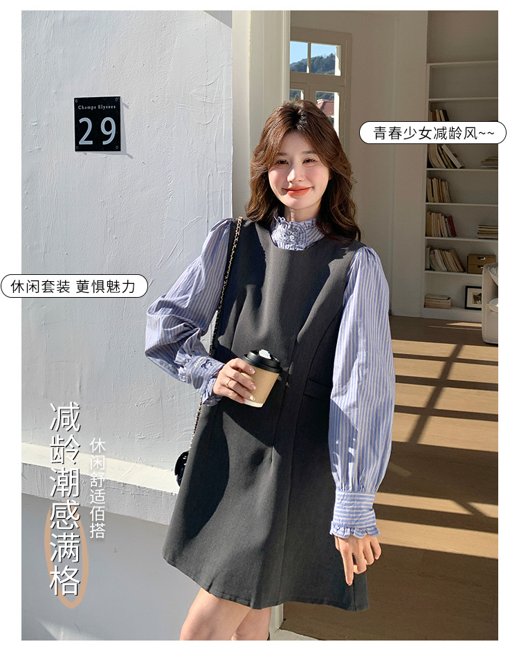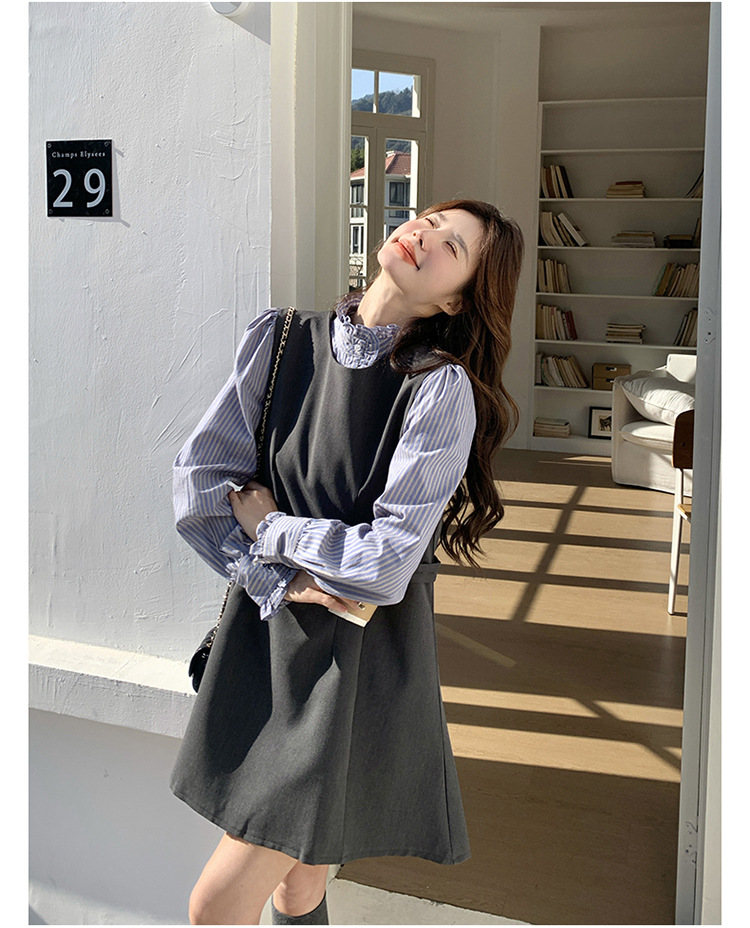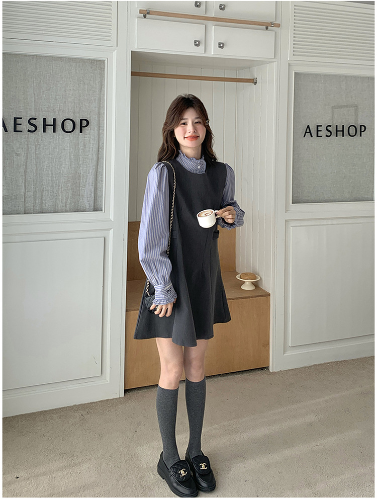 리얼 샷 그레이 조끼 원피스 여성 봄 2025 새로운 예술 지식인 스커트 세트스토어 가기