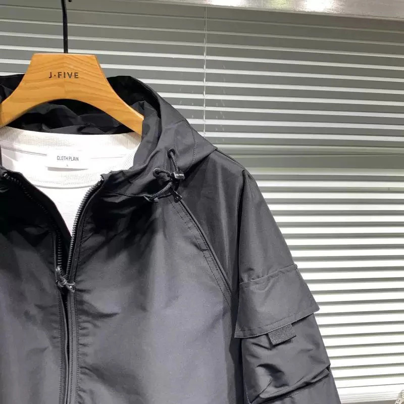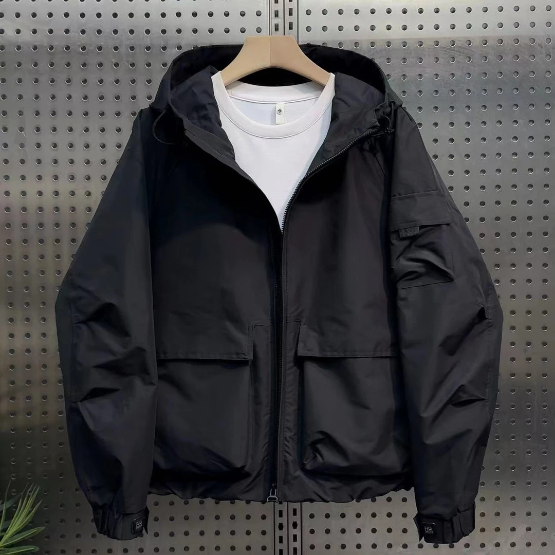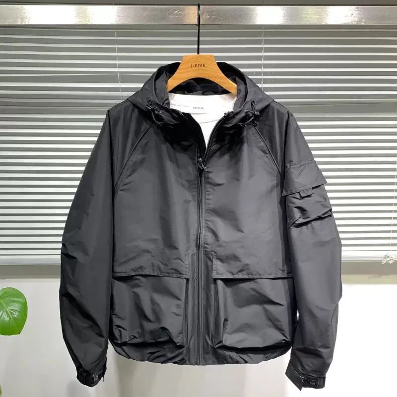 2025 봄 새로운 후드 재킷 남성 툴링 대형 포켓 솔리드 컬러 재킷 캐주얼 루즈 야외 재킷 코트