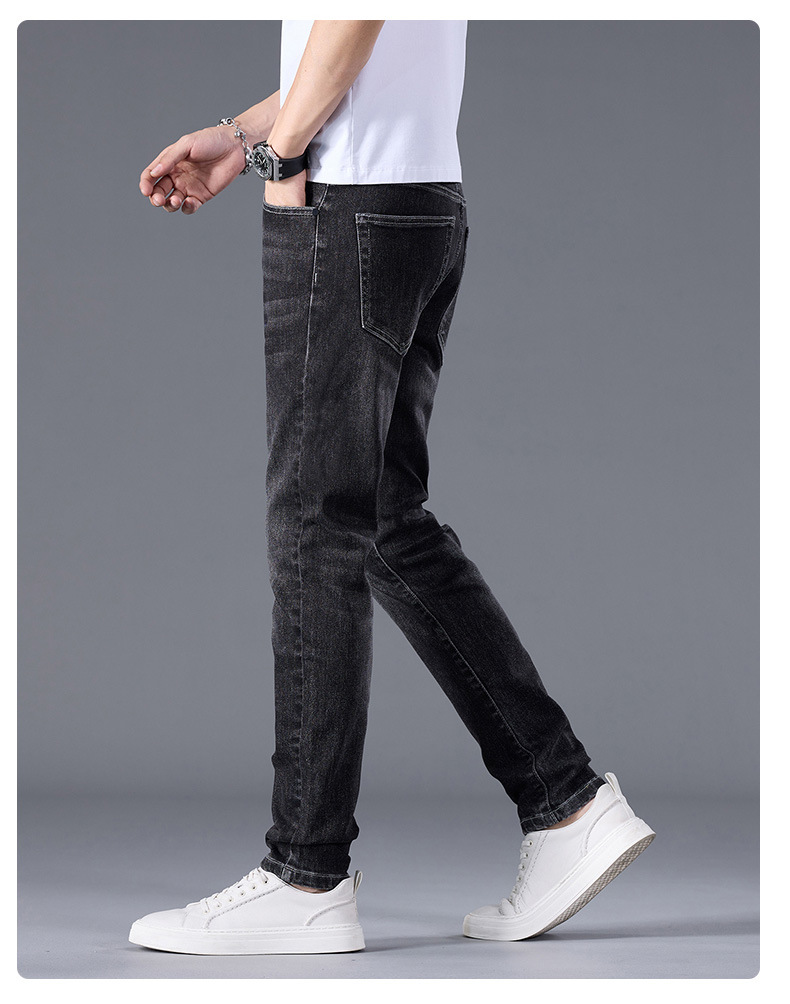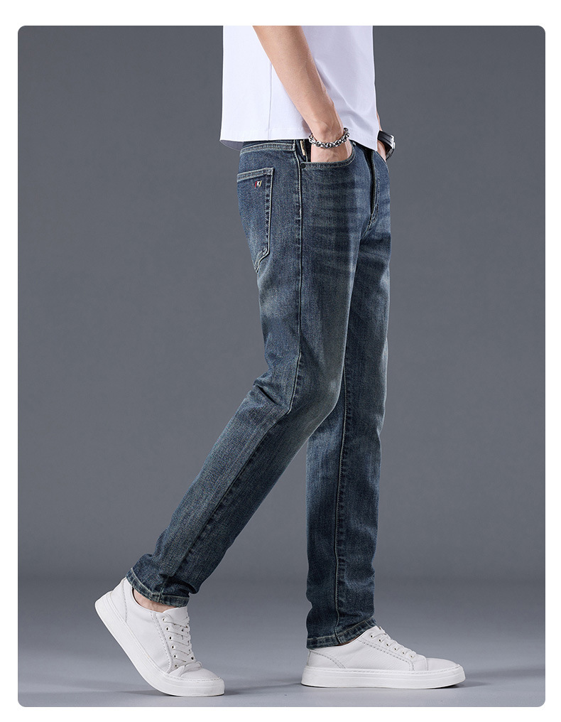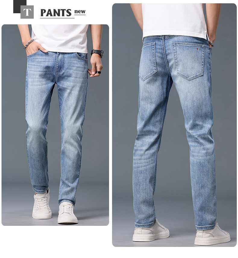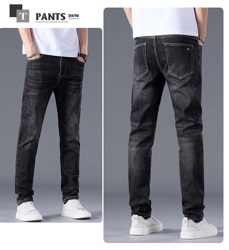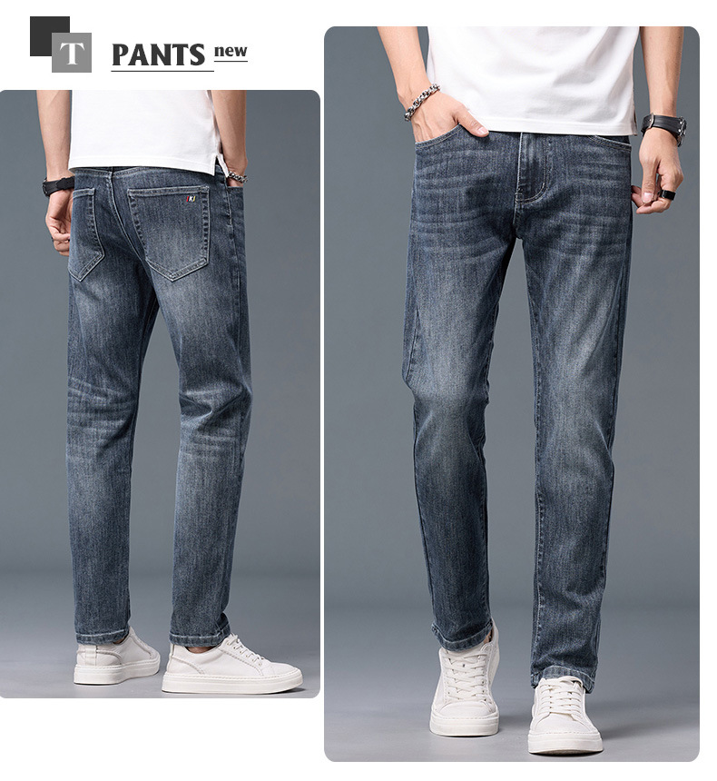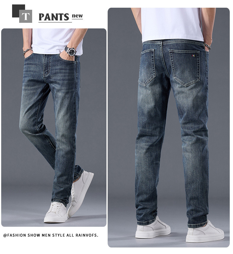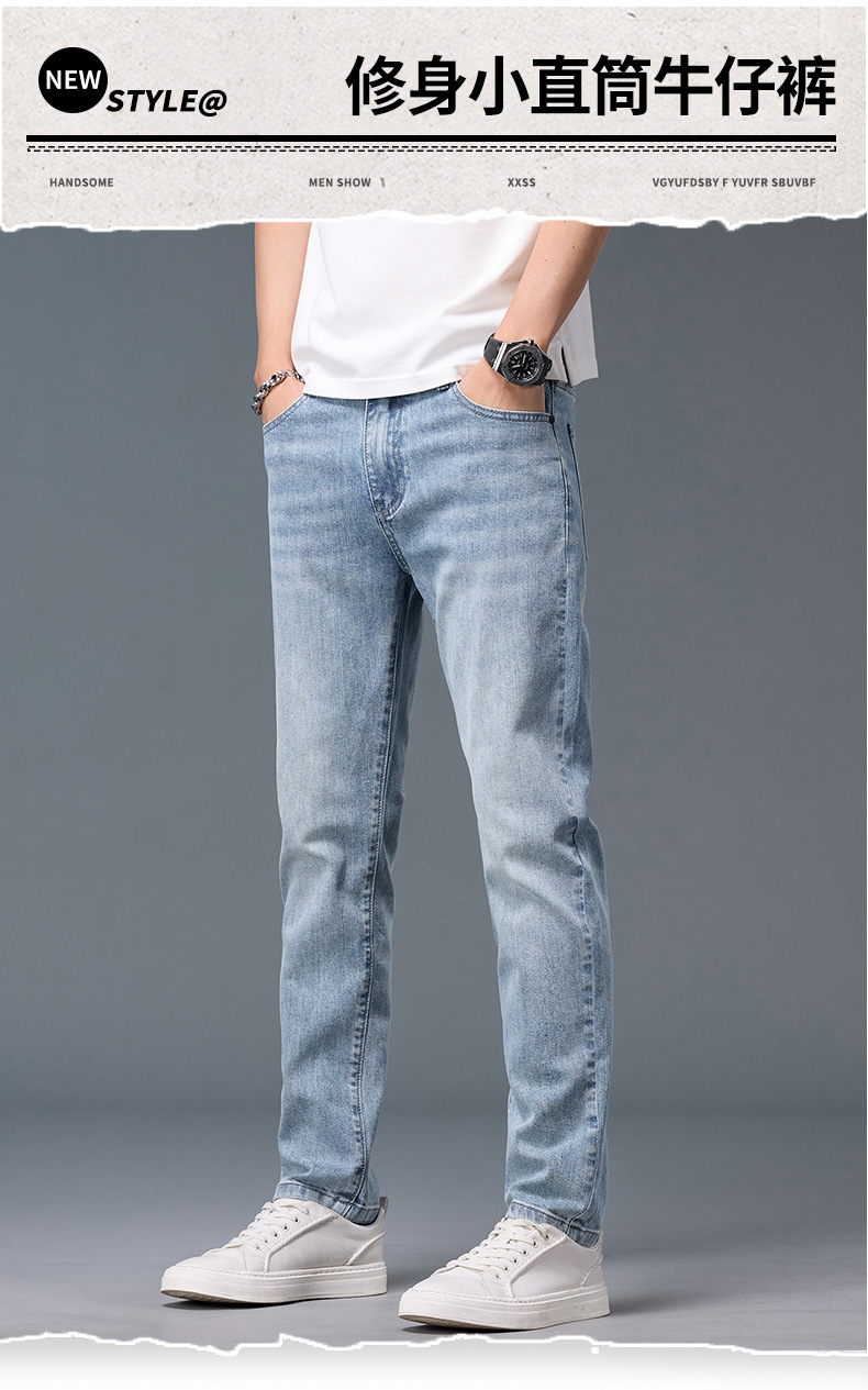 봄과 여름 2025 새로운 패션 스트레치 슬림 핏 한국 스타일 트렌디 남성 청바지 남성 캐주얼 바지 847스토어 가기