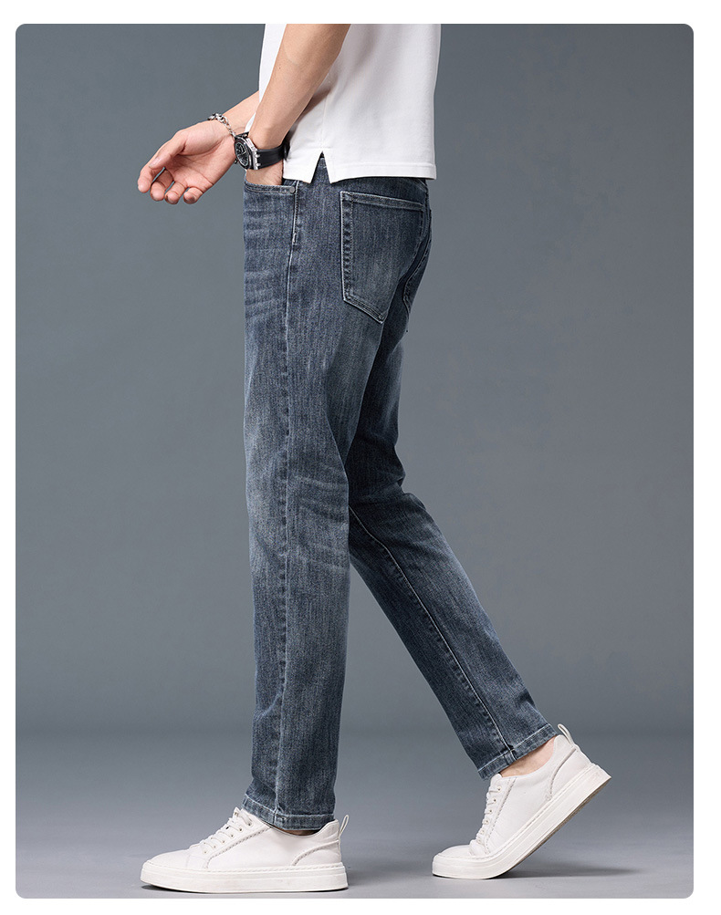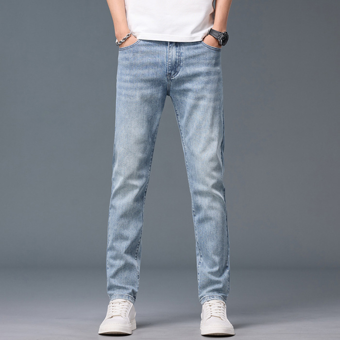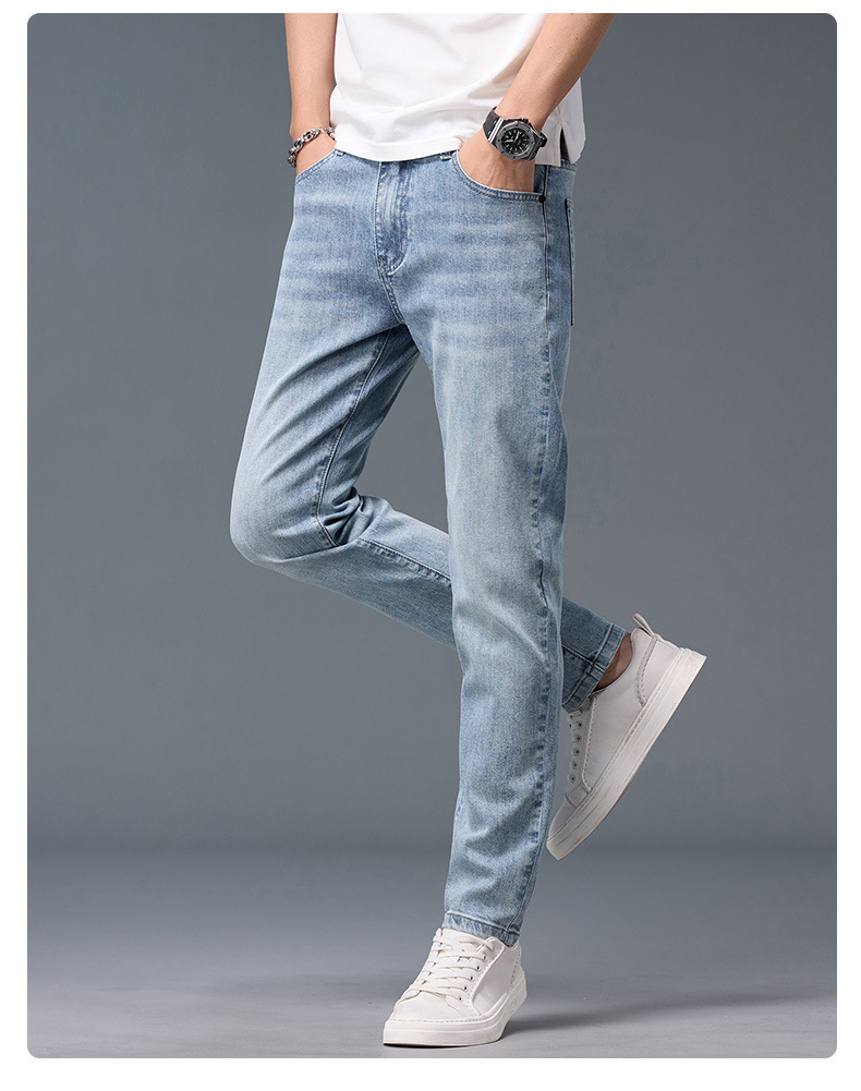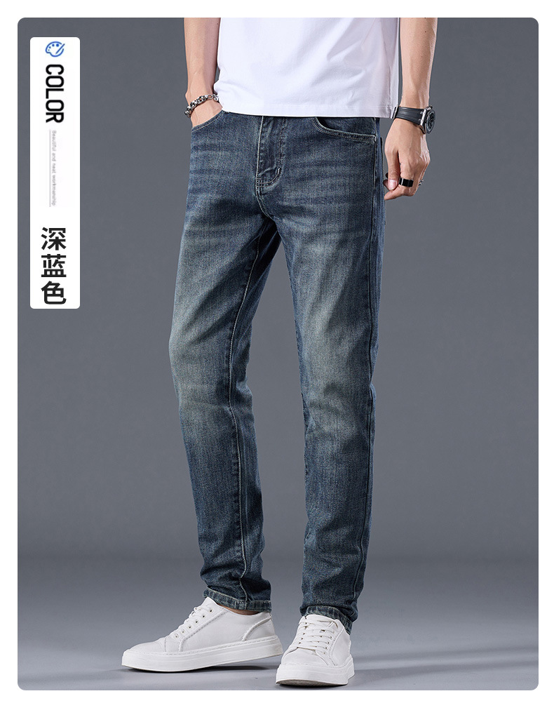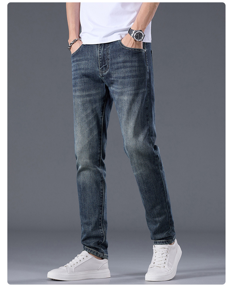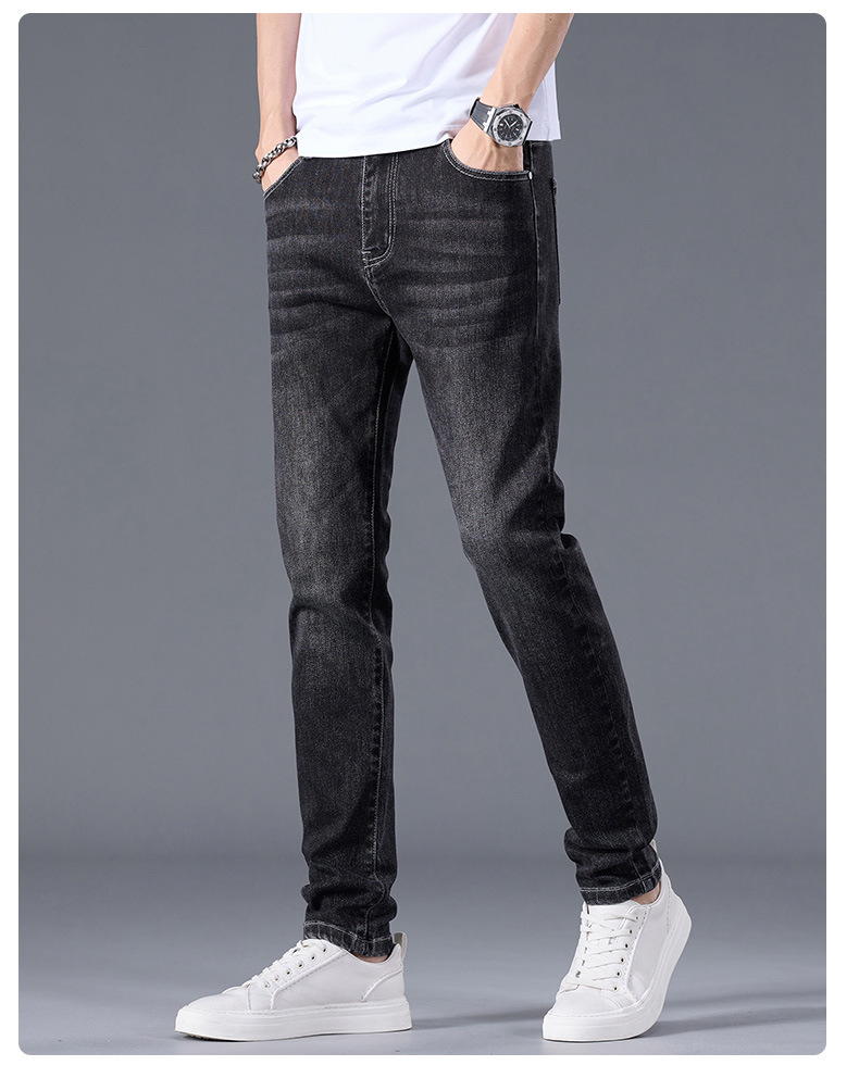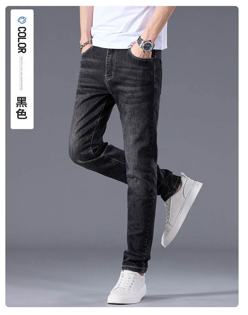봄과 여름 2025 새로운 패션 스트레치 슬림 핏 한국 스타일 트렌디 남성 청바지 남성 캐주얼 바지 847스토어 가기