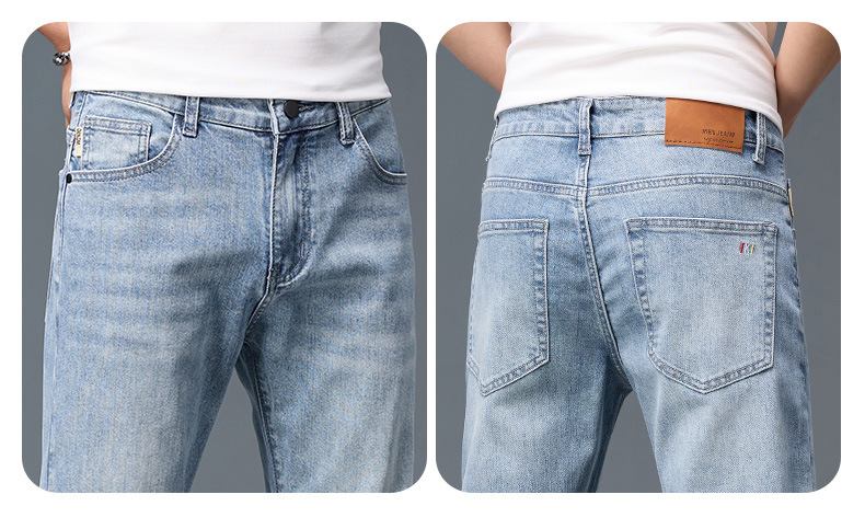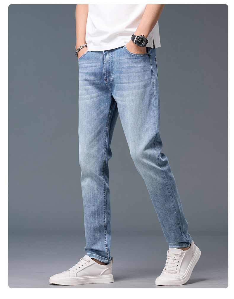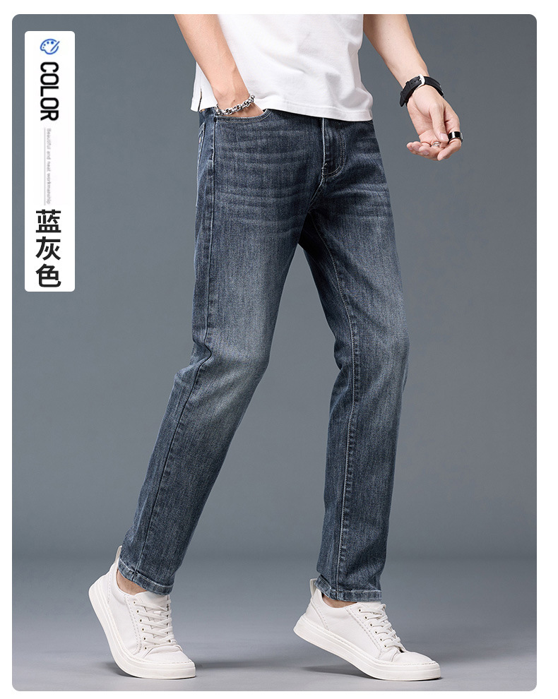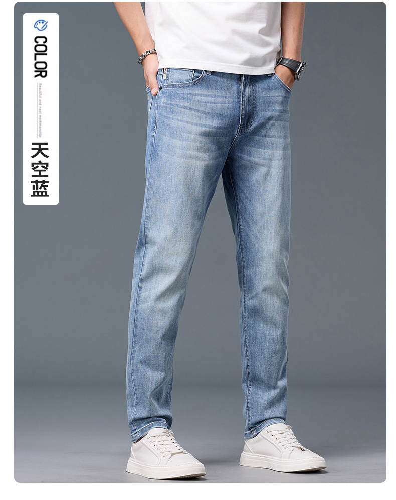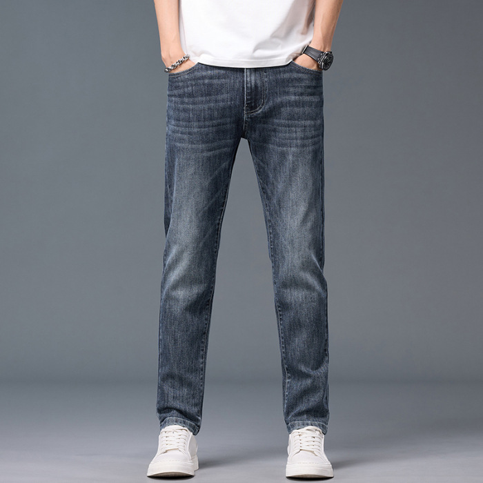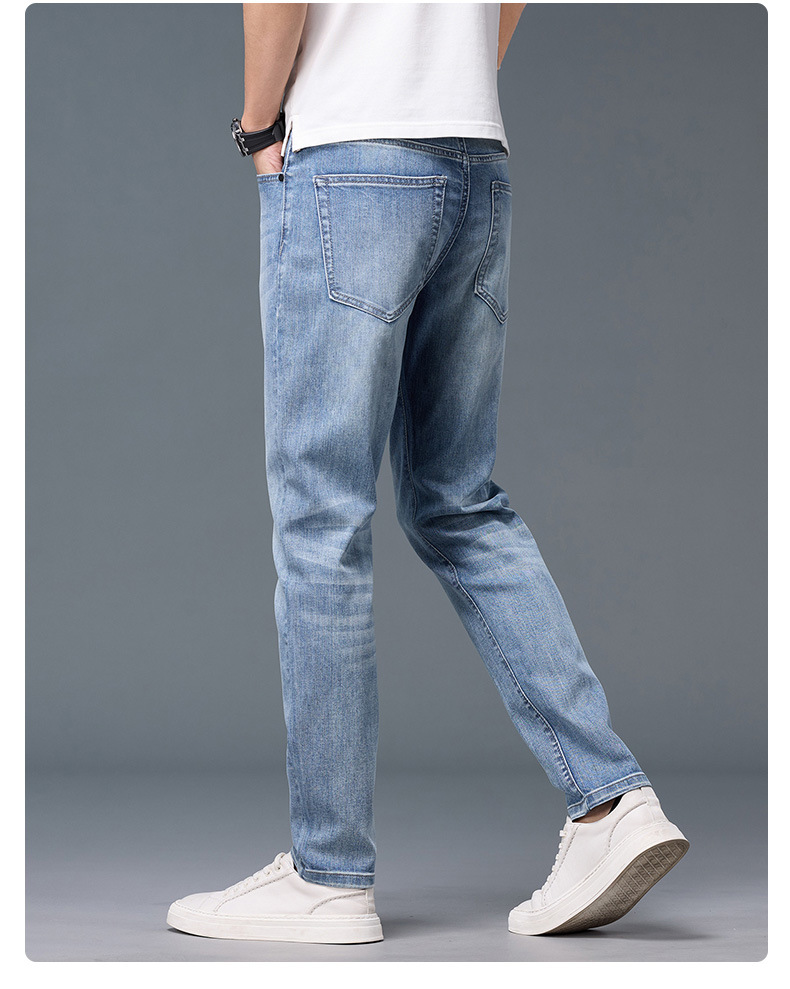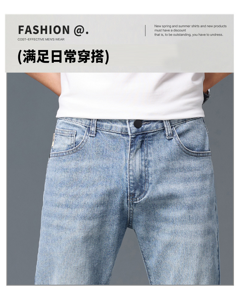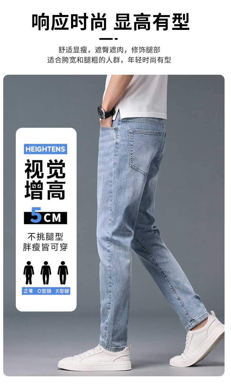 봄과 여름 2025 새로운 패션 스트레치 슬림 핏 한국 스타일 트렌디 남성 청바지 남성 캐주얼 바지 847스토어 가기