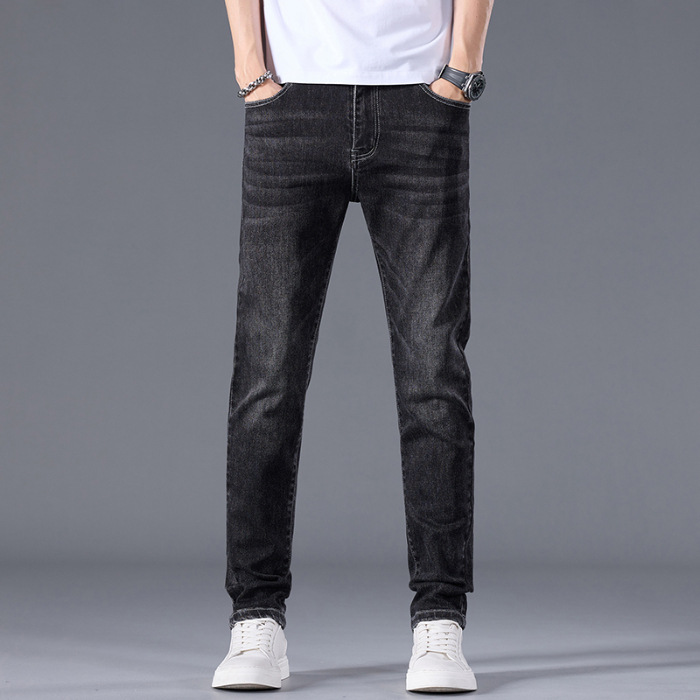 봄과 여름 2025 새로운 패션 스트레치 슬림 핏 한국 스타일 트렌디 남성 청바지 남성 캐주얼 바지 847