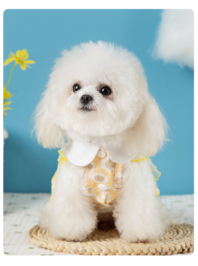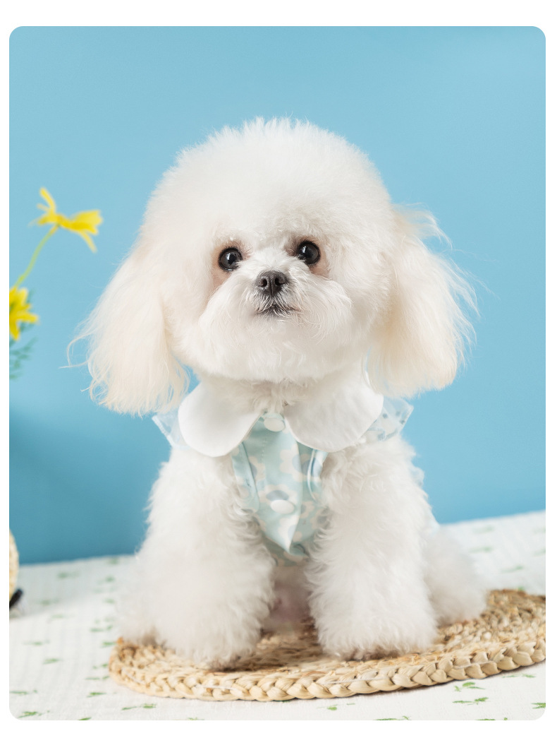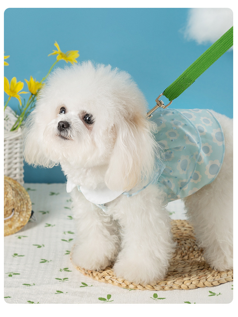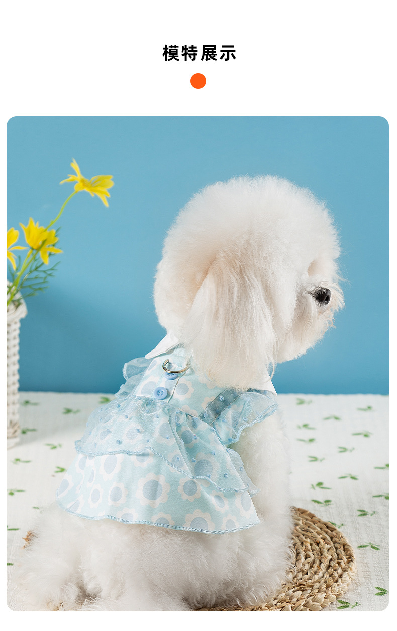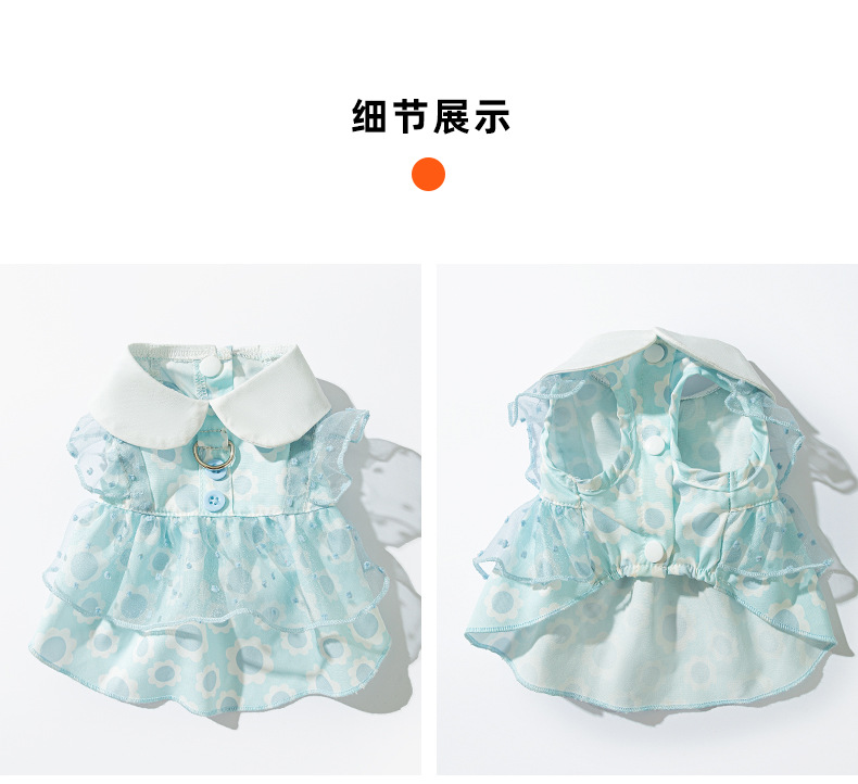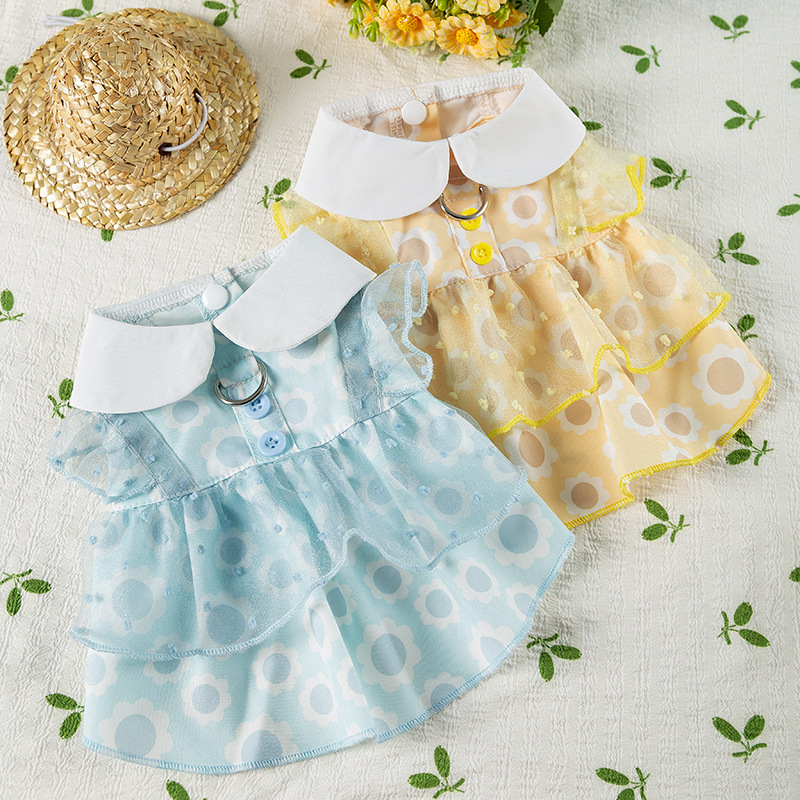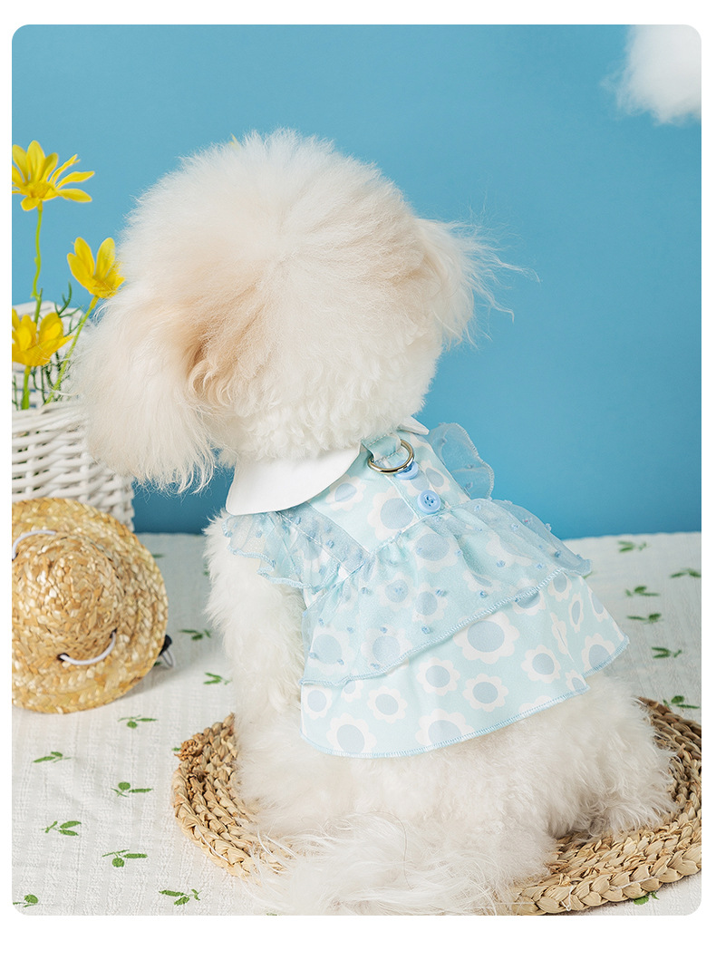 개 봄과 여름 공주 스타일 레이디 레이스 레이스 웨이브 도트 원피스 고양이 스커트 얇은 애완 동물 개 옷